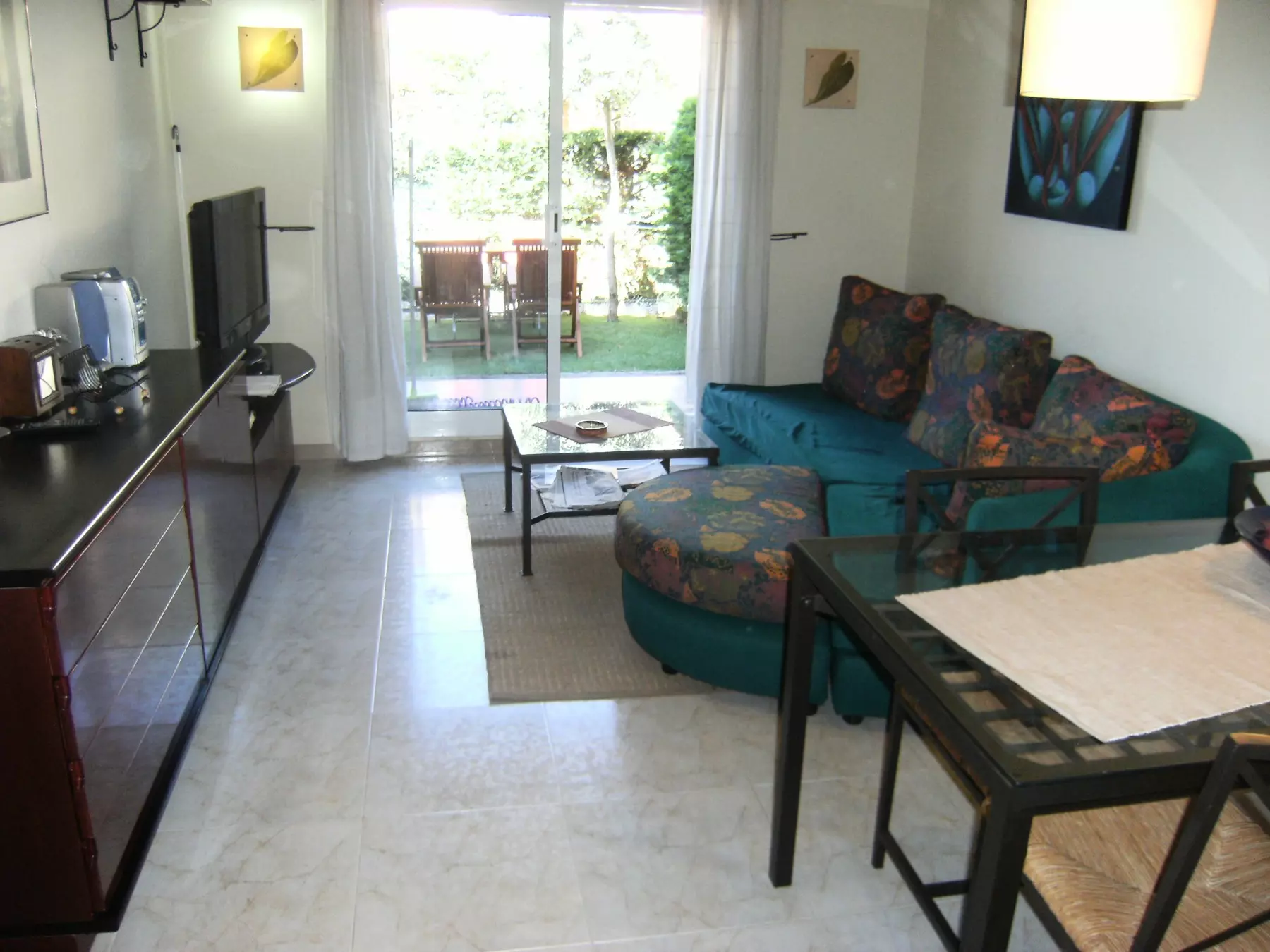 La maison dispose d'une belle terrasse avec une table et des chaises pour se détendre et profiter du cadre naturel. Le complexe résidentiel offre une piscine commune et un parking extérieur. Les options de divertissement comprennent une télévision et un accès à Internet disponible selon disponibilité (10 €/jour).