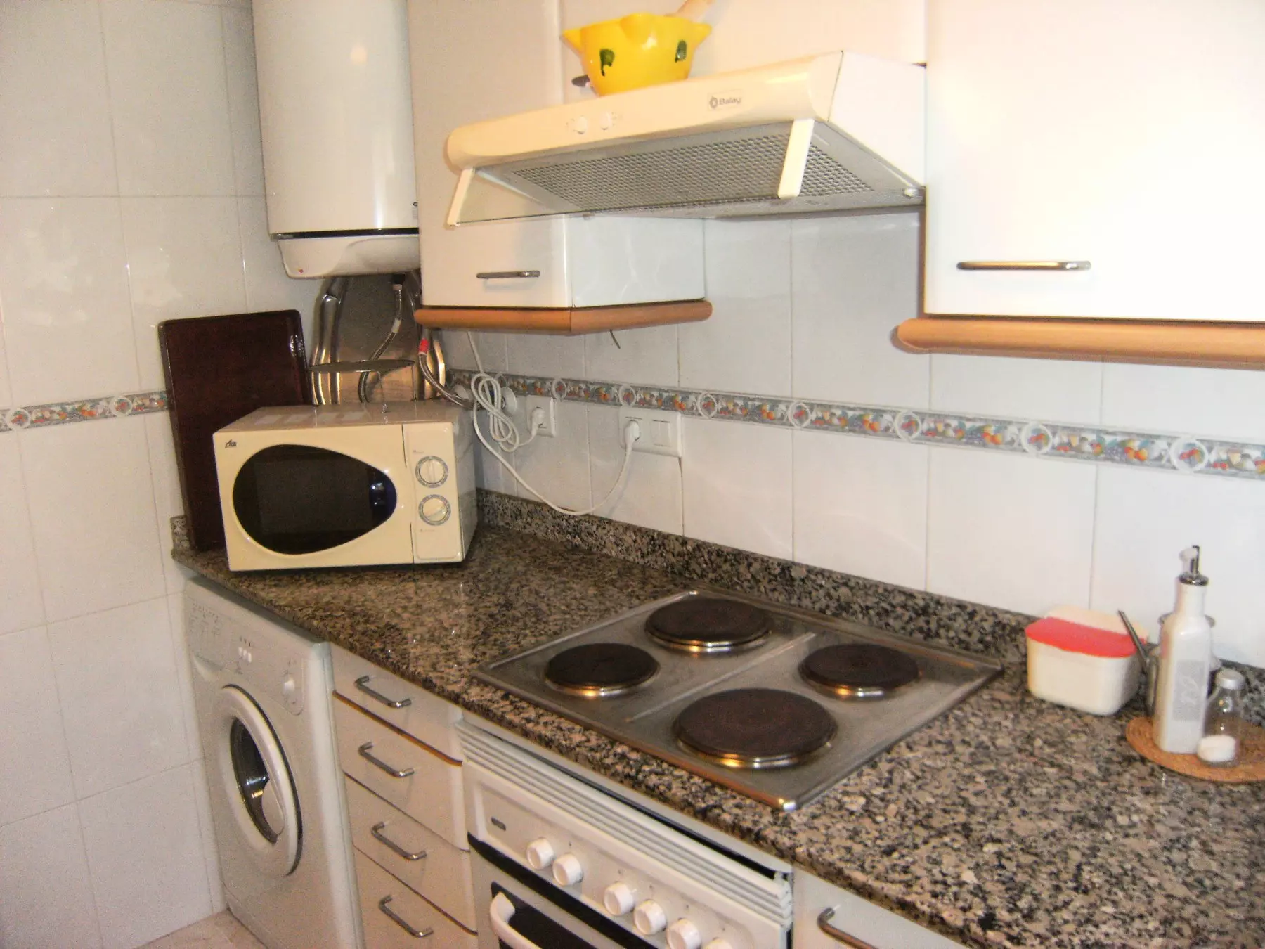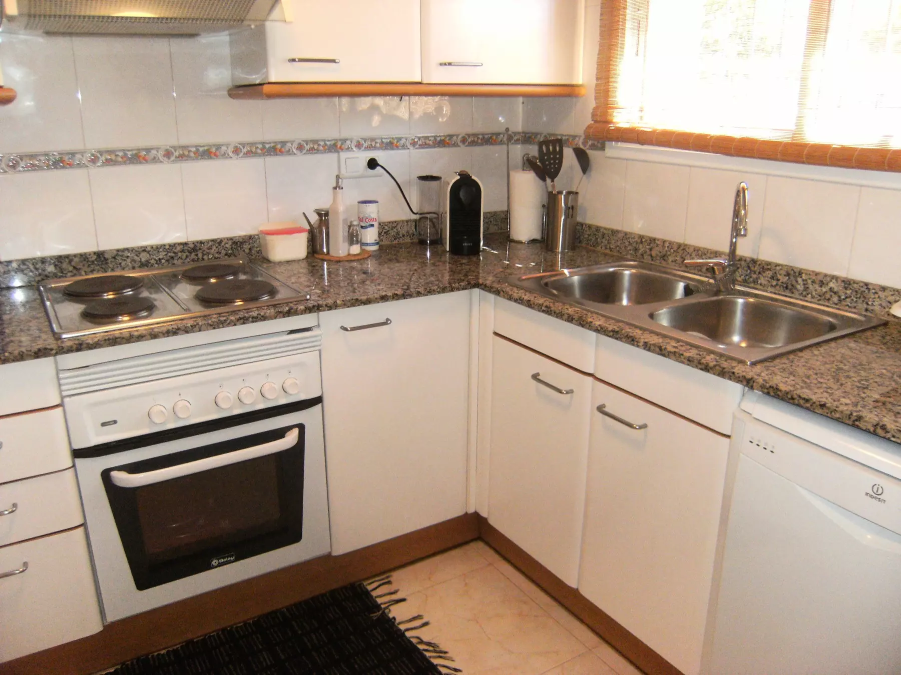 La cuisine électrique indépendante est entièrement équipée avec un réfrigérateur, un micro-ondes, un four, un congélateur, une machine à laver, un lave-vaisselle, de la vaisselle/couverts, des ustensiles de cuisine, une cafetière, un grille-pain et un presse-agrumes.
