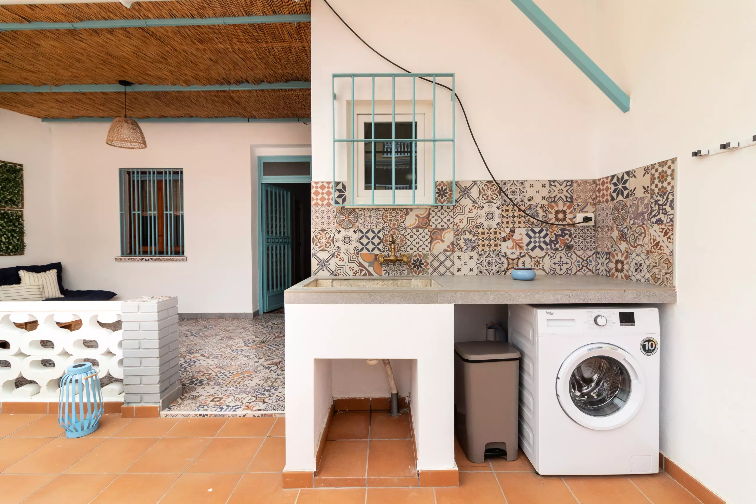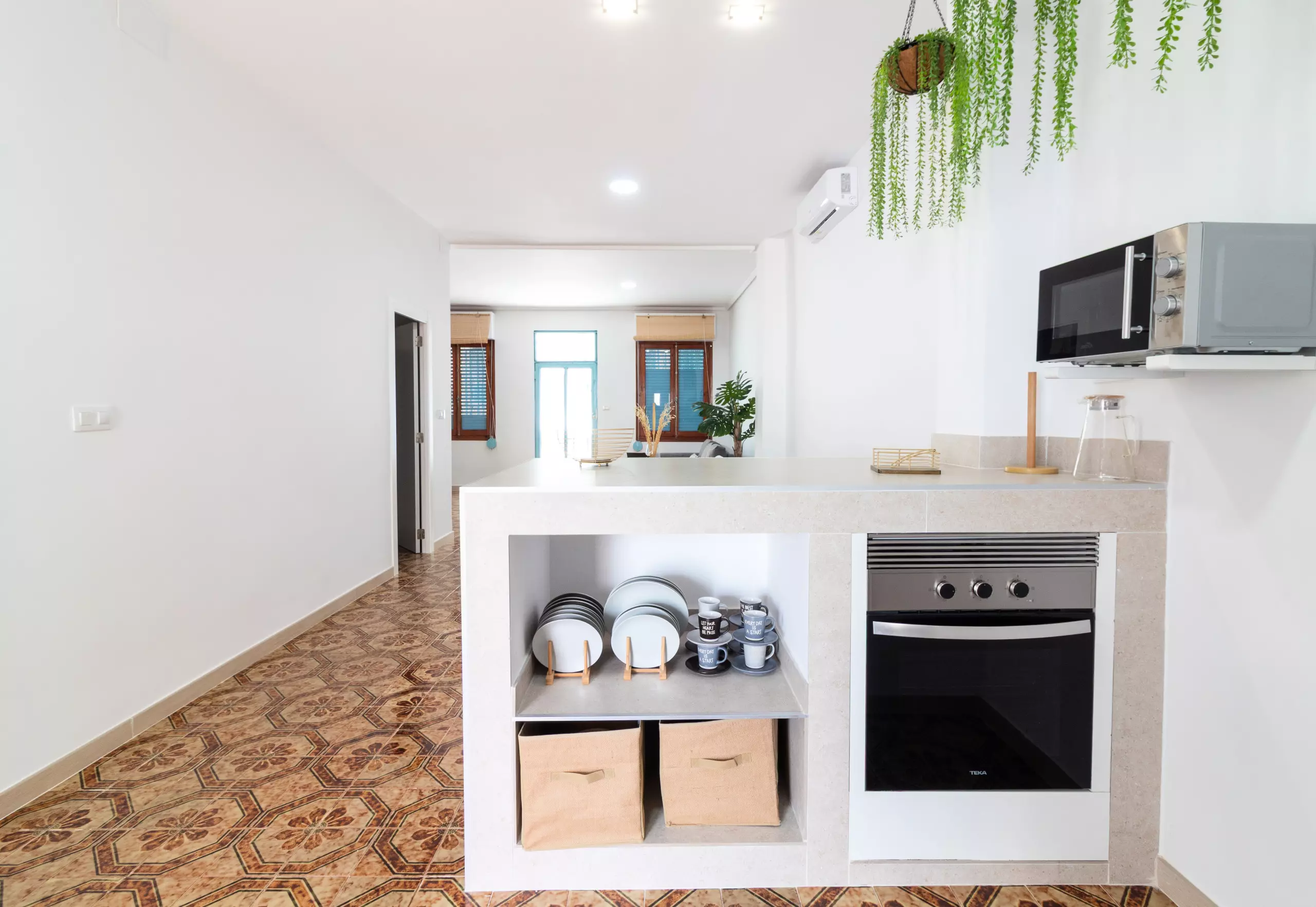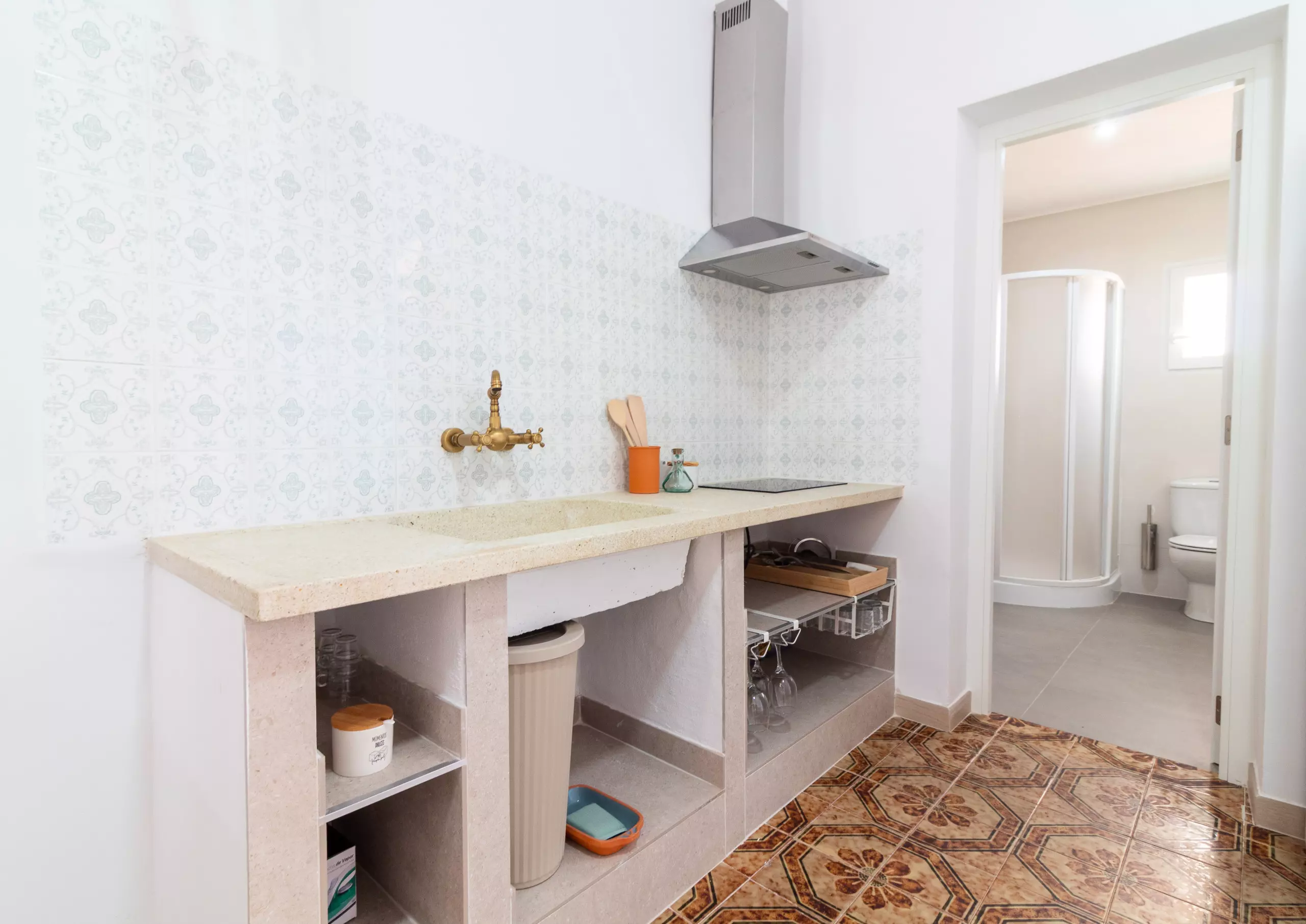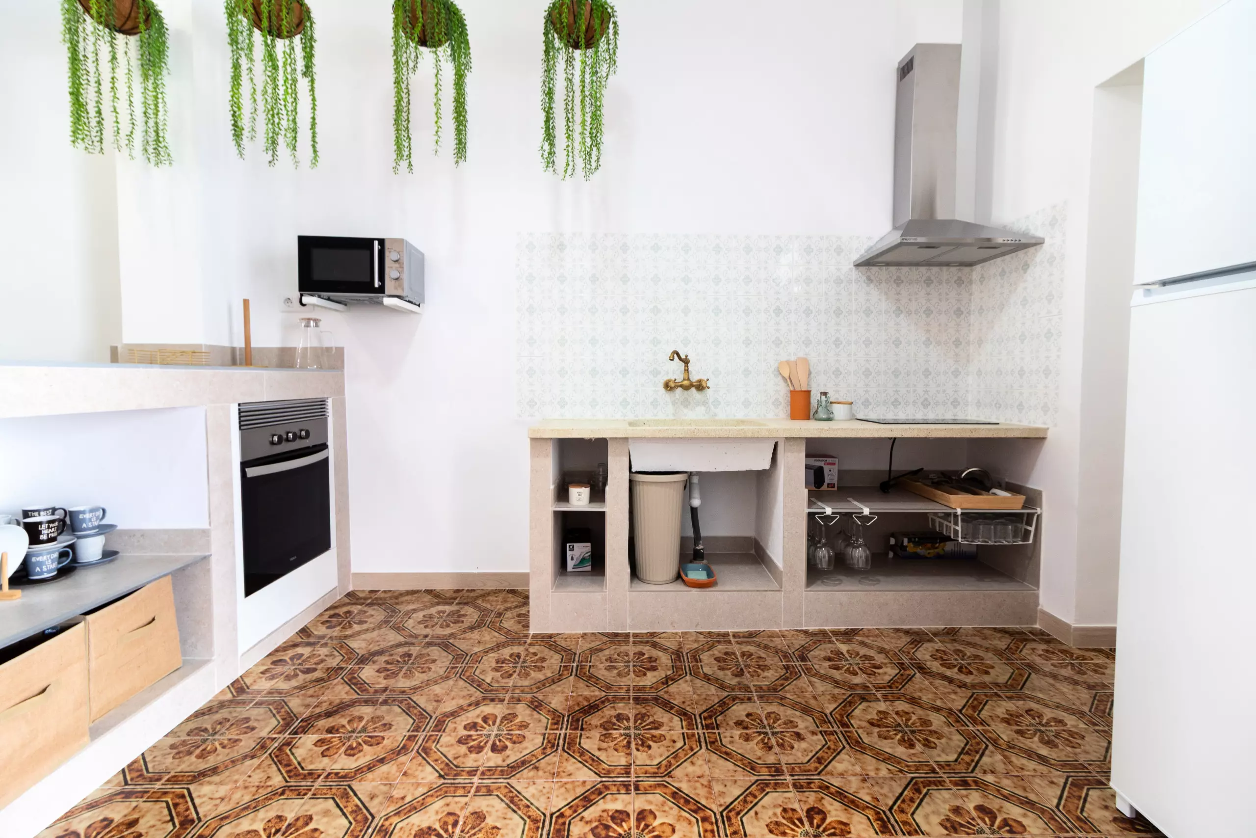 La maison a un aménagement intelligent qui comprend une cuisine américaine entièrement équipée avec des appareils modernes tels qu'un four, un four micro-ondes, une machine à café, un grille-pain et un presse-agrumes. Le salon est climatisé pour maintenir un environnement frais et agréable pendant les journées les plus chaudes.