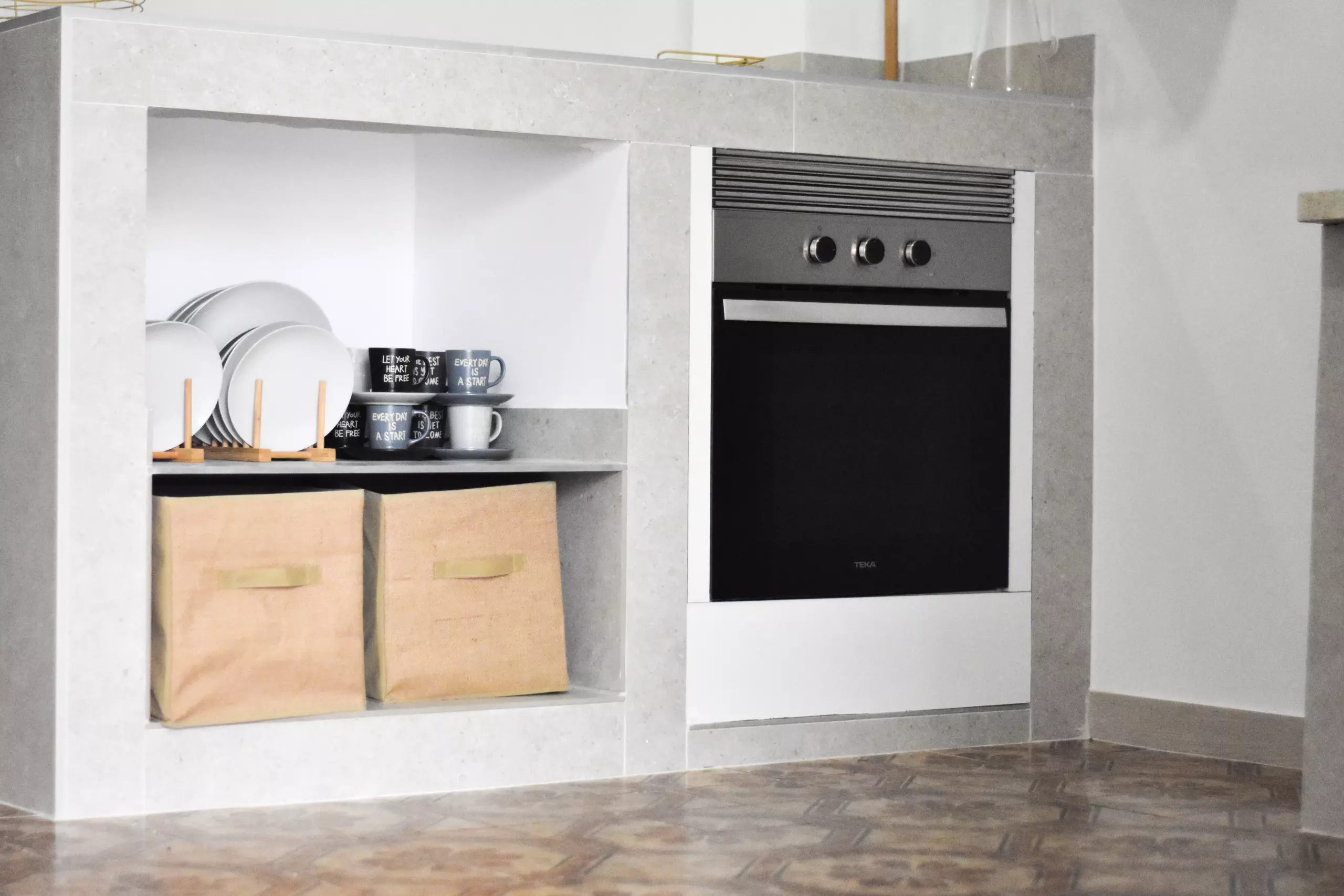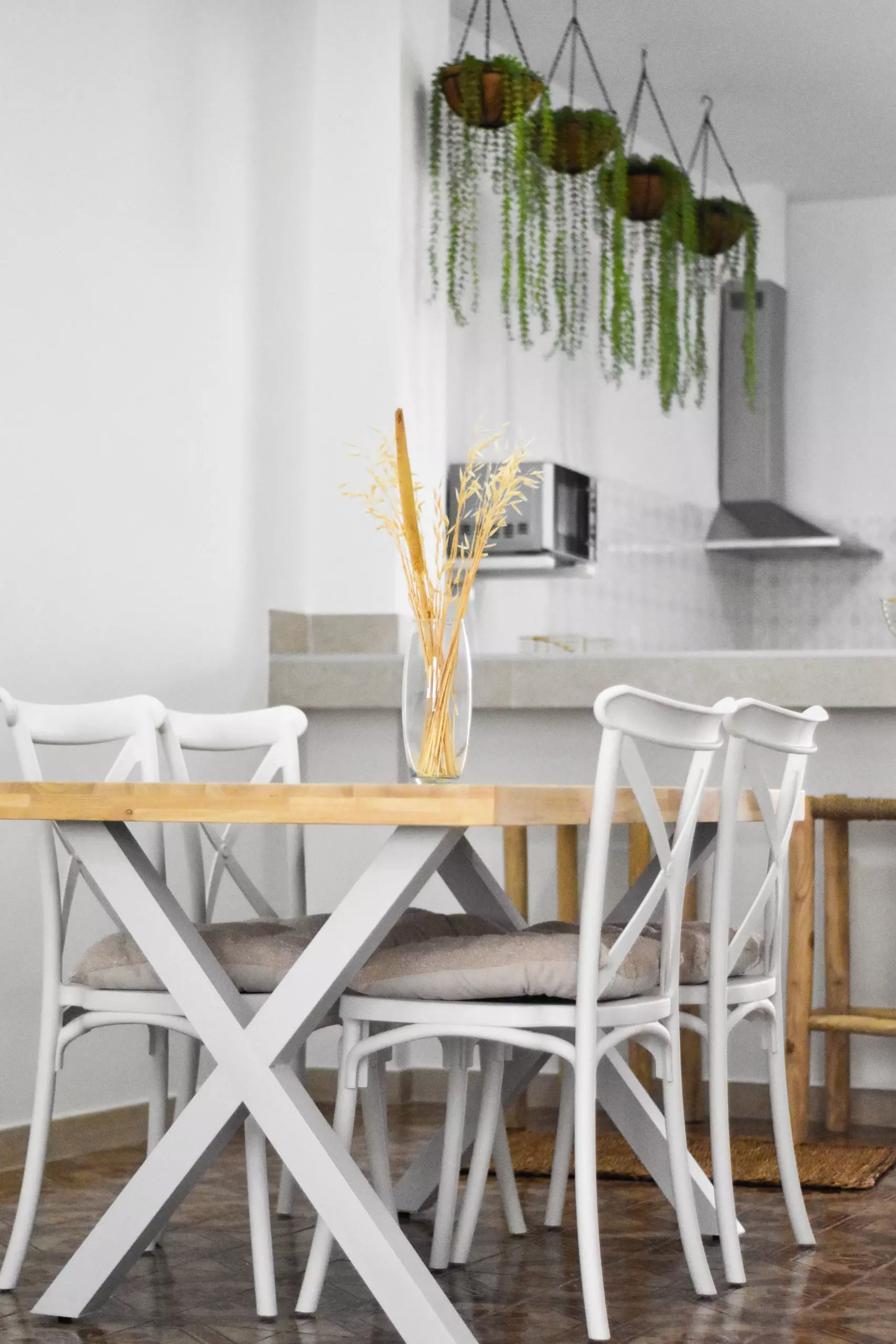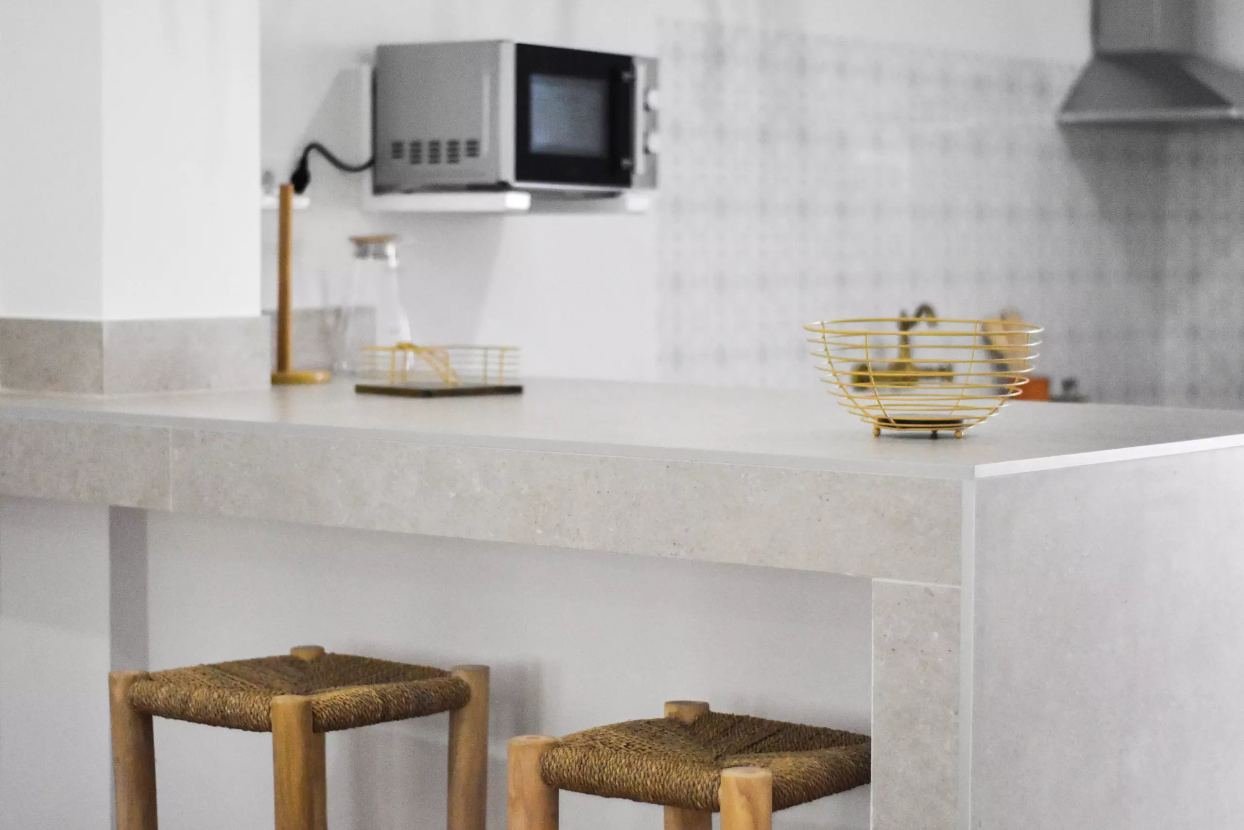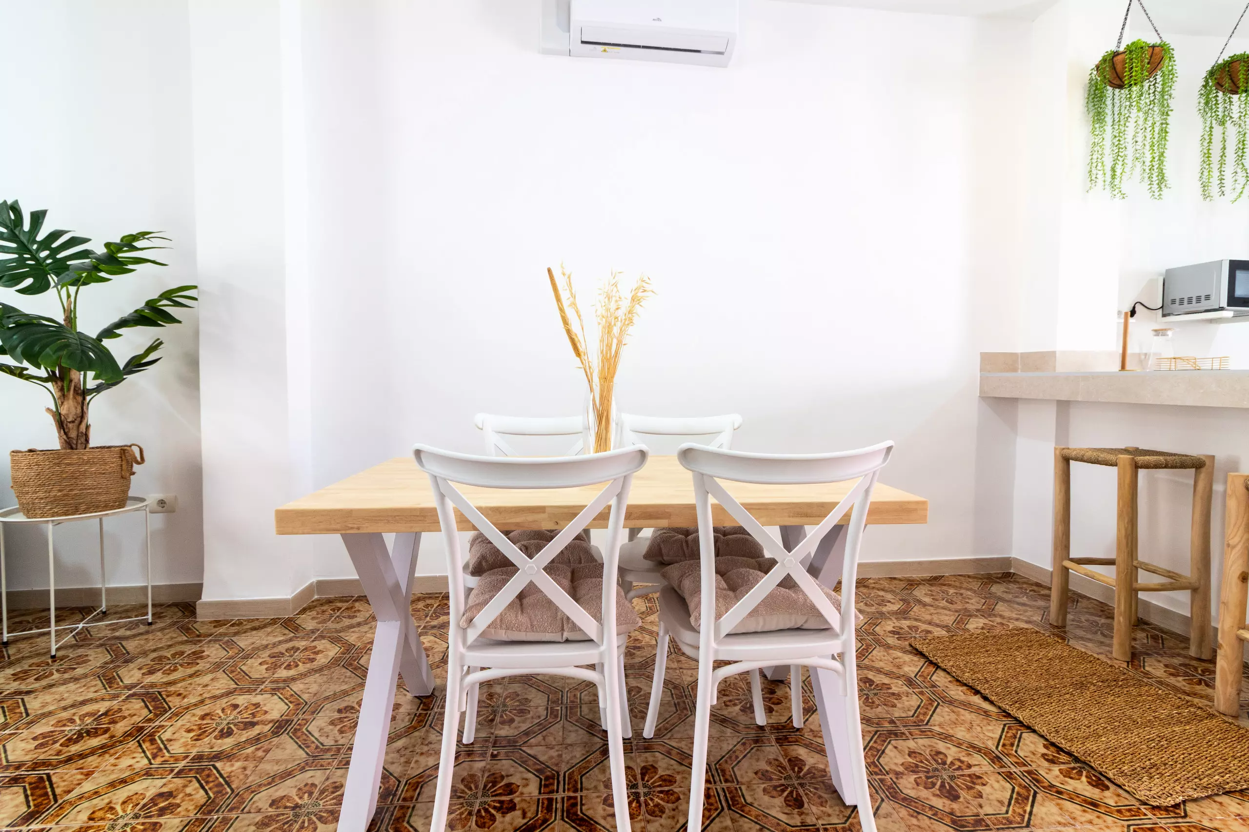 La maison a un aménagement intelligent qui comprend une cuisine américaine entièrement équipée avec des appareils modernes tels qu'un four, un four micro-ondes, une machine à café, un grille-pain et un presse-agrumes. Le salon est climatisé pour maintenir un environnement frais et agréable pendant les journées les plus chaudes.