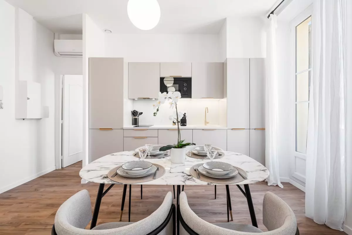 Cet appartement charmant, entièrement refait à neuf par un architecte d'intérieur, est situé au premier étage d'un immeuble sans ascenseur et peut accueillir jusqu'à 4 personnes, offrant un cadre paisible avec vue sur cour.