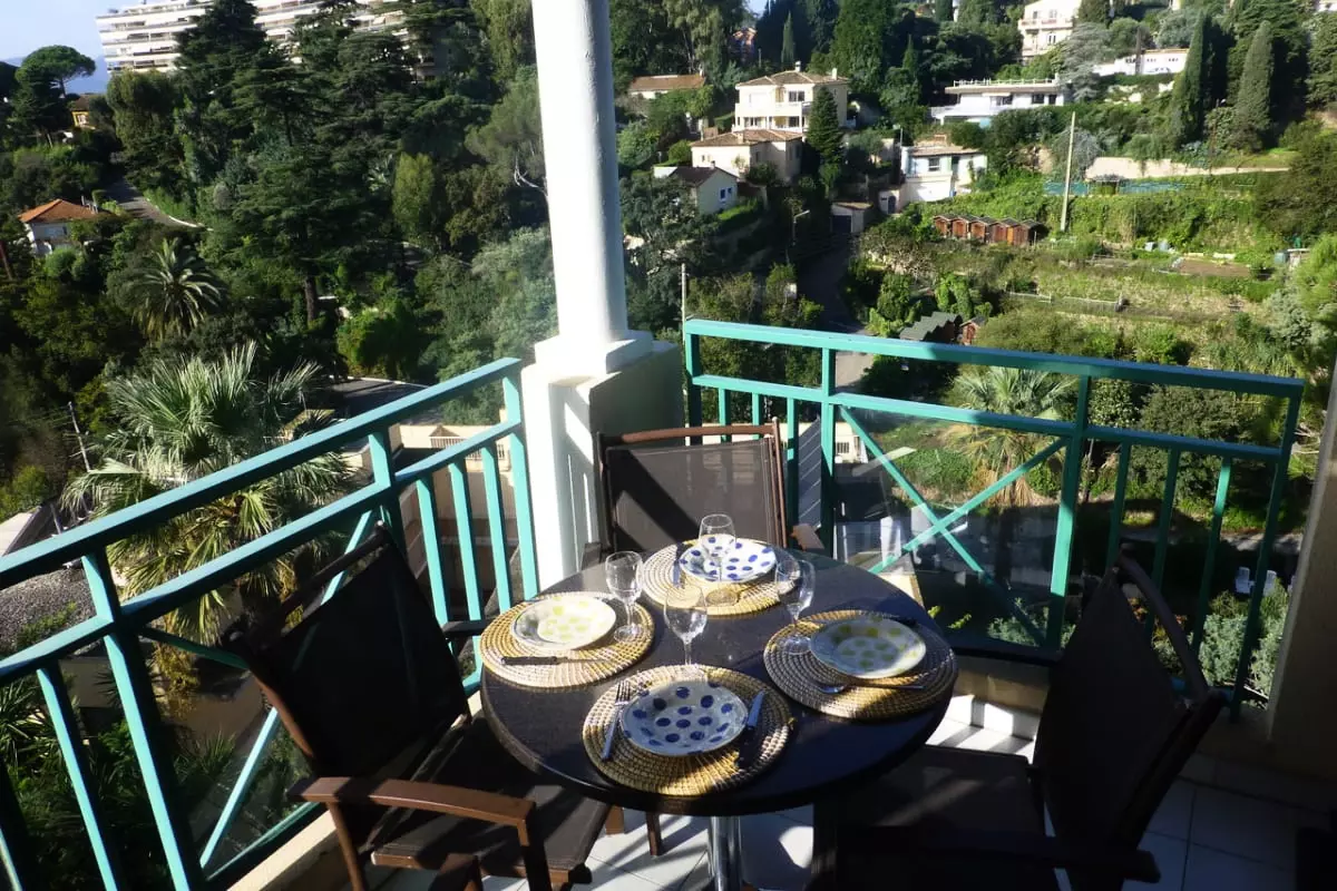 - La terrasse avec vue mer est protégée par un toit de tuiles pour éviter la chaleur excessive, un atout également pour le balcon de la chambre.