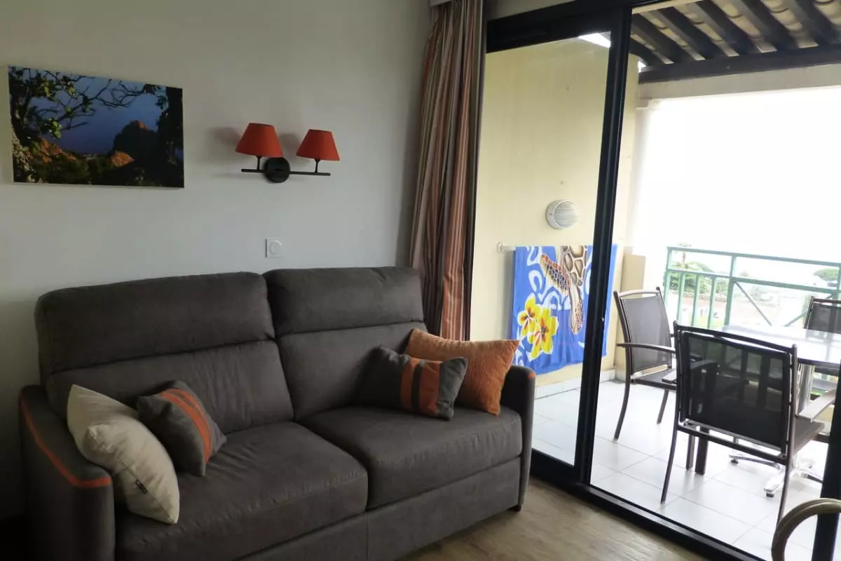- Un salon climatisé avec un canapé-lit en cuir Center de qualité pour vous détendre après une intense journée à la mer ou à la piscine.