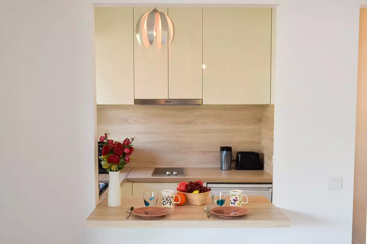 - Cuisine ouverte avec un comptoir, pour vos repas à 2.