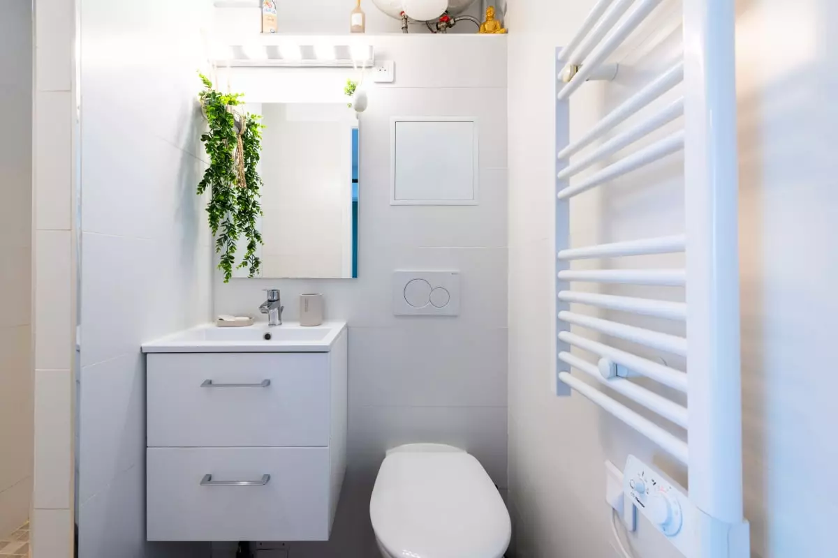 La salle de douche avec WC complète ce logement pensé pour un usage pratique et agréable.