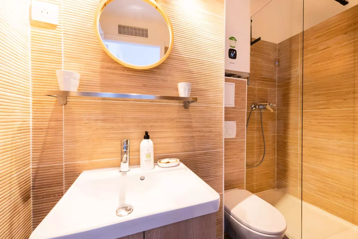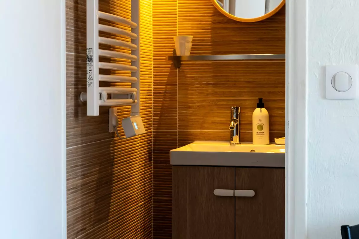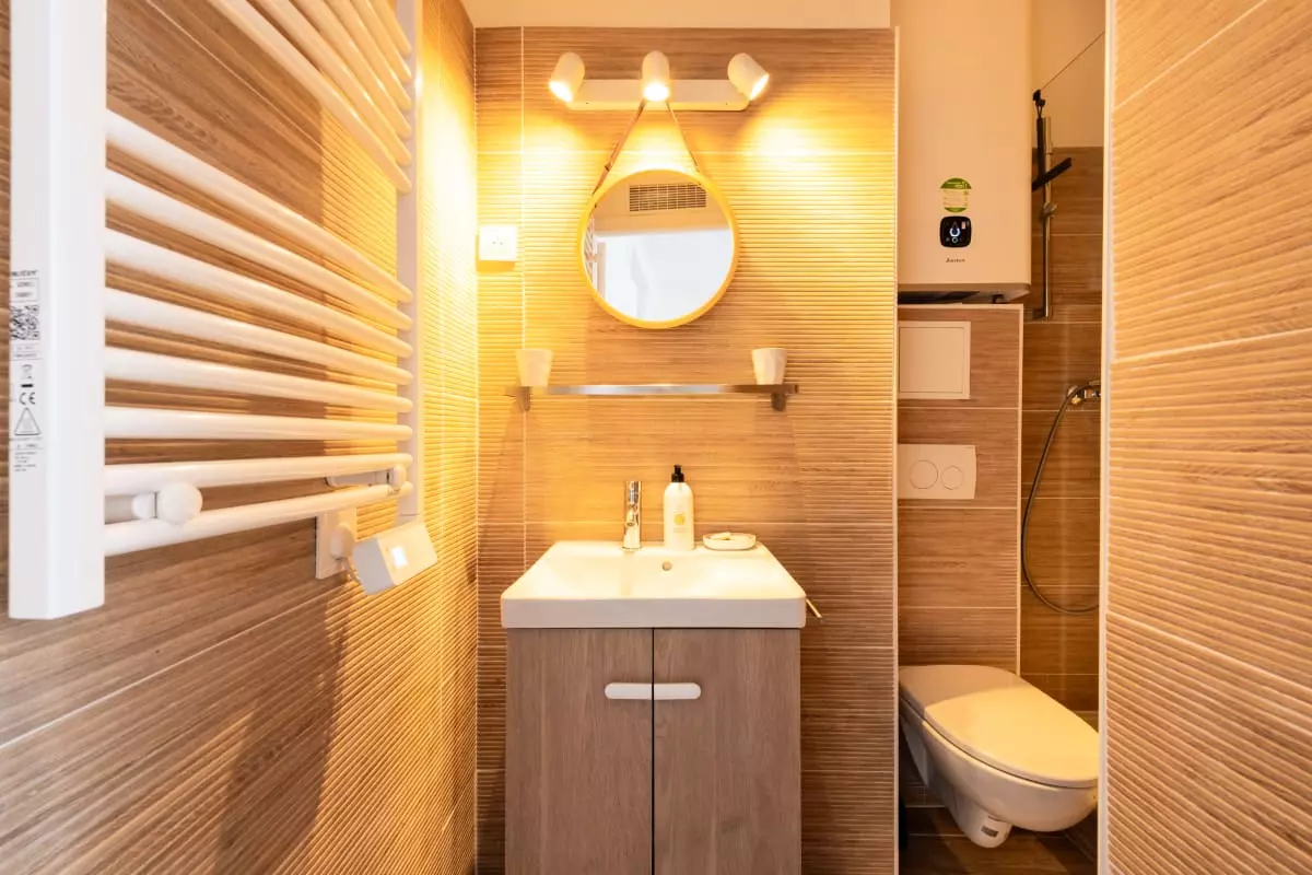 La salle de douche avec WC complète l’ensemble.