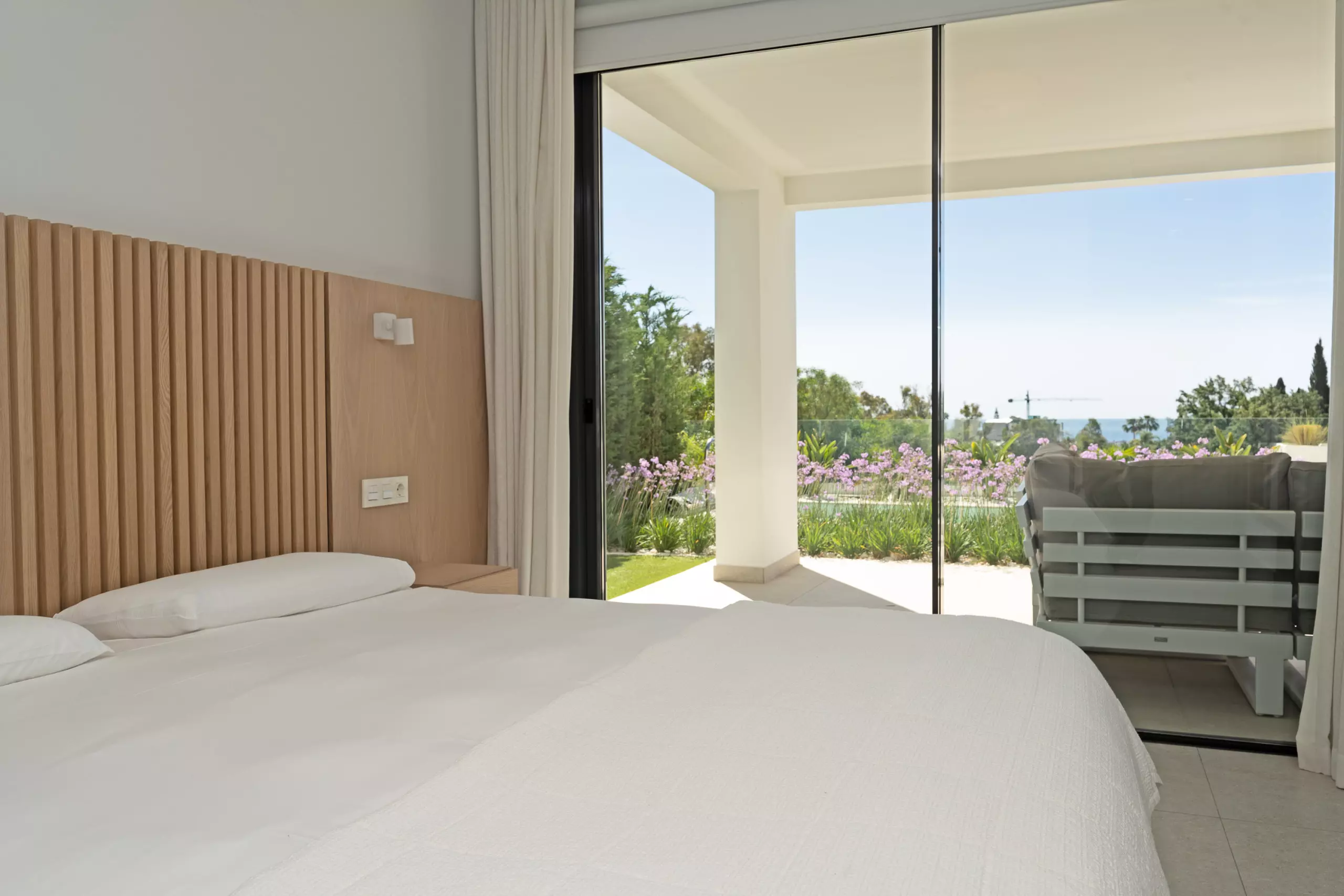 Profitez de vues à couper le souffle sur la mer et le parcours de golf depuis votre propre oasis de jardin, avec une piscine privée - parfaite pour se prélasser au soleil en toute tranquillité. Pour plus de plaisir, le développement propose également une piscine commune et une salle de sport entièrement équipée, afin que vous puissiez rester actif pendant votre séjour.