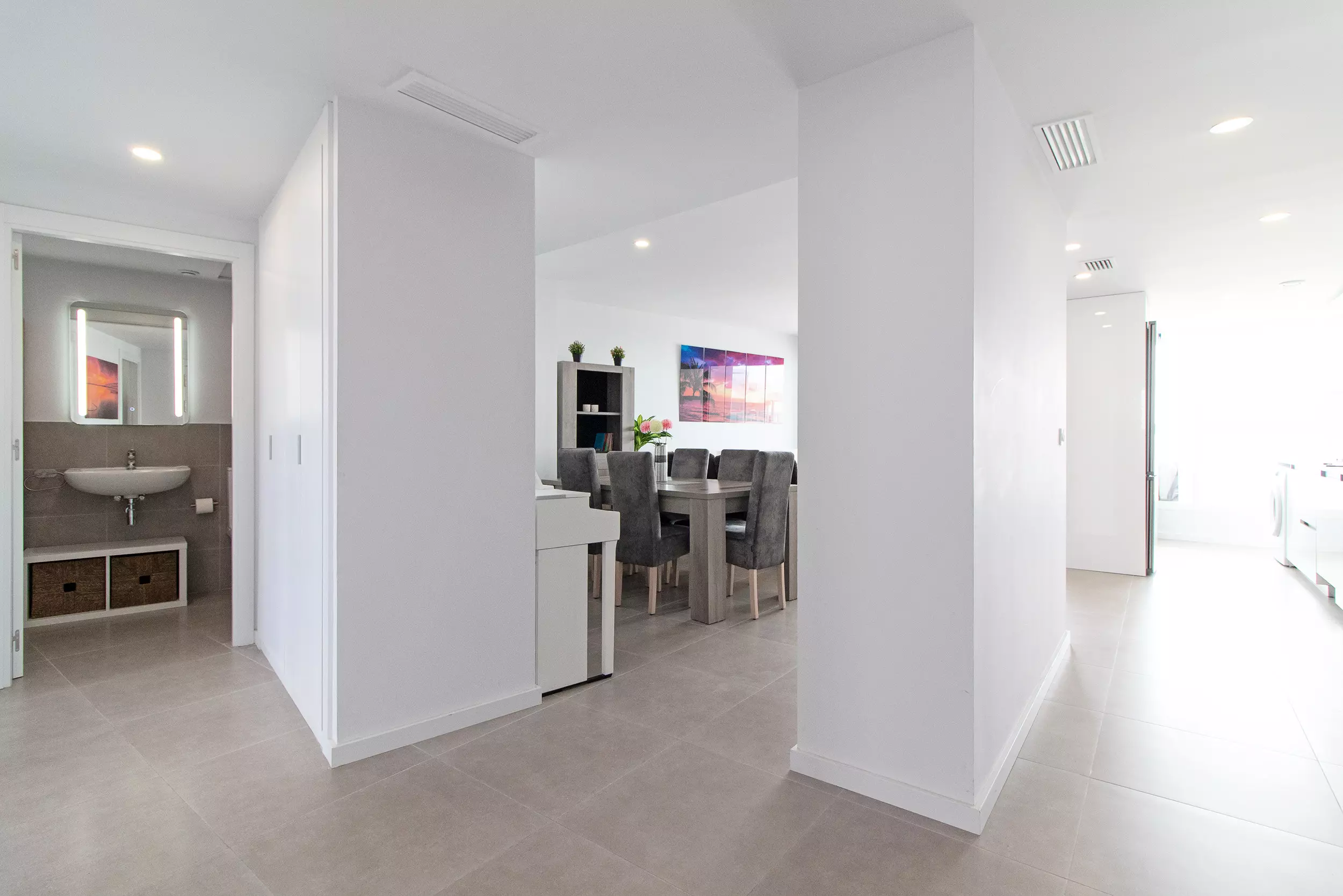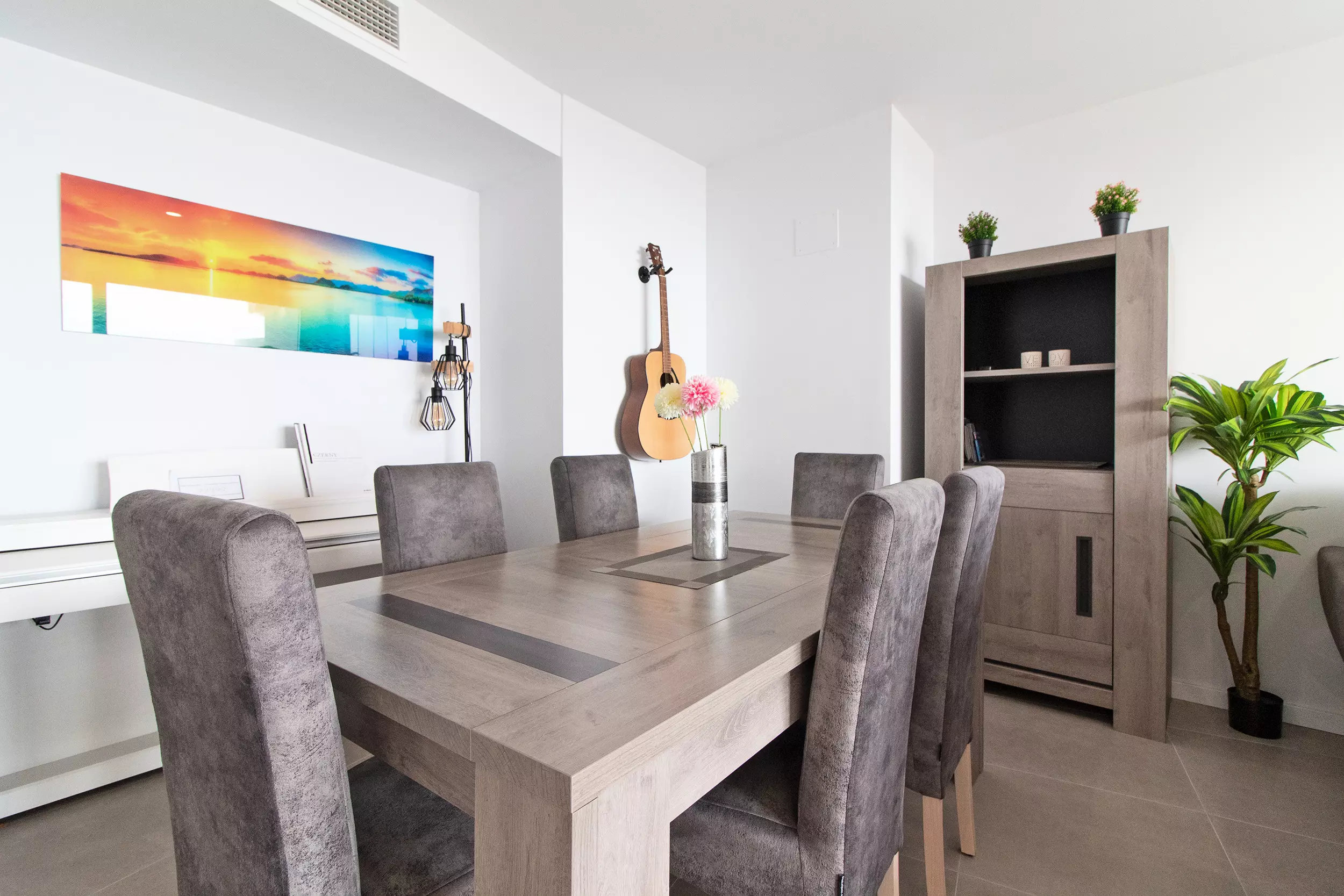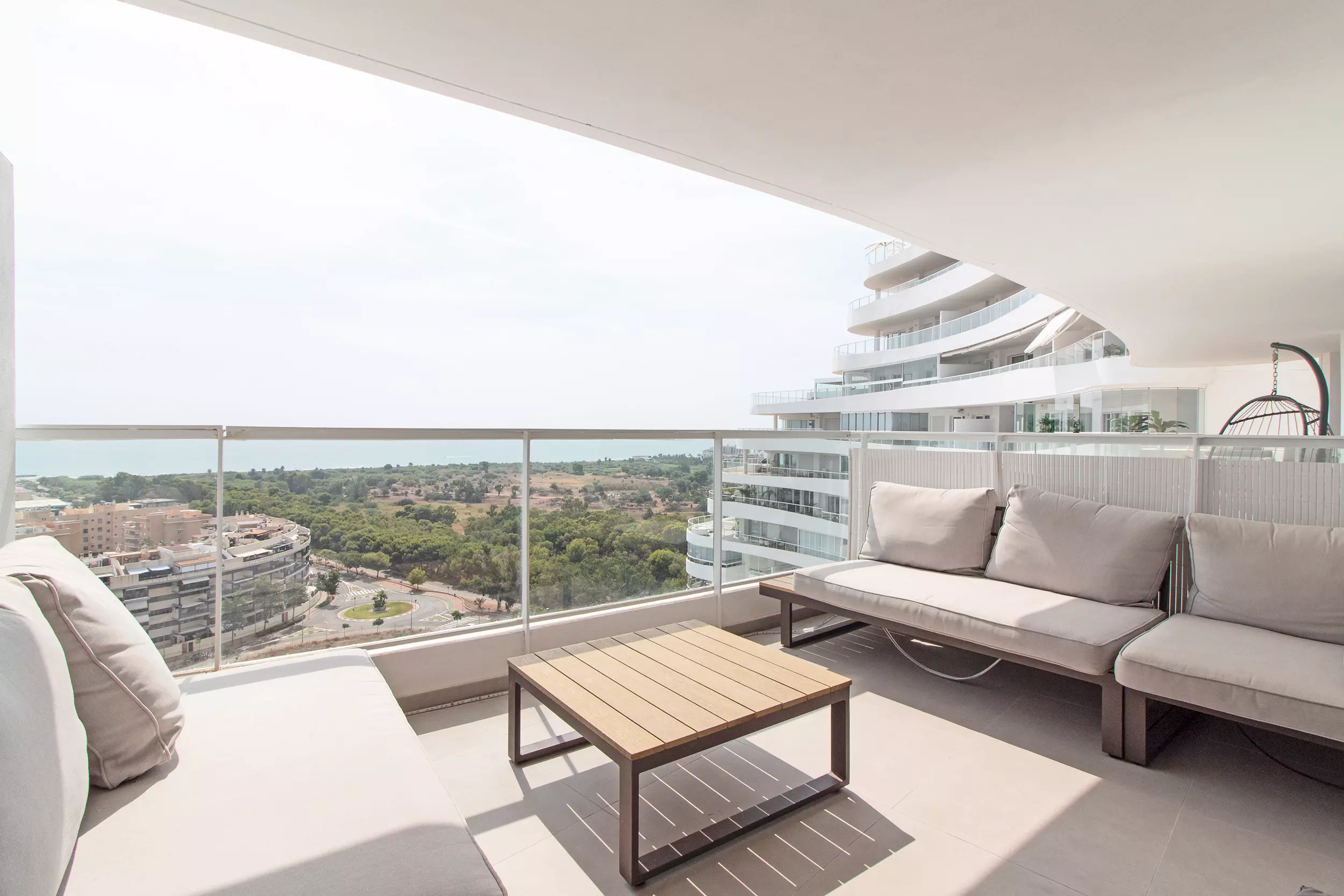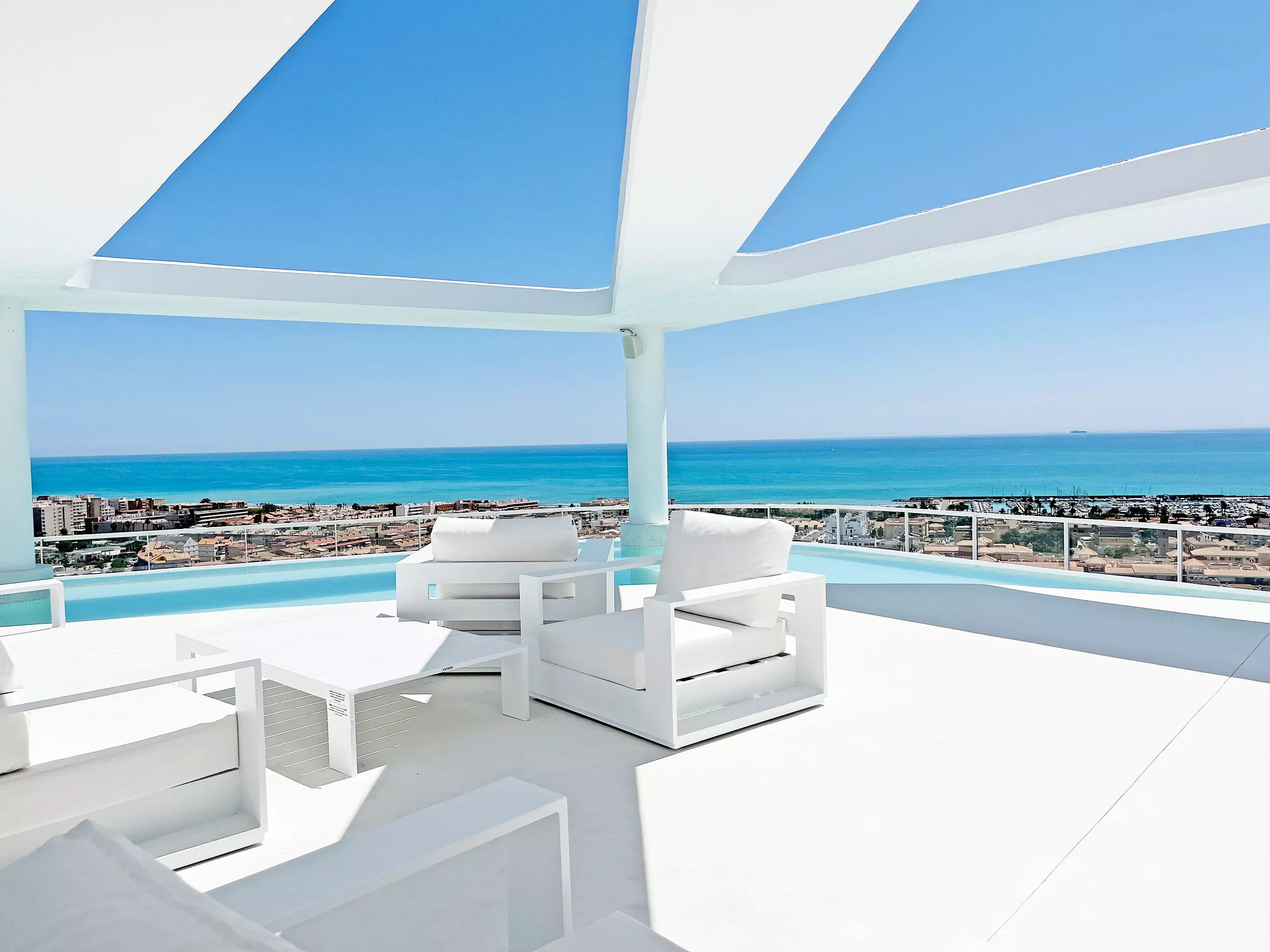 L'appartement dispose de 4 chambres, dont deux avec accès à une grande terrasse avec vue sur la montagne. De plus, il y a un salon avec de grandes fenêtres qui donnent accès à la terrasse avec vue sur la mer. Les deux terrasses sont entièrement équipées et sont l'endroit idéal pour profiter en famille ou entre amis.