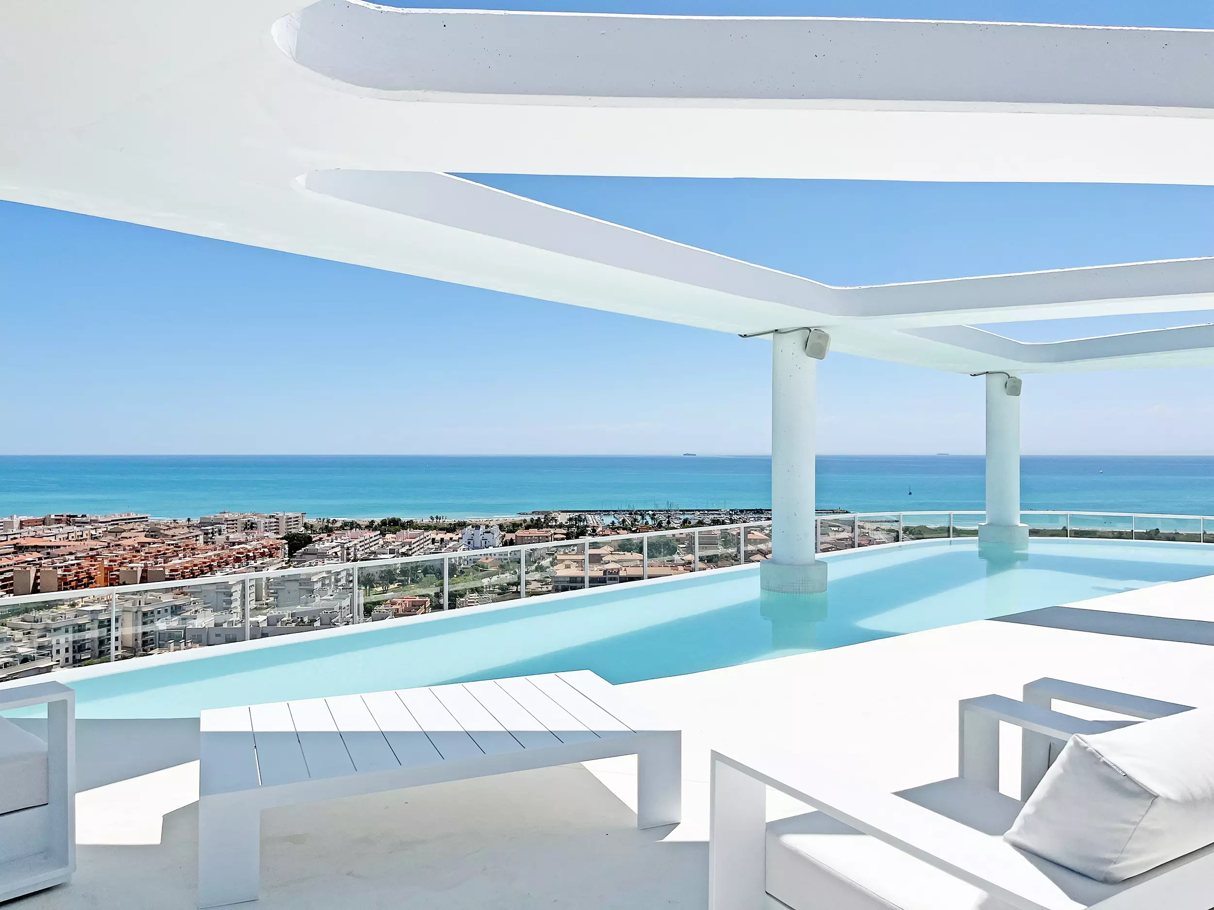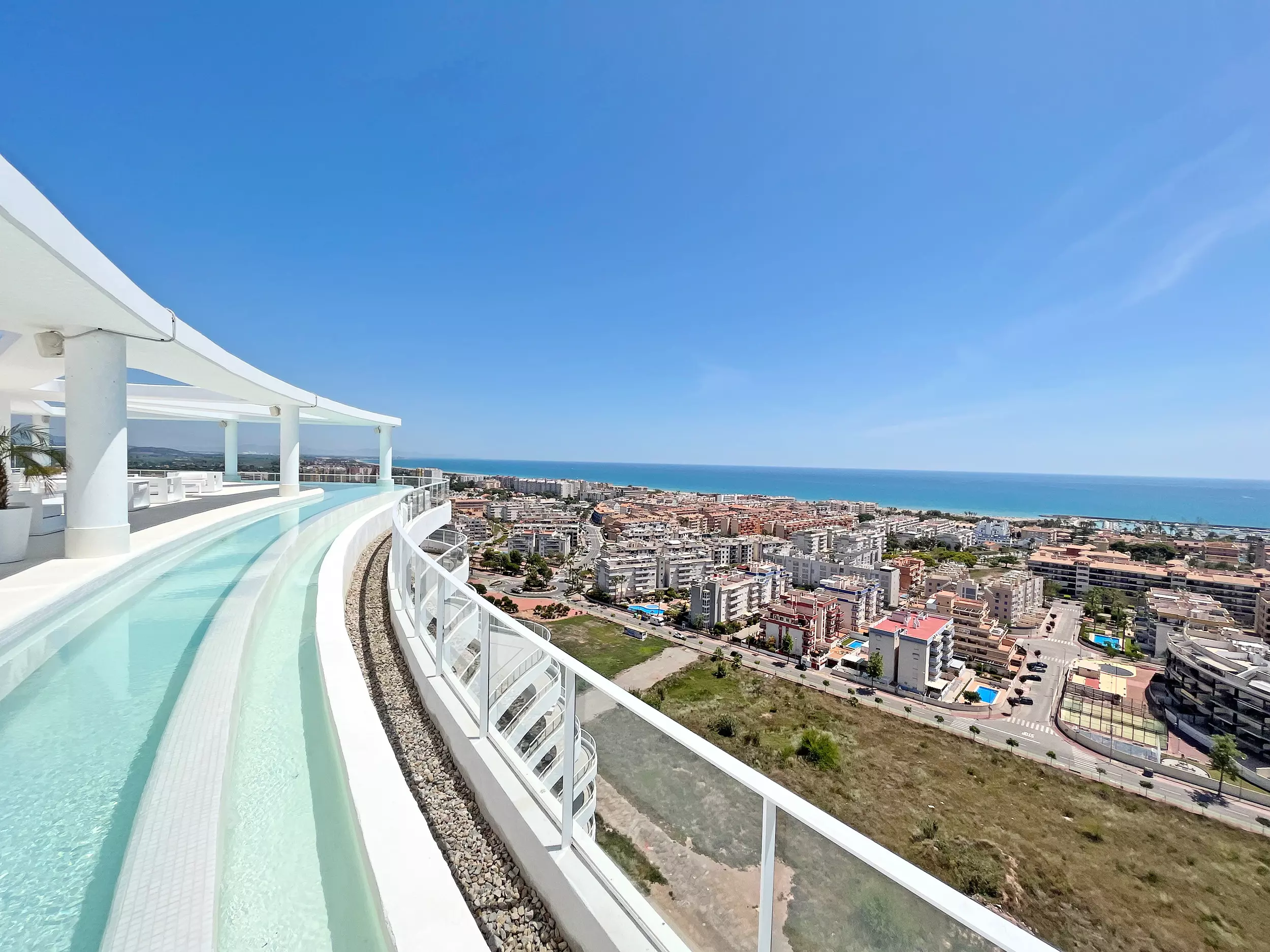 Vous voulez en savoir plus sur ce logement ? Il est situé dans le Residencial Gran Canet, avec plus de 7 600 m² d'espaces communs et 800 m² de piscines. Il dispose de jardins, d'une grande piscine avec accès de type plage (surveillée par un sauveteur) et d'une zone de solarium, d'une piscine pour enfants et d'un parc pour les plus petits, d'une salle de sport, d'un spa avec sauna, de courts de padel et d'espaces sportifs. De plus, le logement dispose d'une piscine privée avec vue sur la mer sur sa terrasse impressionnante.