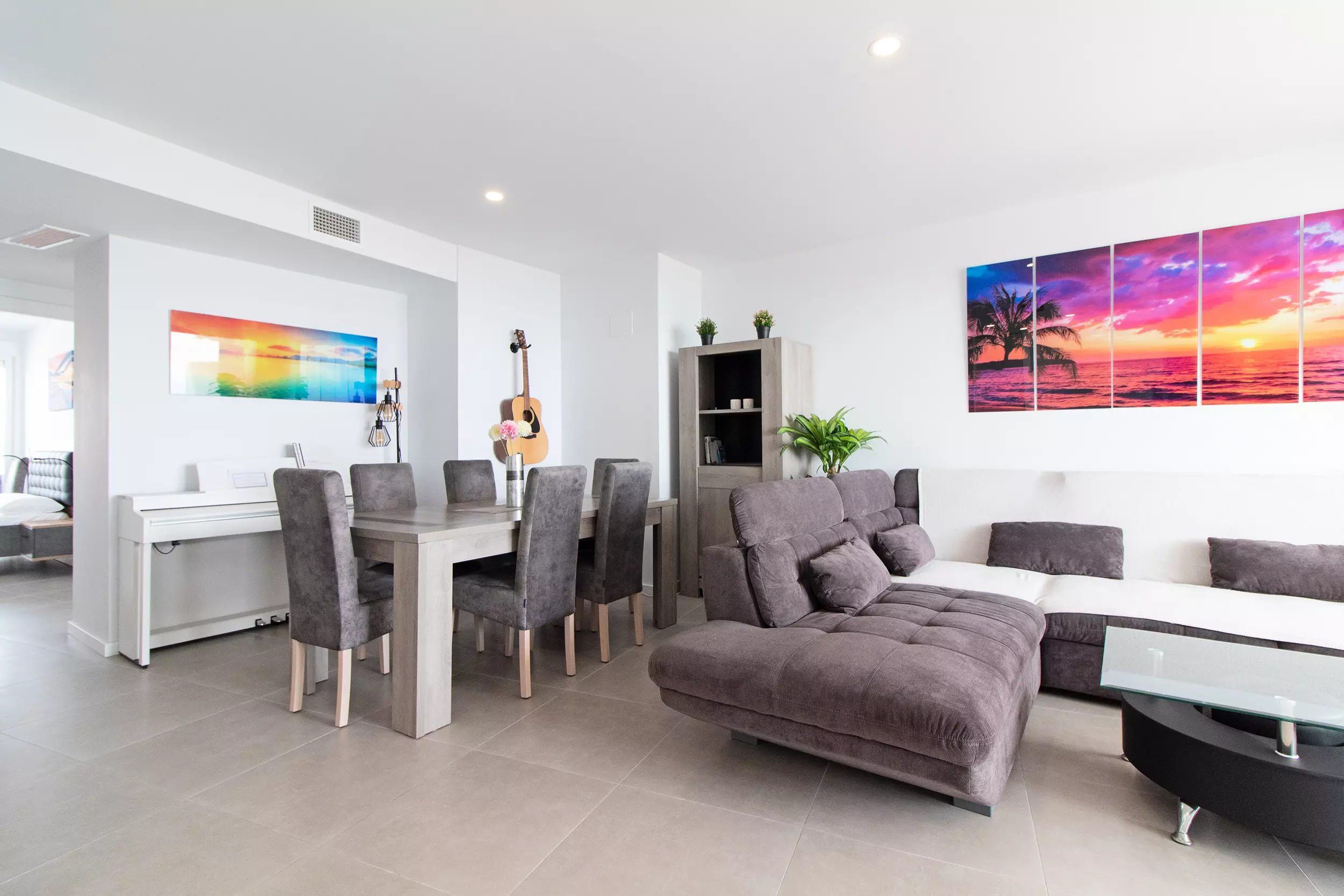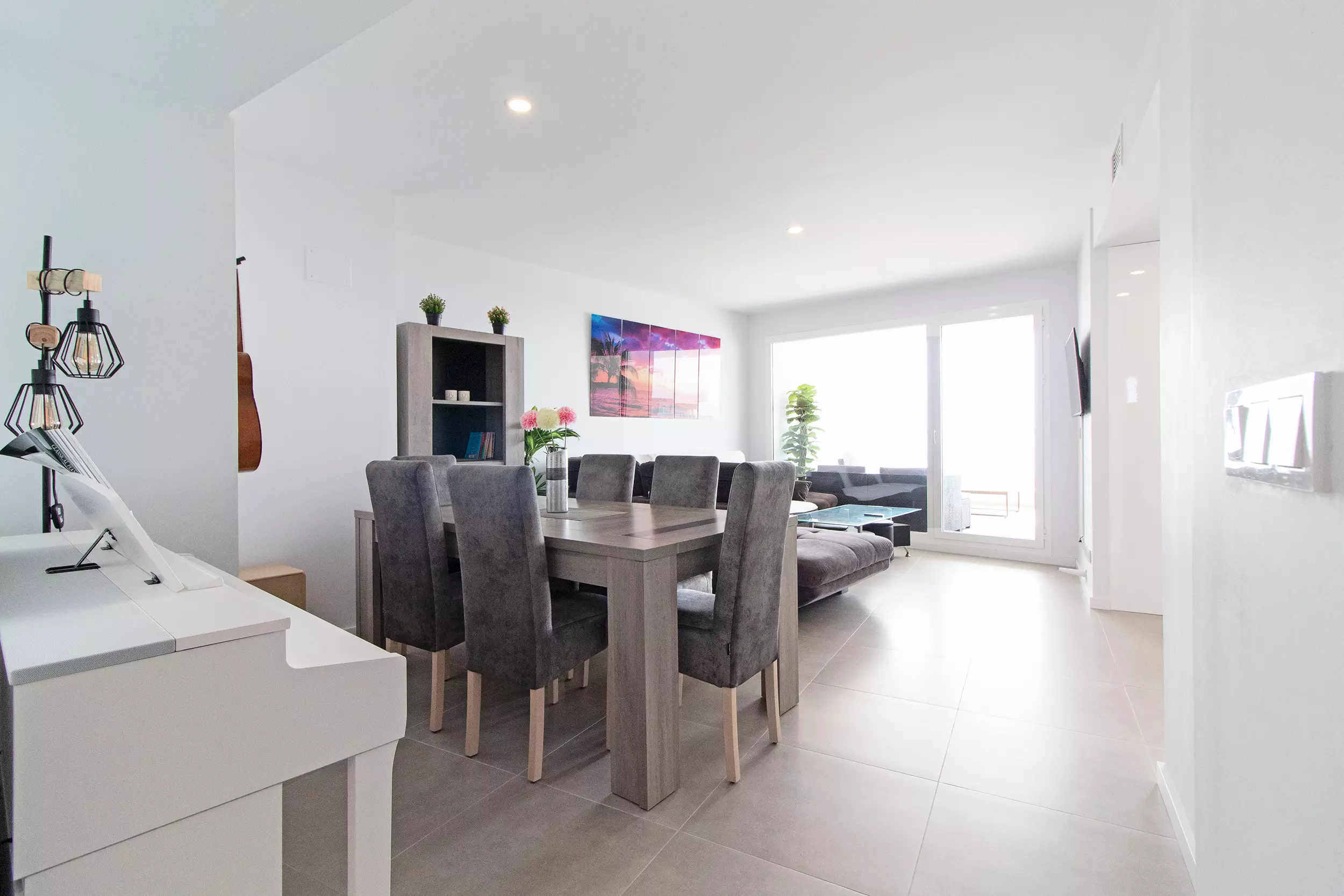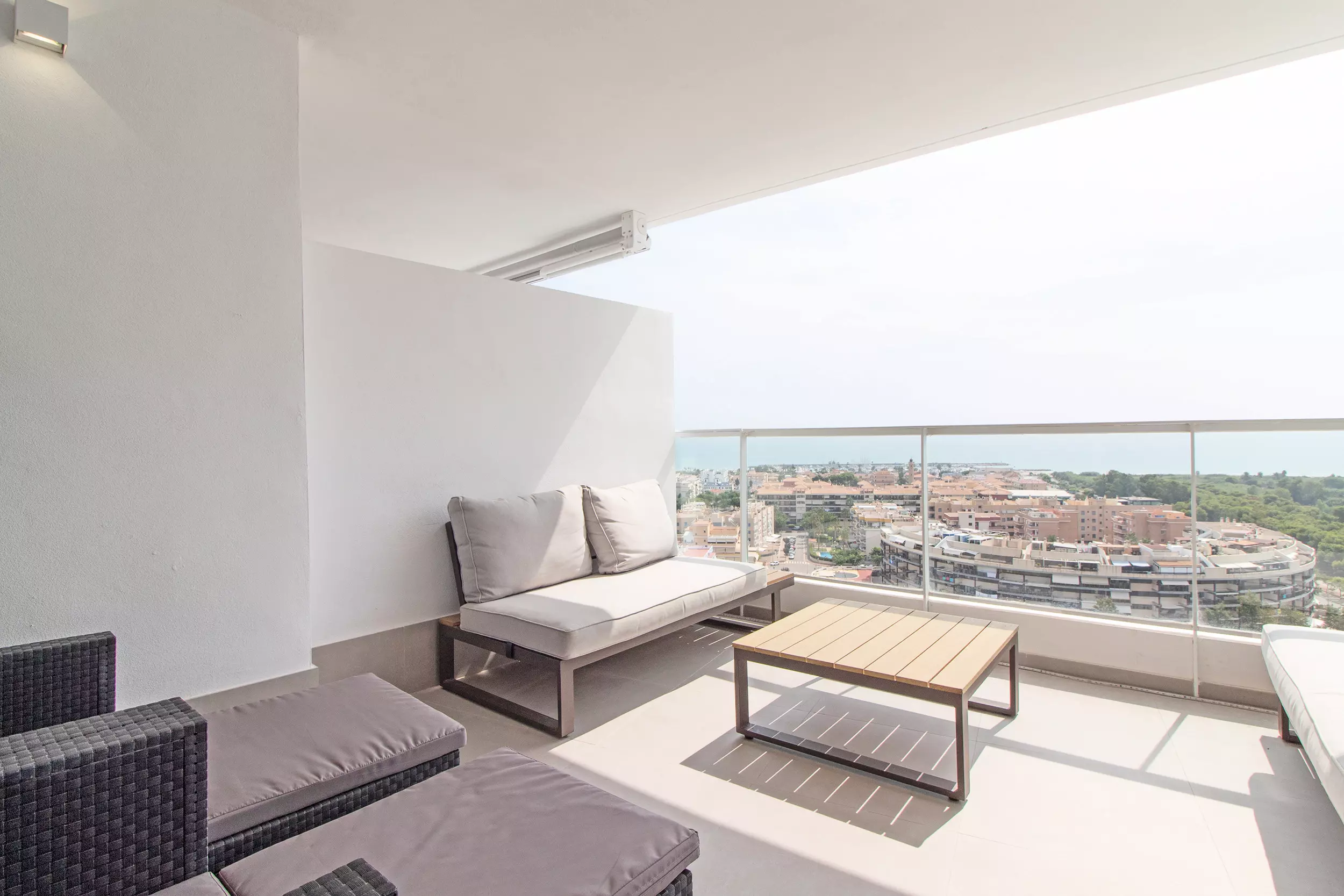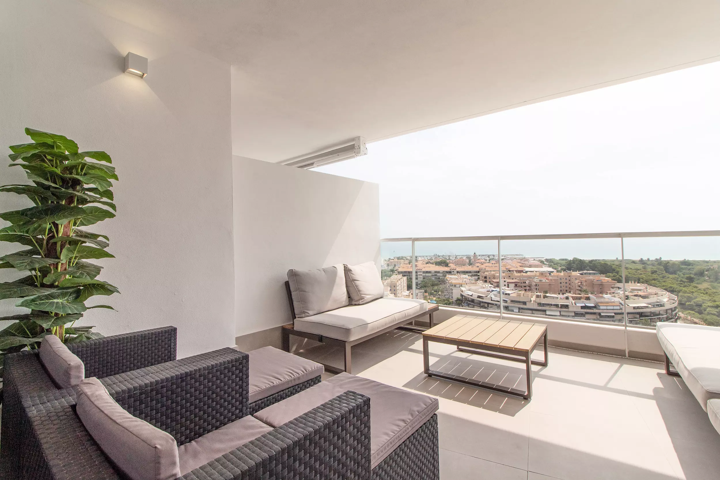 Appartement moderne avec deux terrasses incroyables, quatre chambres, deux salles de bains et capacité pour dix personnes.