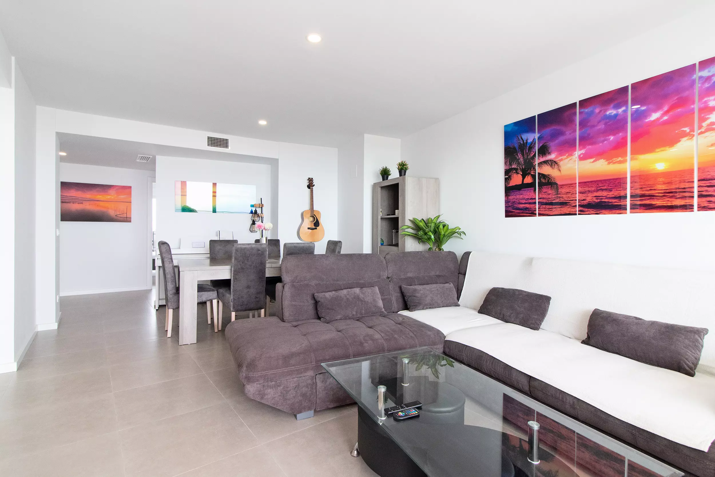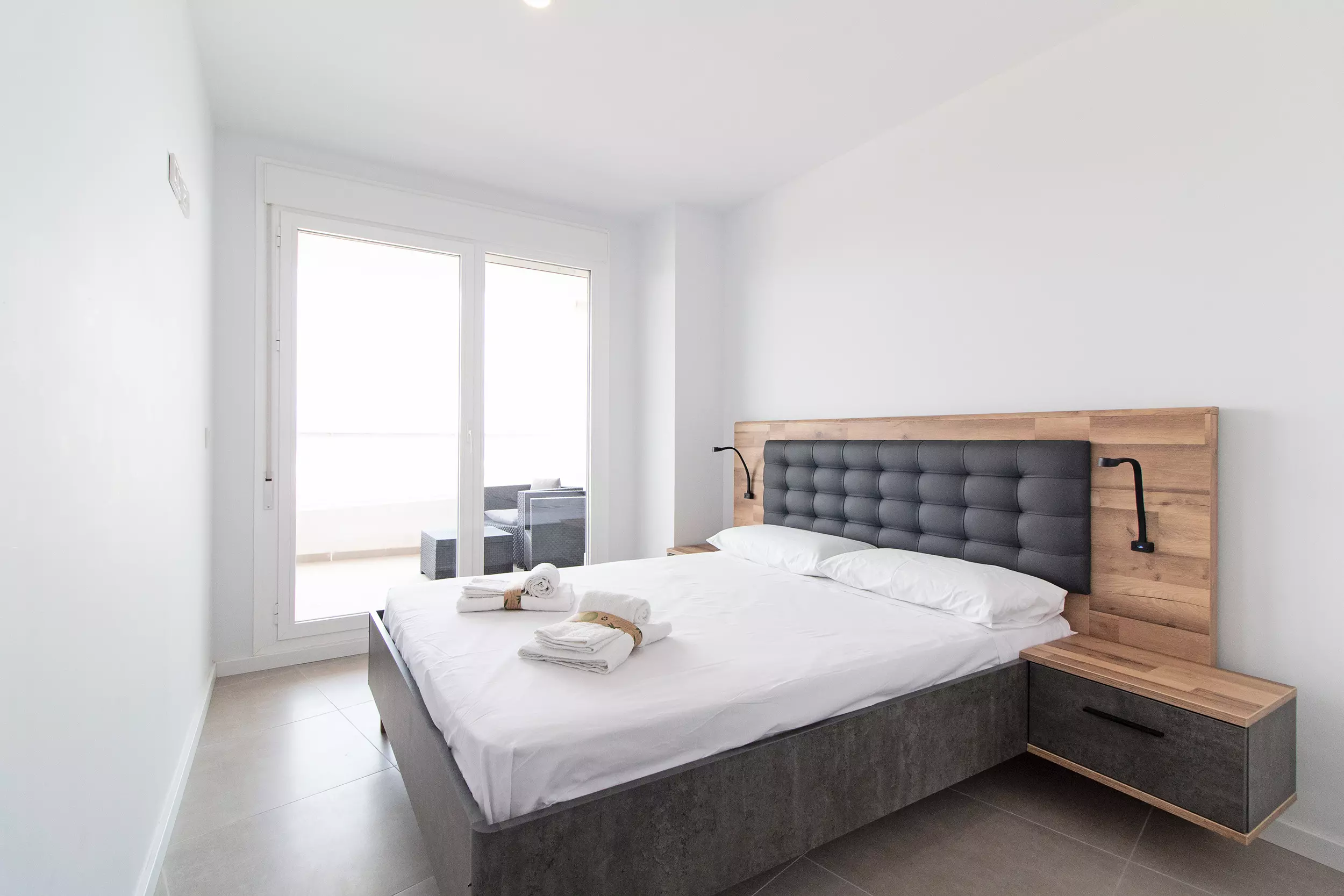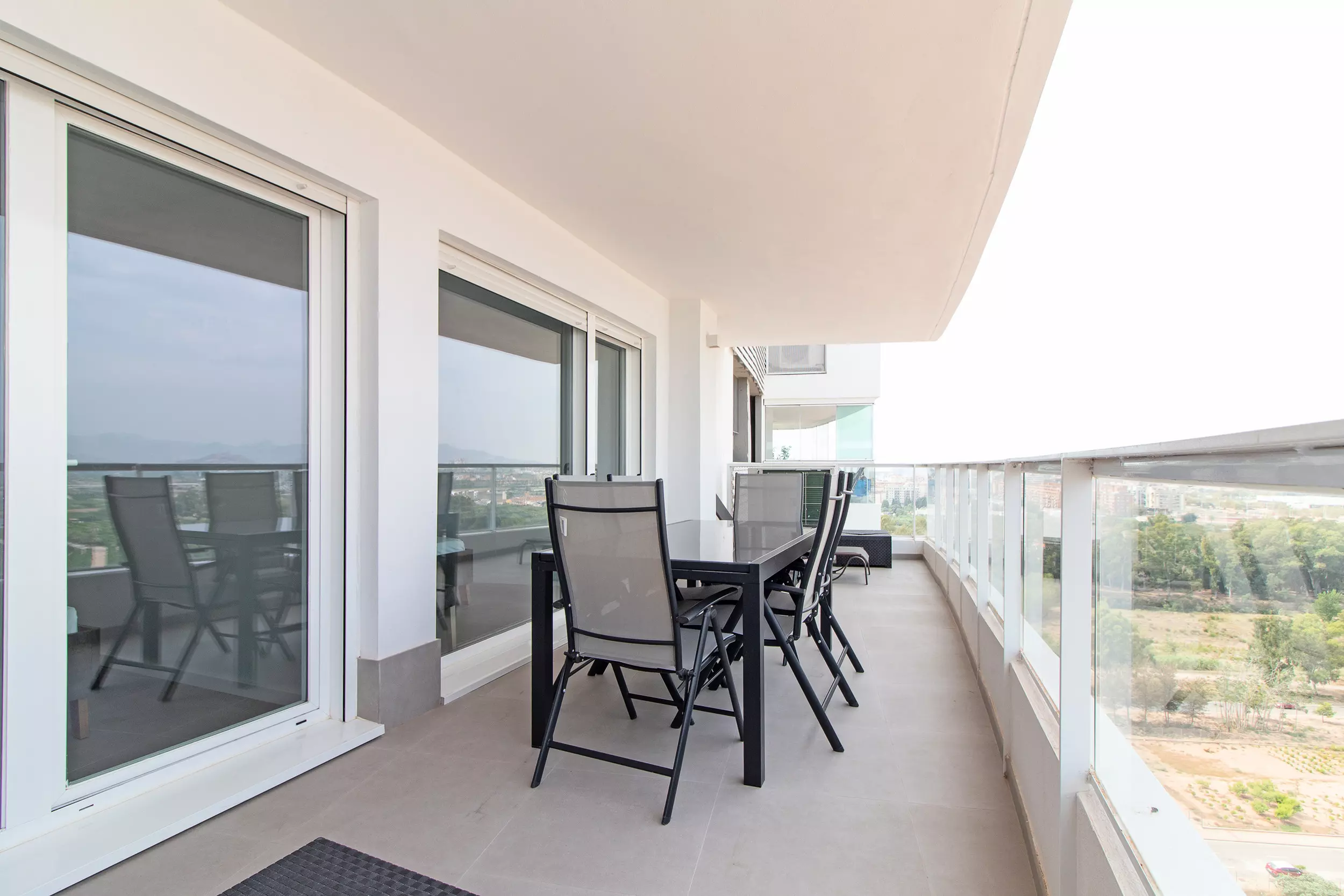 Appartement moderne avec deux terrasses incroyables, quatre chambres, deux salles de bains et capacité pour dix personnes.