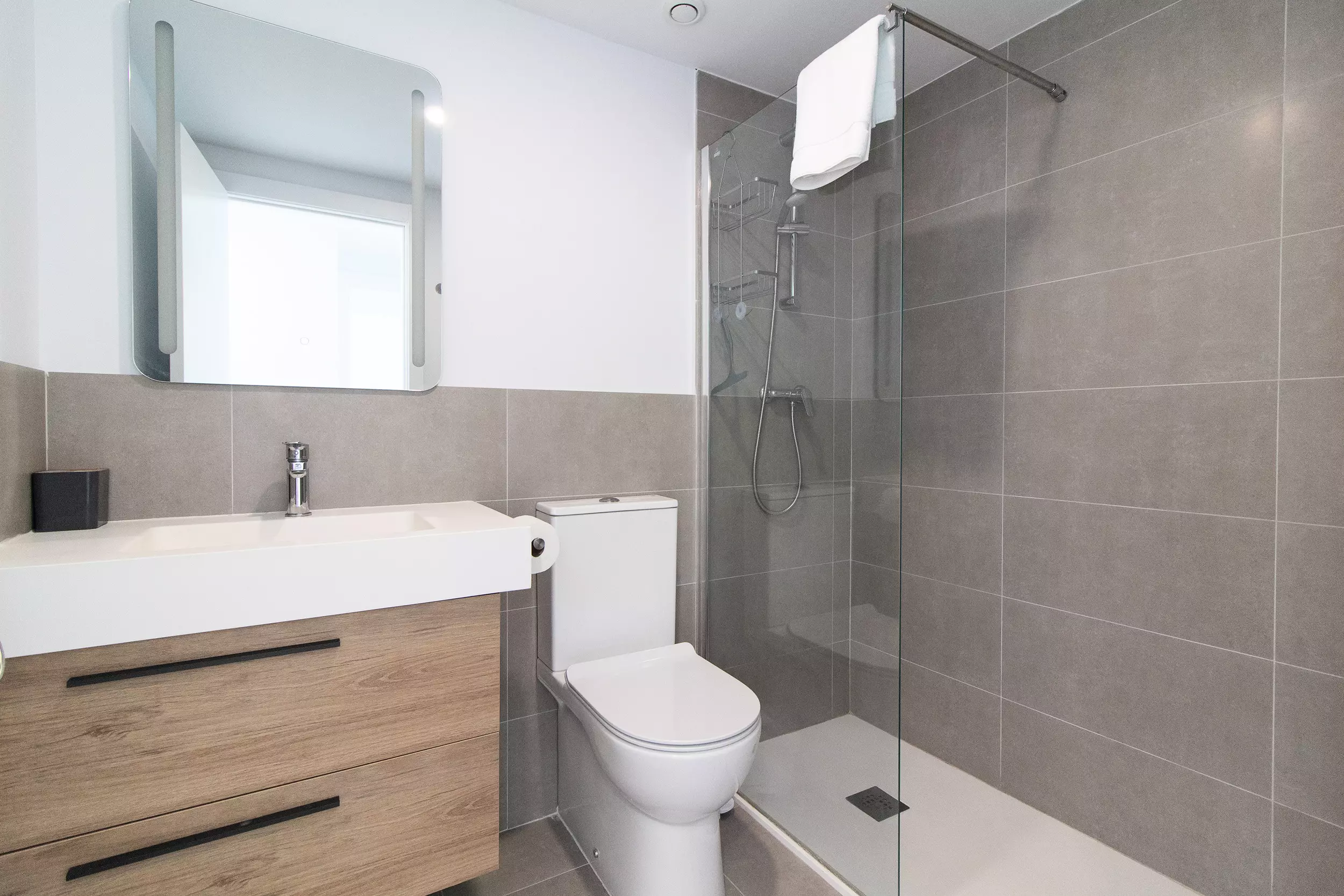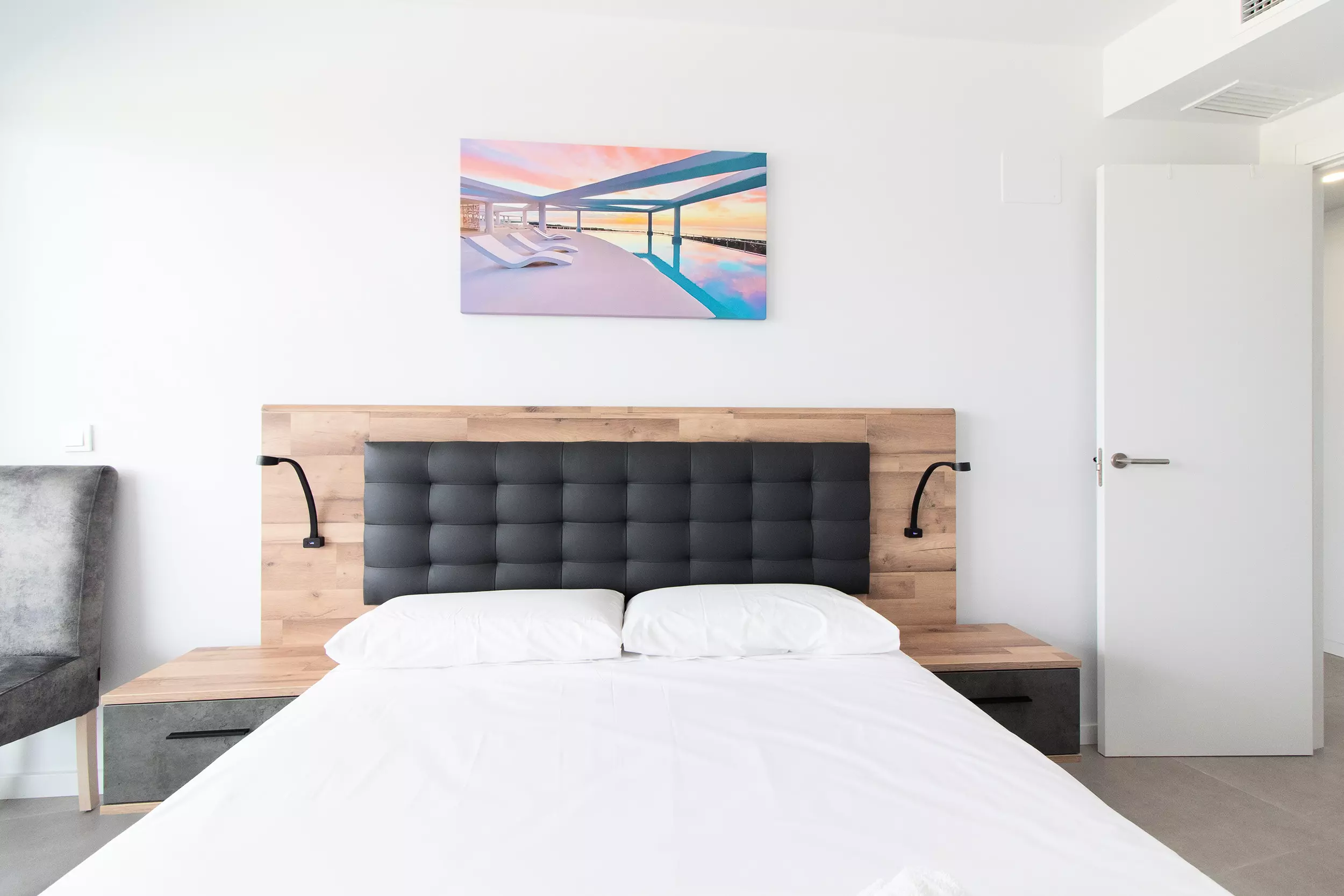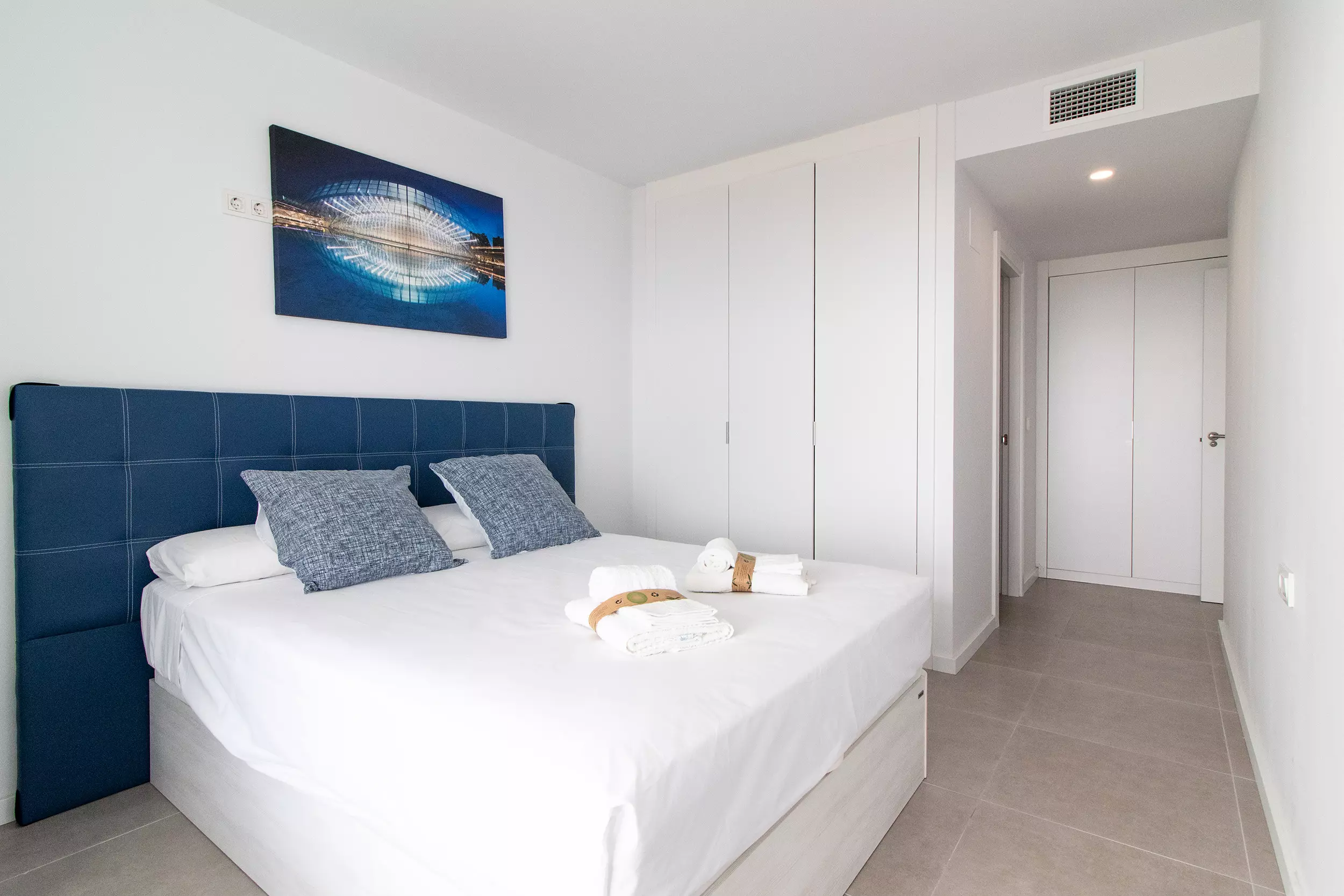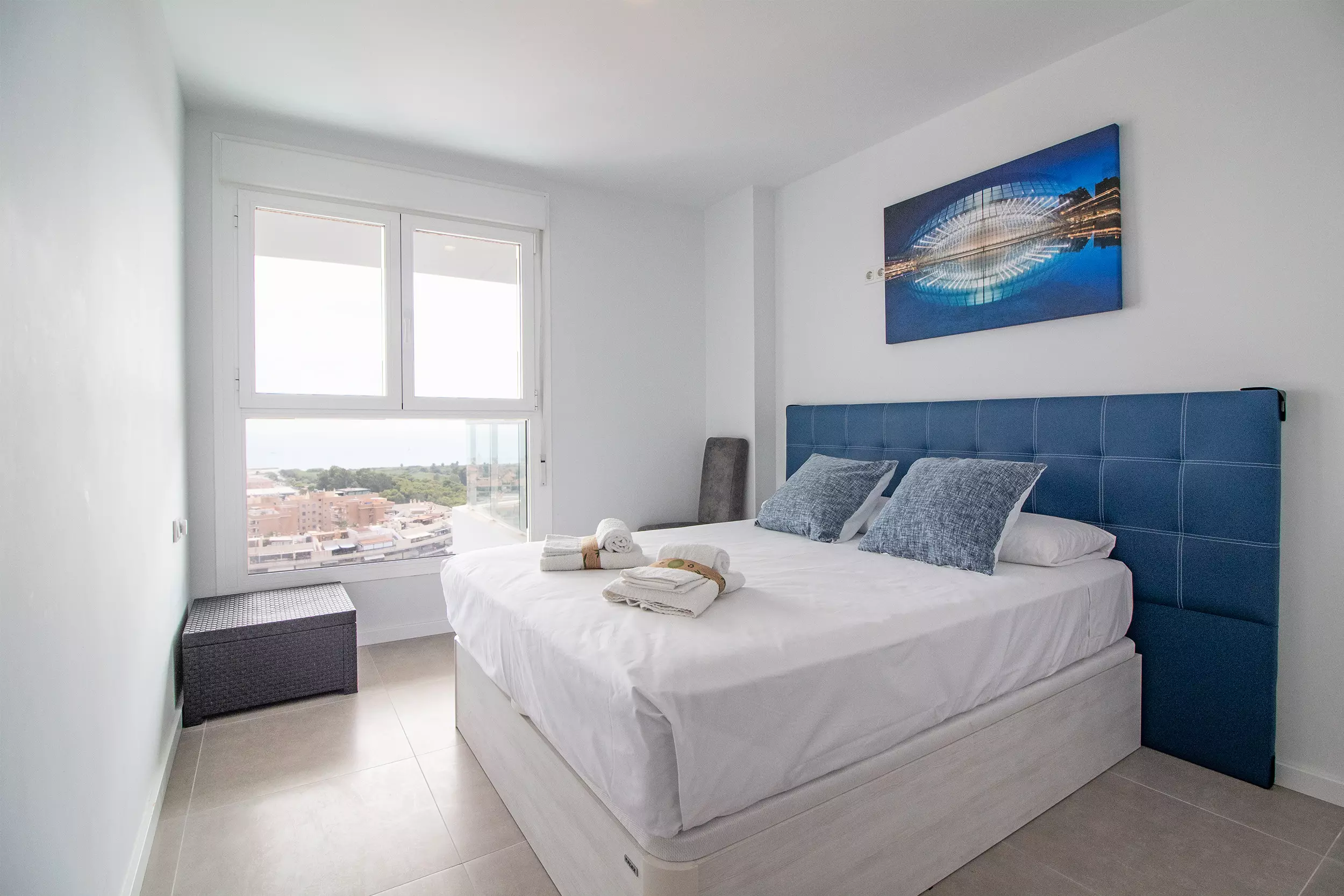Appartement moderne avec deux terrasses incroyables, quatre chambres, deux salles de bains et capacité pour dix personnes.