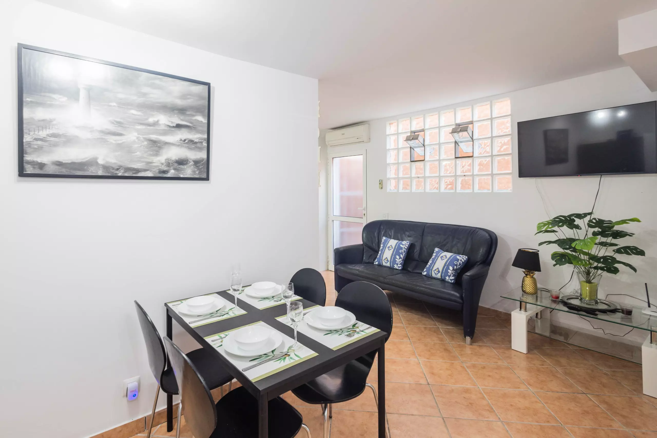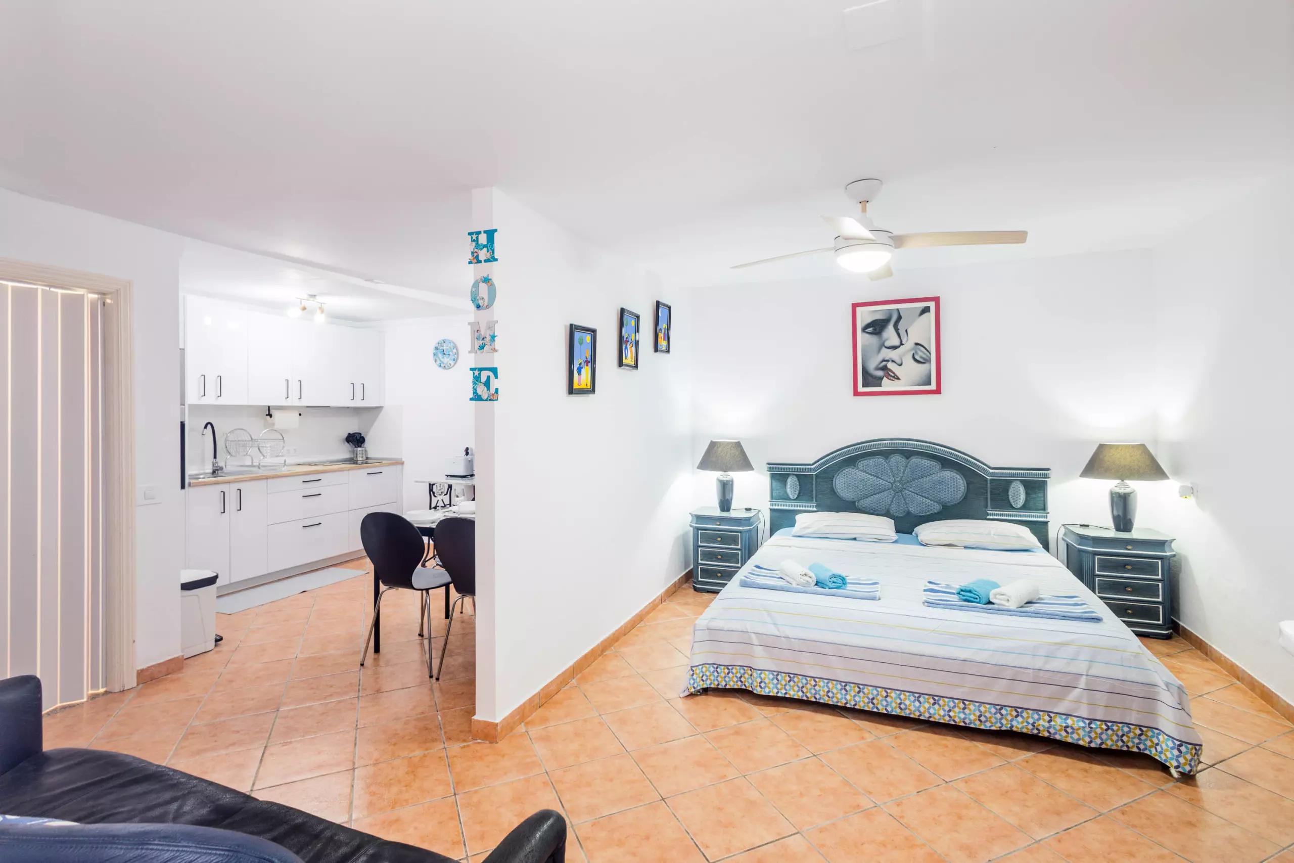 Le logement dispose de 40 m² intérieurs répartis dans une chambre indépendante, un salon avec cuisine intégrée entièrement équipée et une salle de bain complète. L'ensemble de l'appartement est équipé de la climatisation, garantissant une température agréable tout au long de l'année.