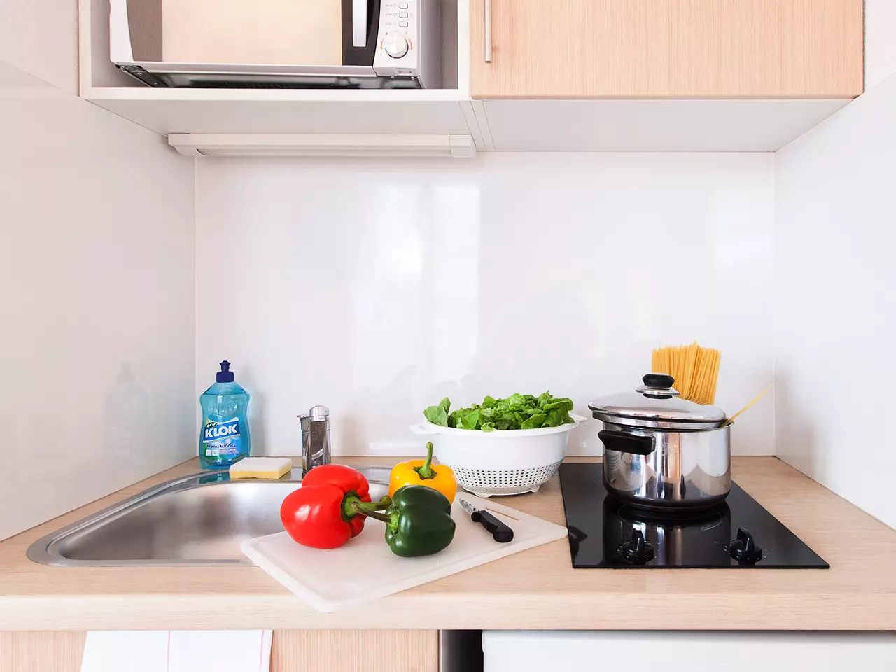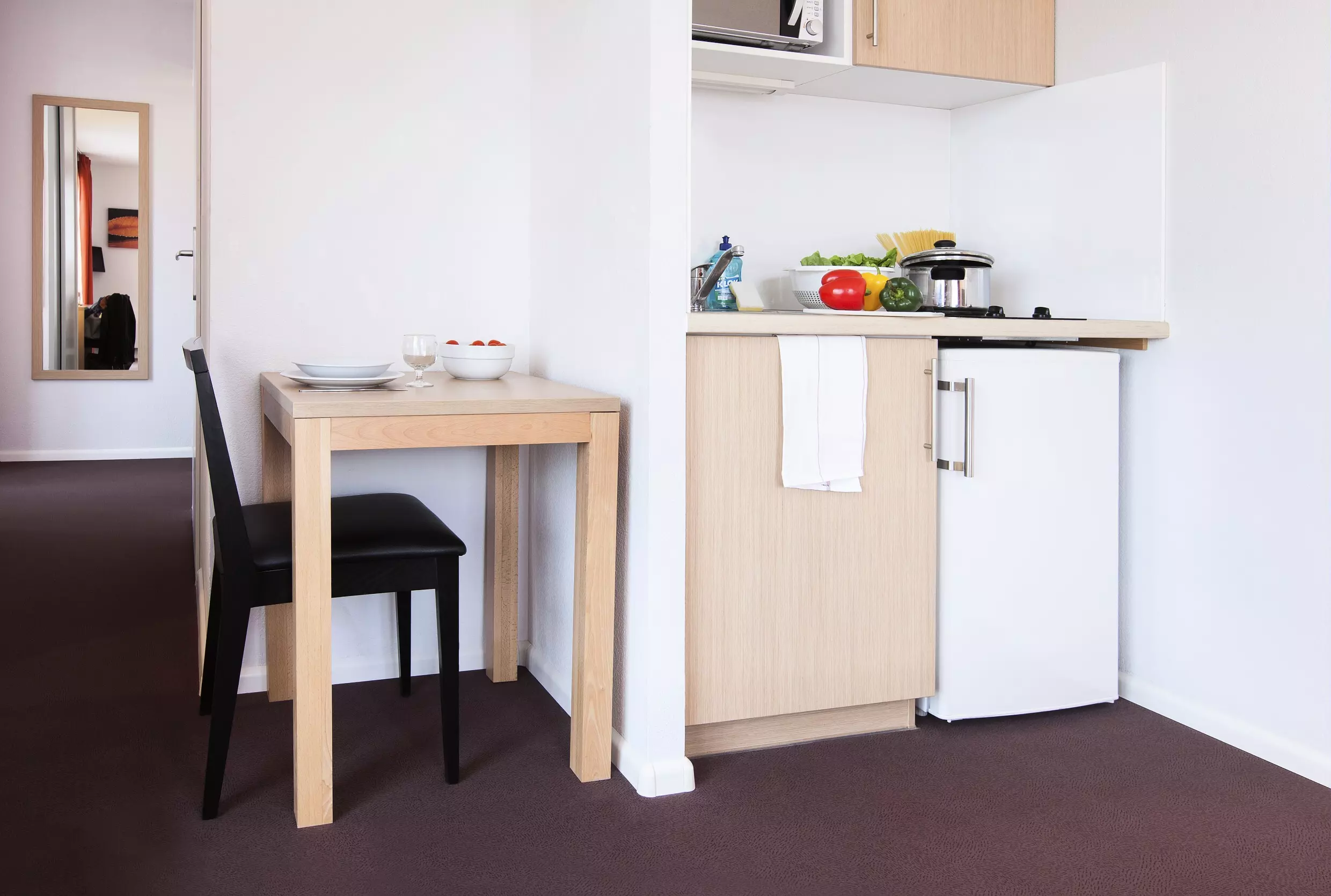 Le studio est équipé d'une télévision, du wifi, d'un réfrigérateur, d'une cafetière, de plaques de cuisson, d'un micro-ondes et d'une bouilloire.