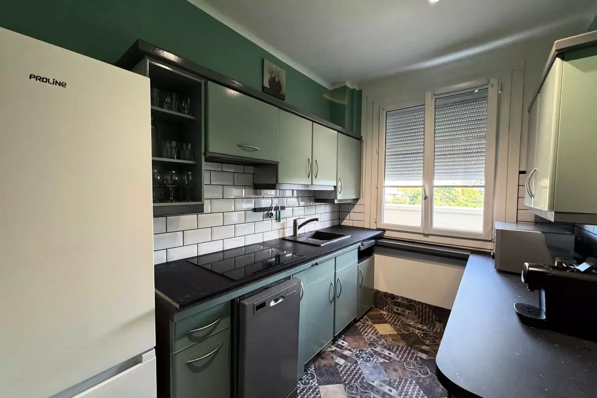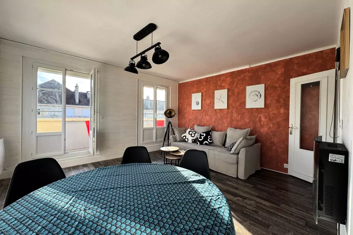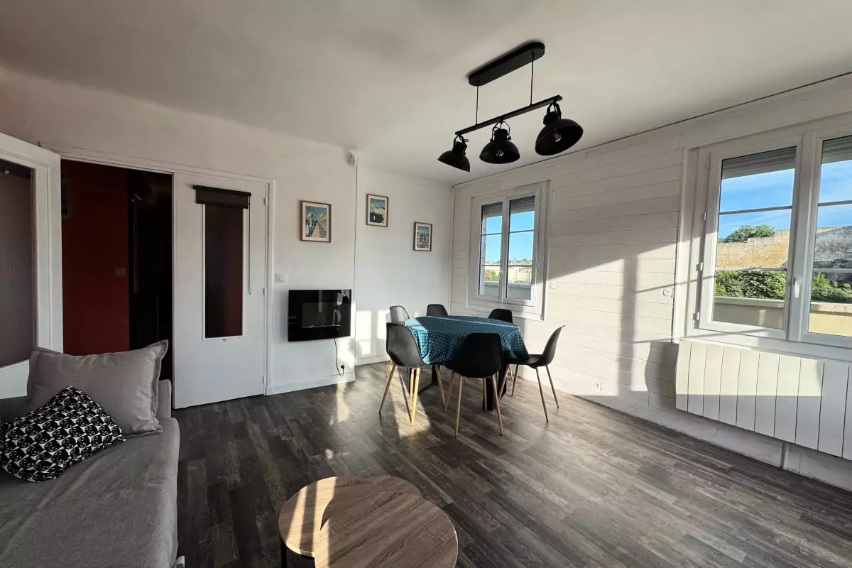 L'appartement bénéficie d'un emplacement idéal, car tout se fait à pied, en une minute (château, restaurants, quartier du Vaugueux).