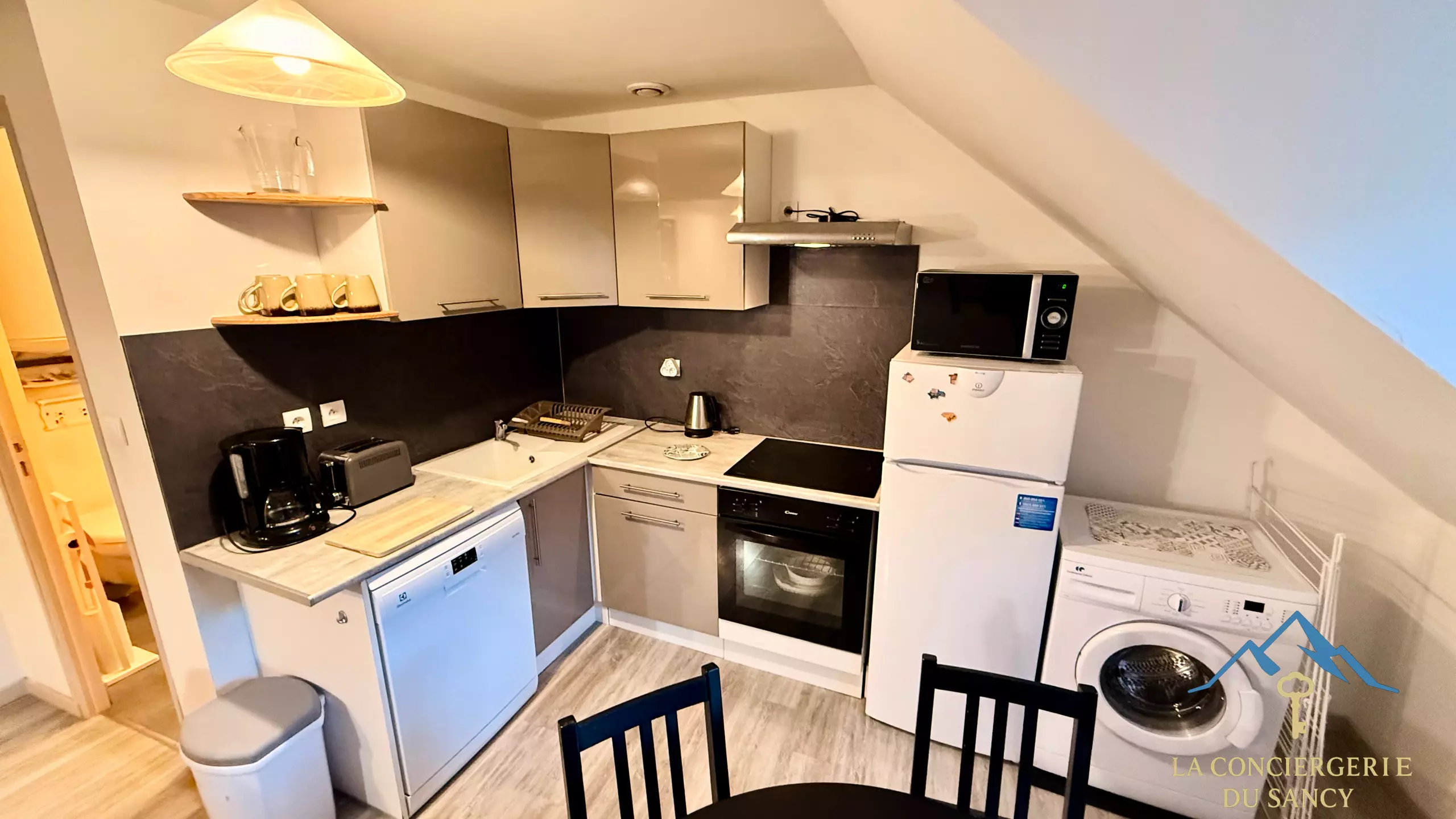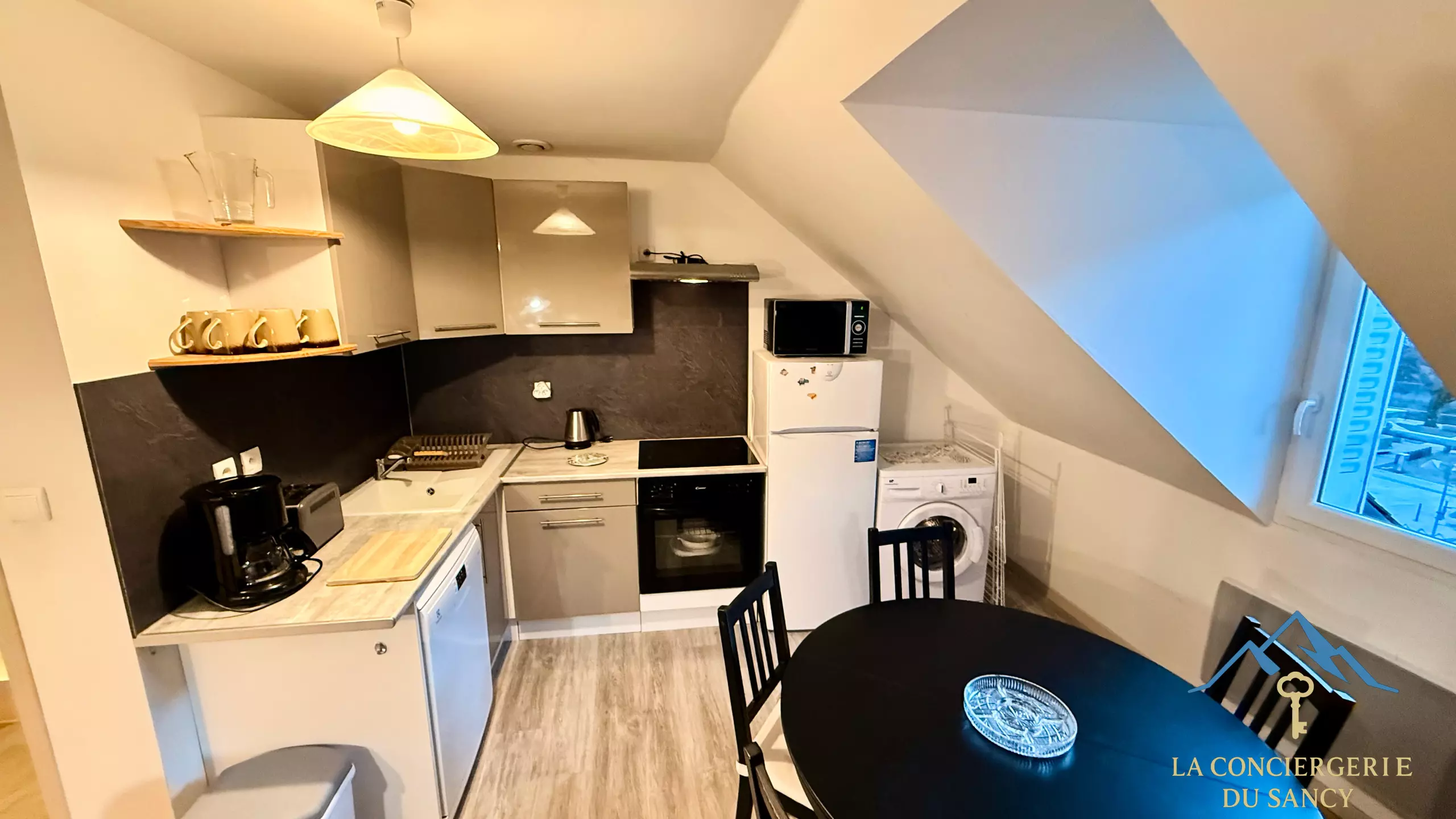 La cuisine est fonctionnelle et entièrement équipée pour vos repas maison :