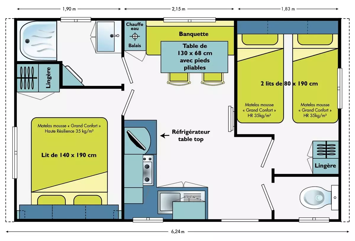 Mobil-home Declik - 29 m² - 2 chambres (2 adultes maximum ou famille) 5 personnes