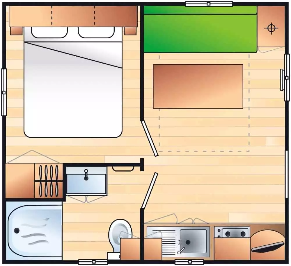 Mobil-home - 18 m² - 1 chambre (Pour un couple) 2 personnes