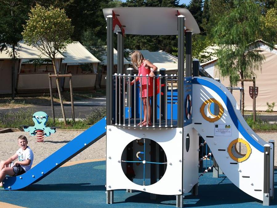 Infos supplémentaires sur l'espace aquatique : Le site ne dispose pas d'une piscine, mais un espace Aquatoon (ouvert d'avril à novembre) est aménagé pour les petits. La mer se trouve également à quelques pas pour une baignade en plein air et elle dispose d'une belle plage aux eaux limpides.
