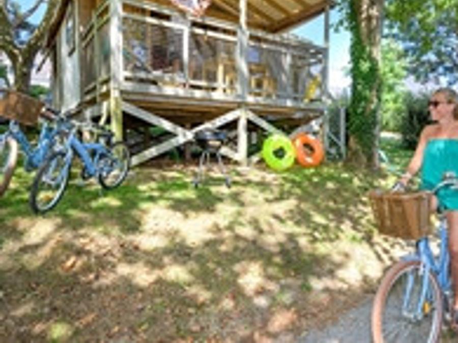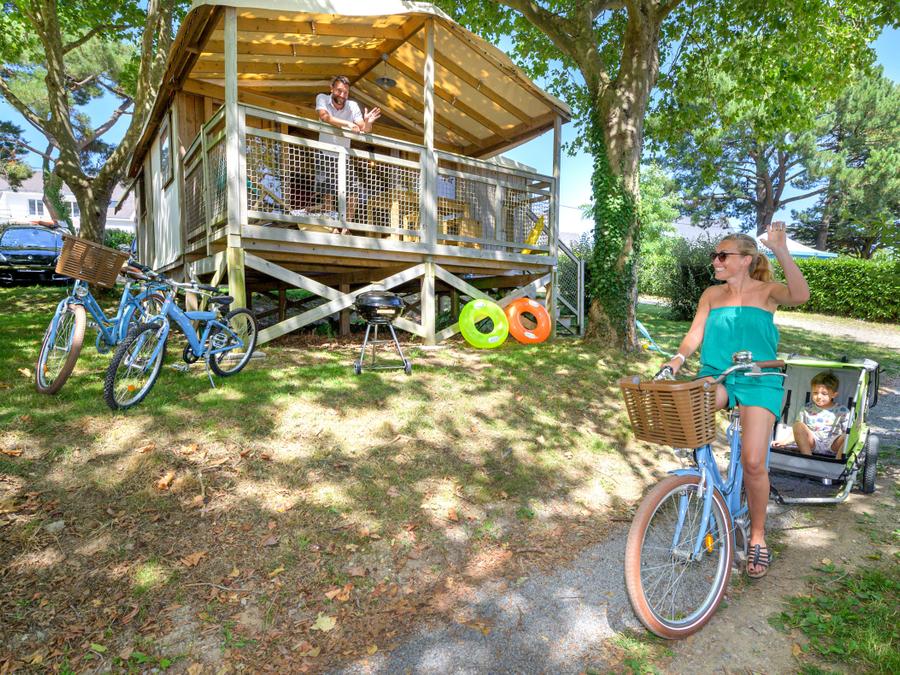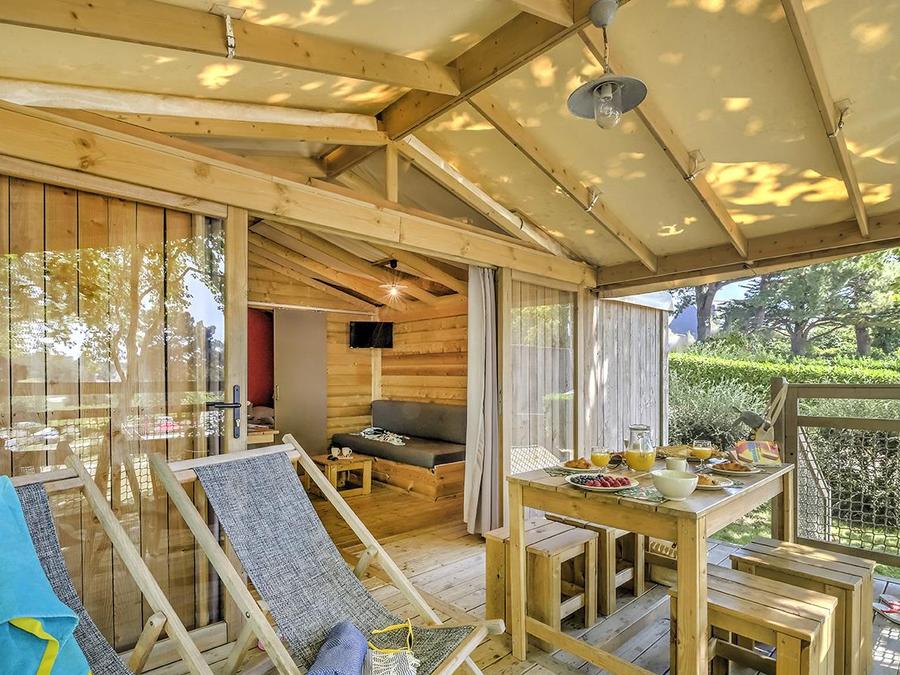Tente en toile et en bois 4 personnes - Cabane Lodge Bois sur pilotis STANDARD 38m² (2 chambres) dont terrasse couverte de 8m²