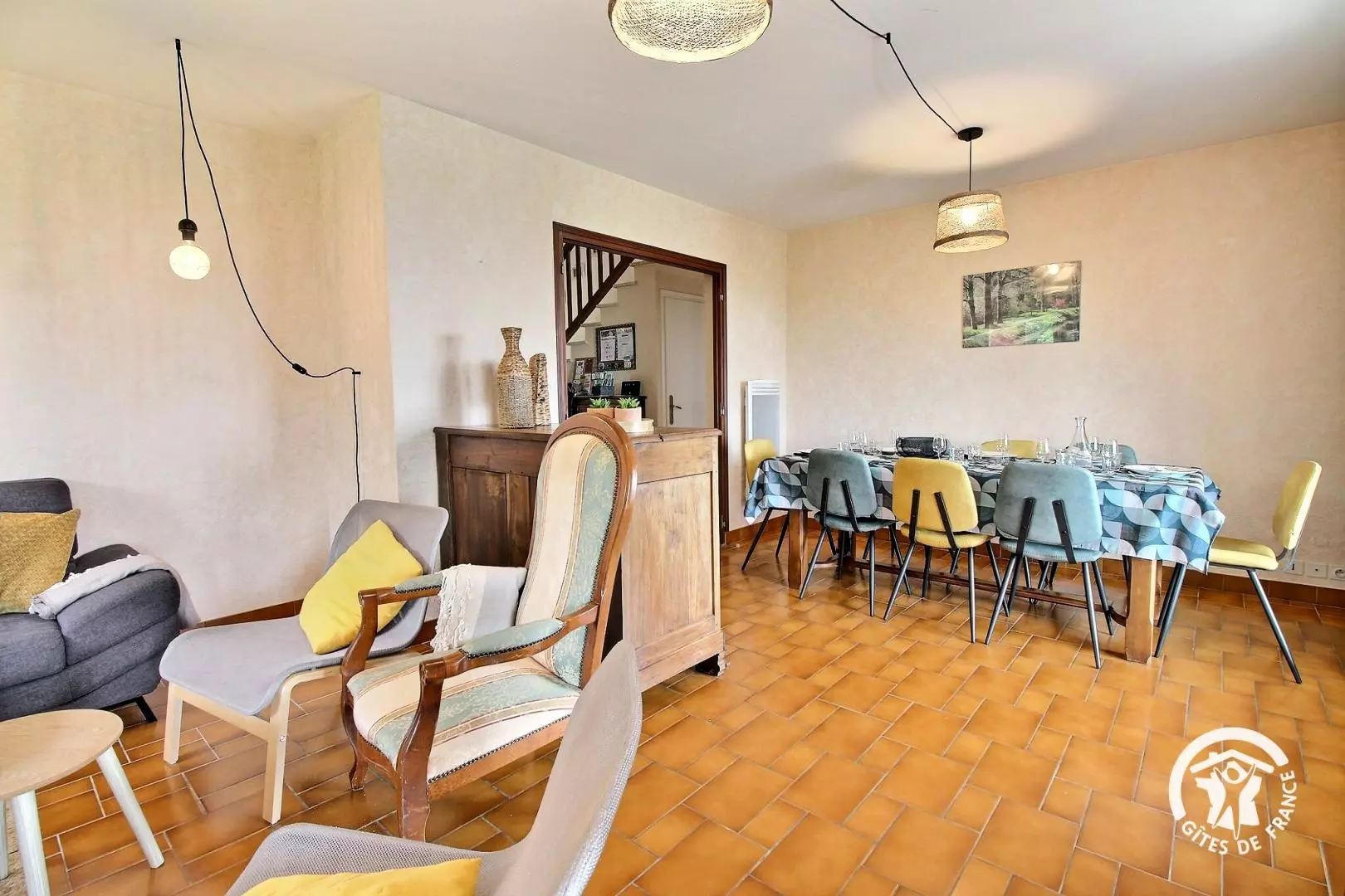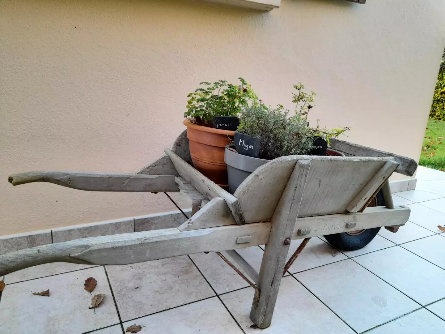 A l'extérieur: vous profiterez d'un jardin clos, d'une petite terrasse et d'un espace abrité pour vos repas. En plus du garage, vous disposerez de 2 places de parking dans l'allée menant au gite.