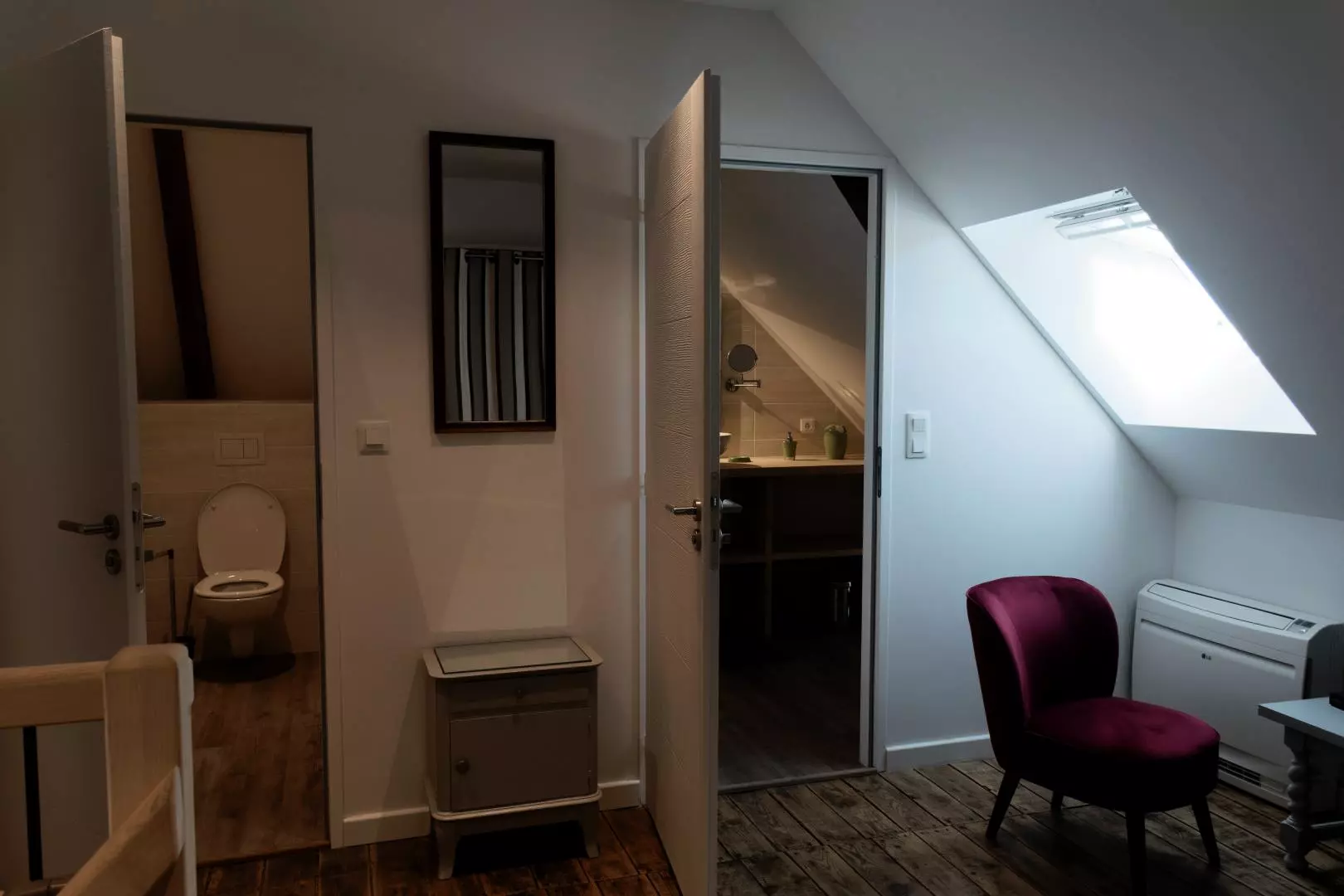Salle d'eau avec douche italienne. 1 wc indépendant. Climatisation à l'étage.