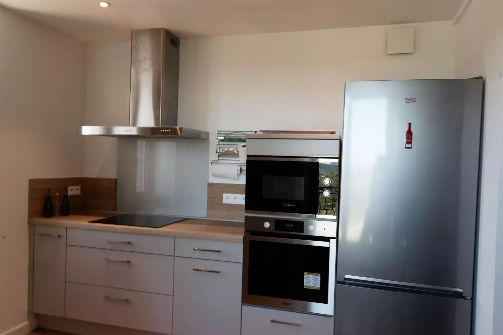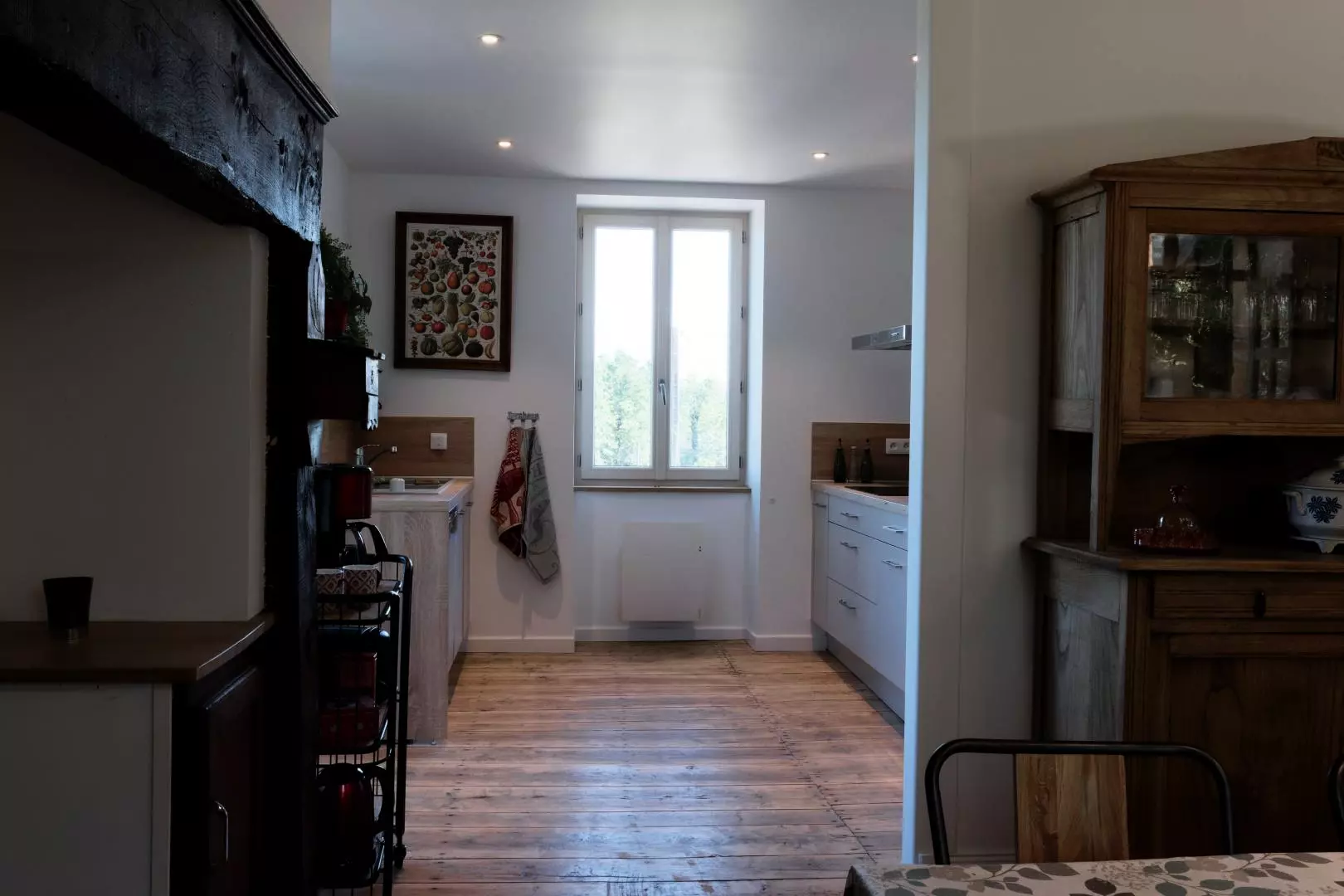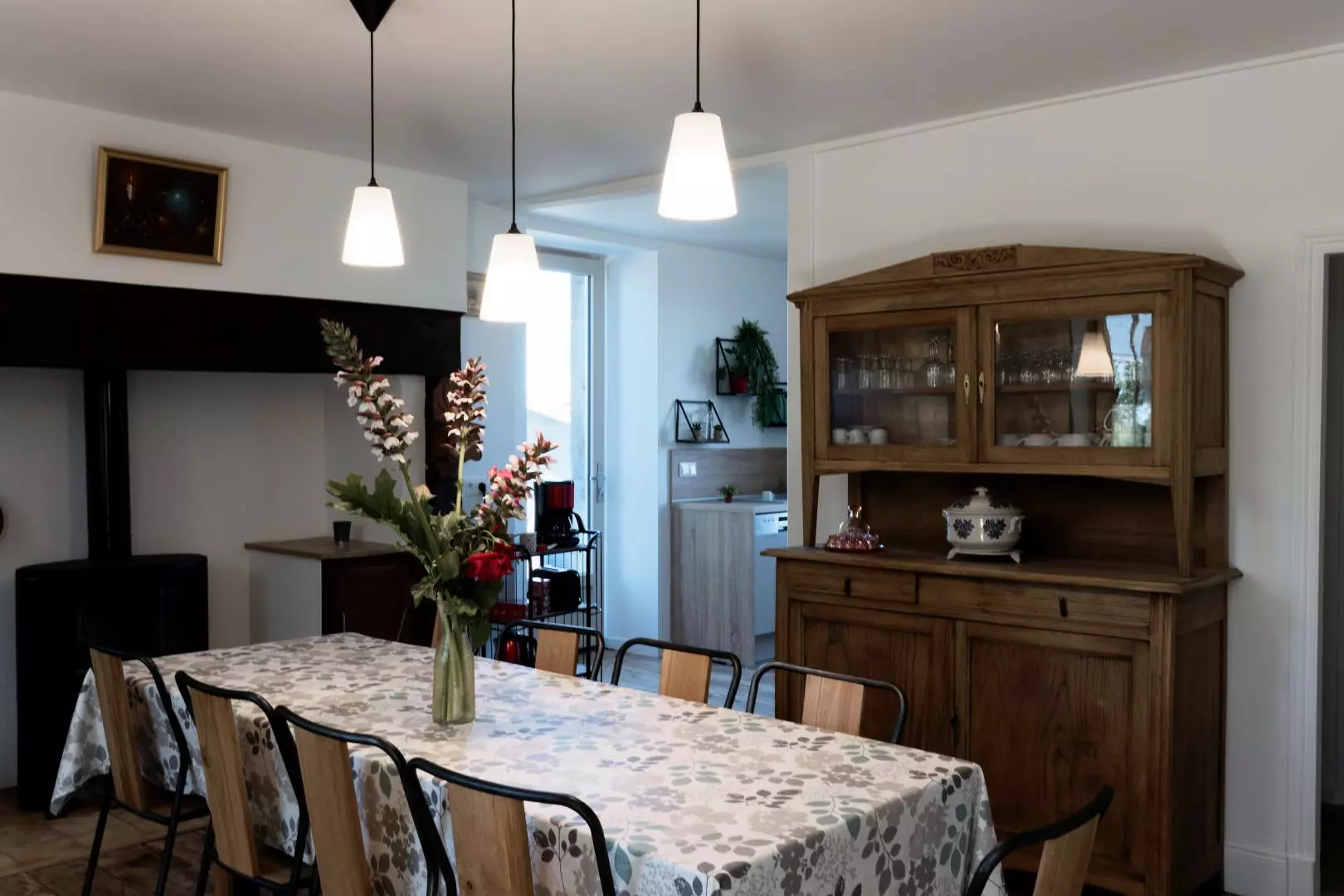 Au Rez de chaussé, cuisine moderne ouverte sur salle à manger, équipée d'un poêle à bois avec accès direct aux 2 terrasses de 30m² Se trouve également une buanderie avec machine à laver et sèche linge, une salle d'eau avec une douche italienne et toilette indépendant. un coin salon (avec bibliothèque et téléviseur), accès à 1 chambre avec 3 lits 90x200 dont 2 peuvent être jumelés.
