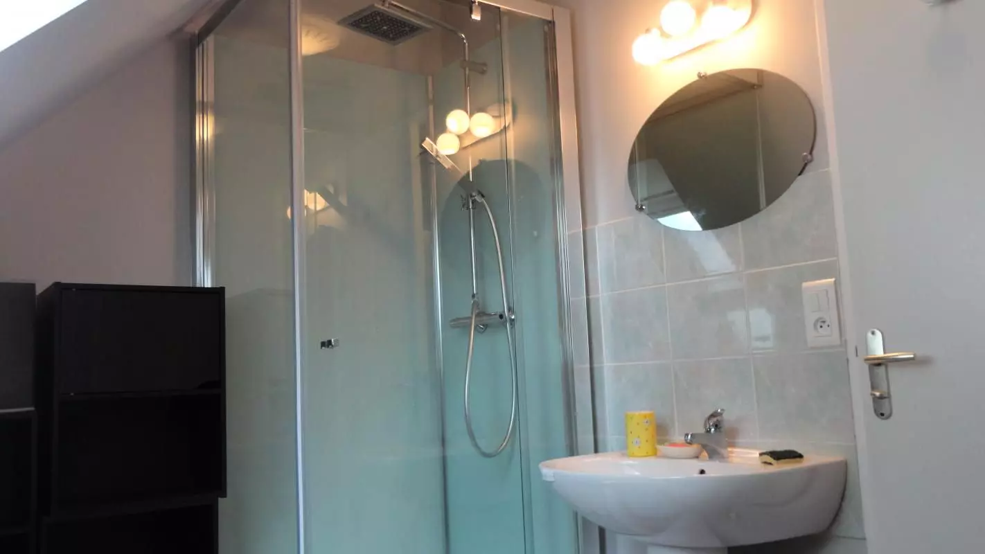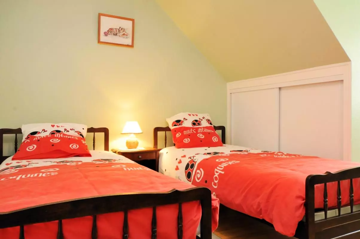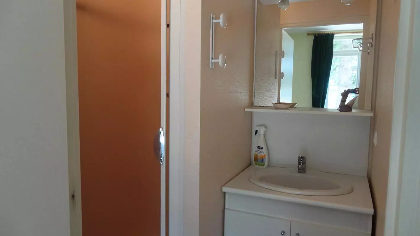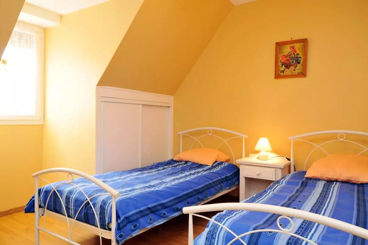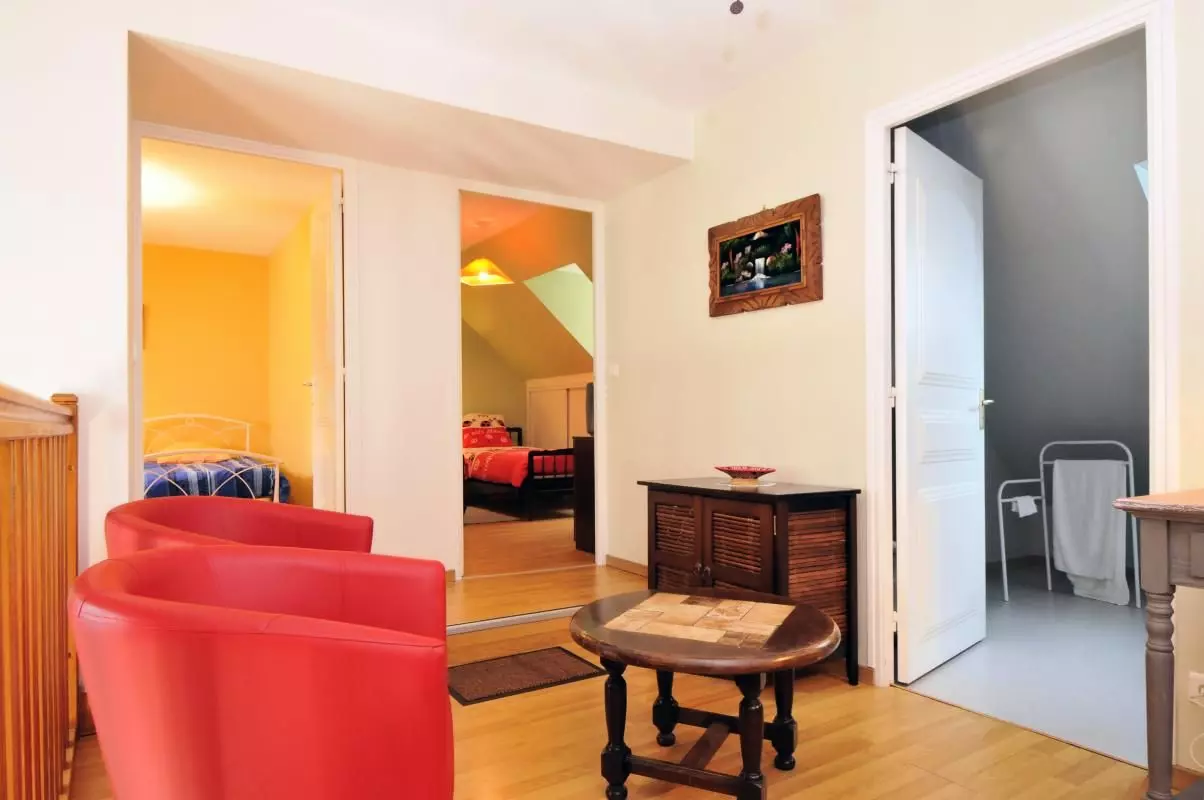 Mezzanine, deux chambres avec deux lits de 90 chacune, salle de bain.