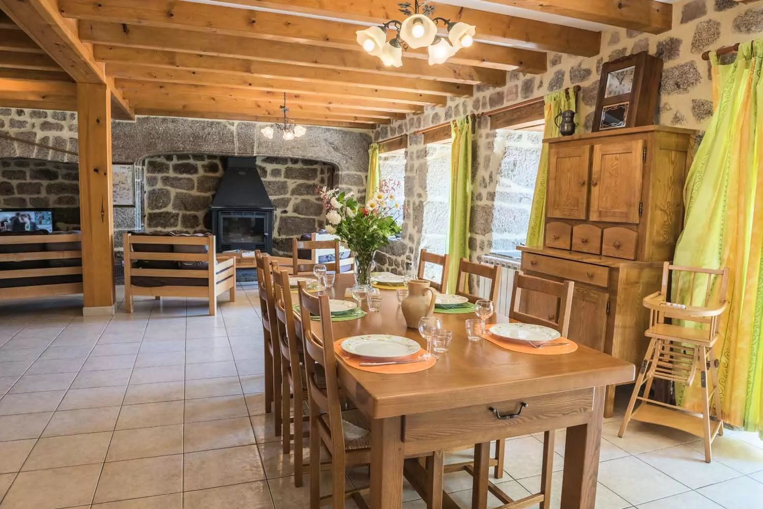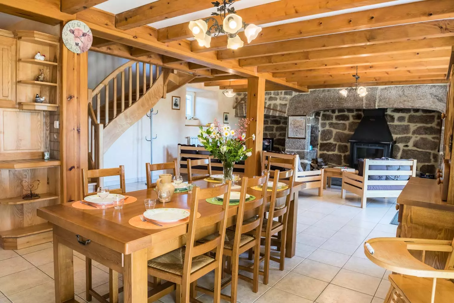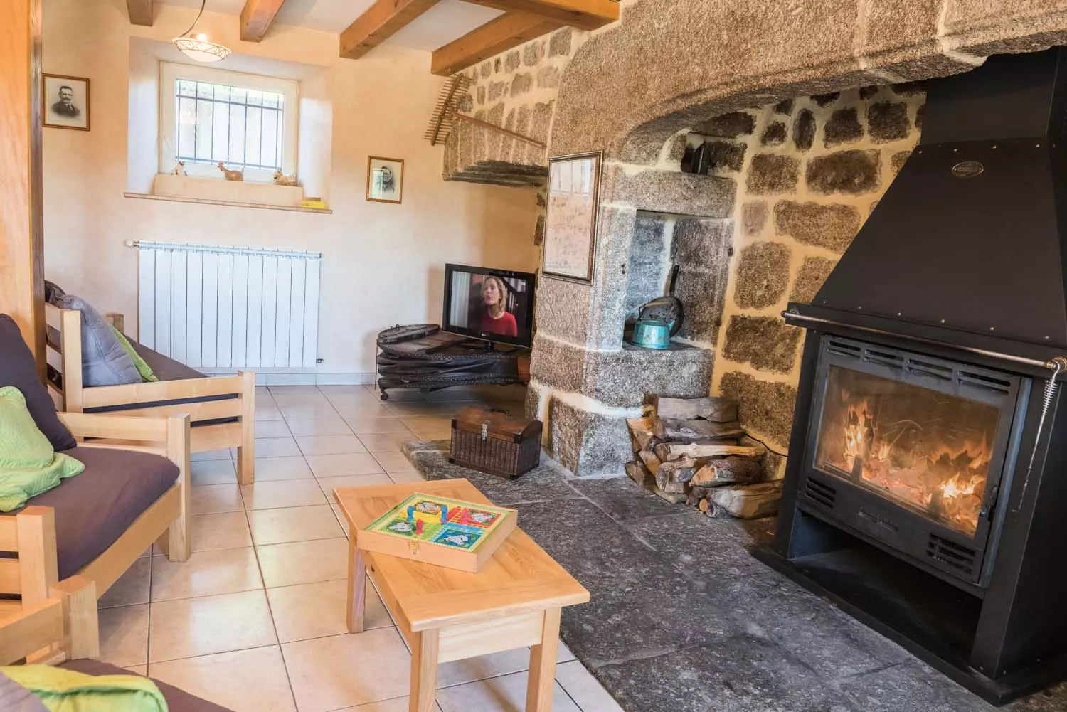 Au rez de chaussée : grande pièce à vivre : cuisine intégrée , salle à manger, cheminée granit avec poêle à bois (gratuit), salon avec télévision tnt, wifi fibre gratuit, coin buanderie avec toilette indépendant.