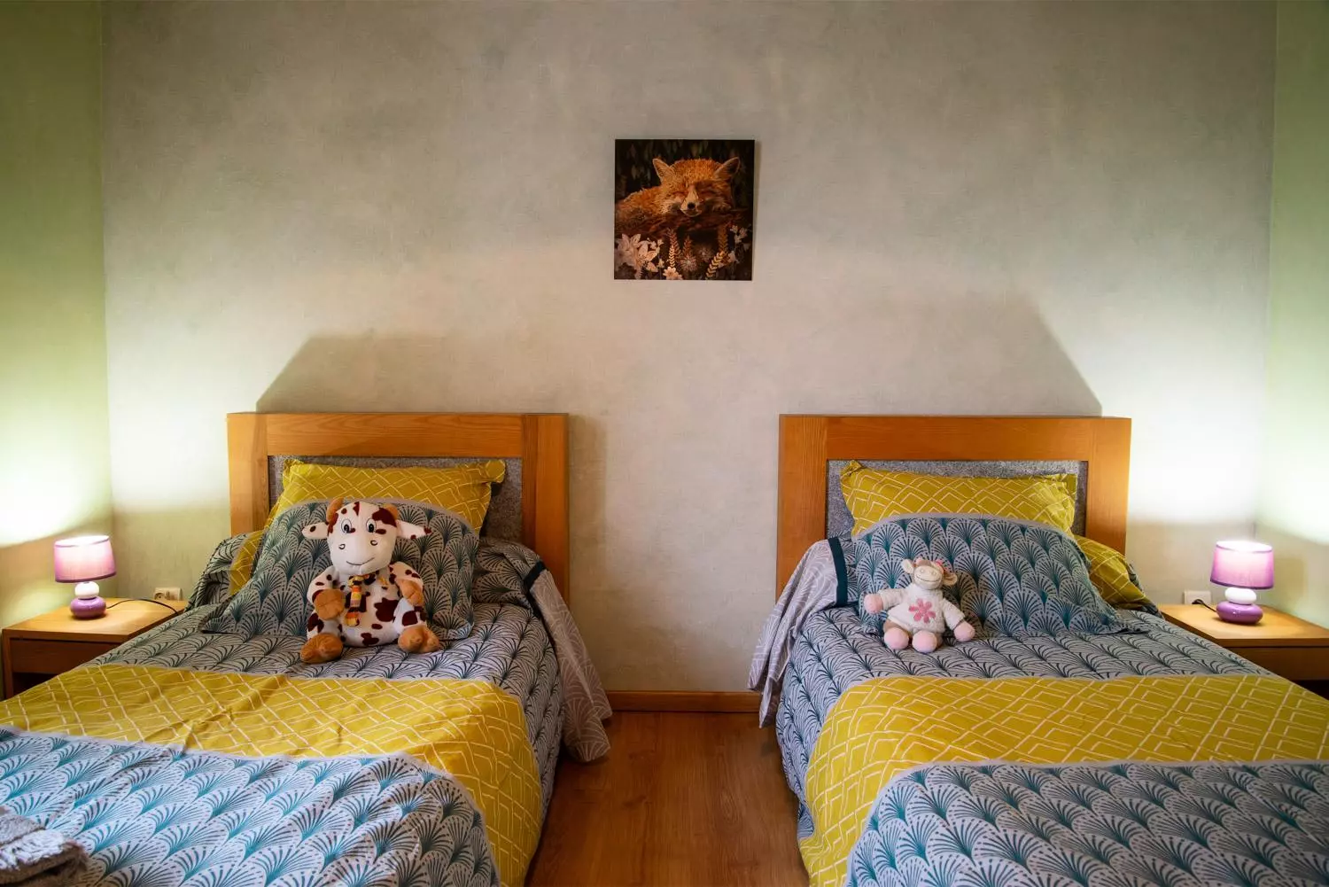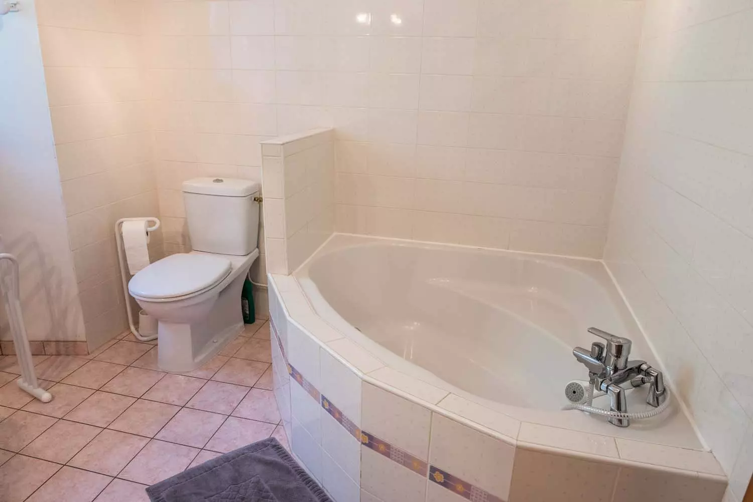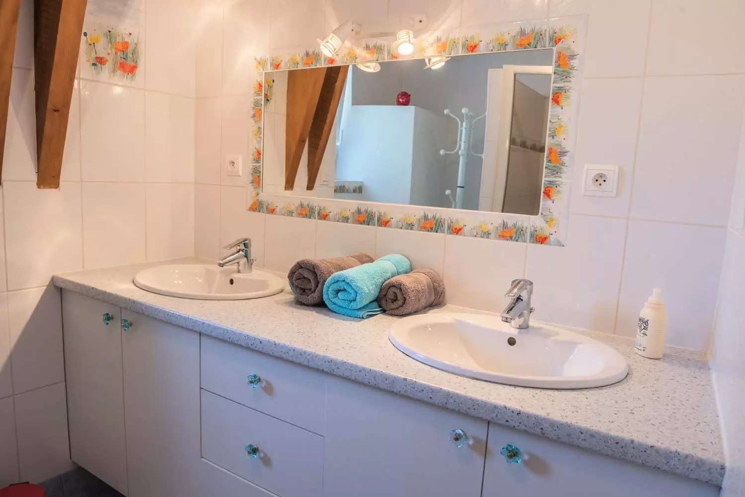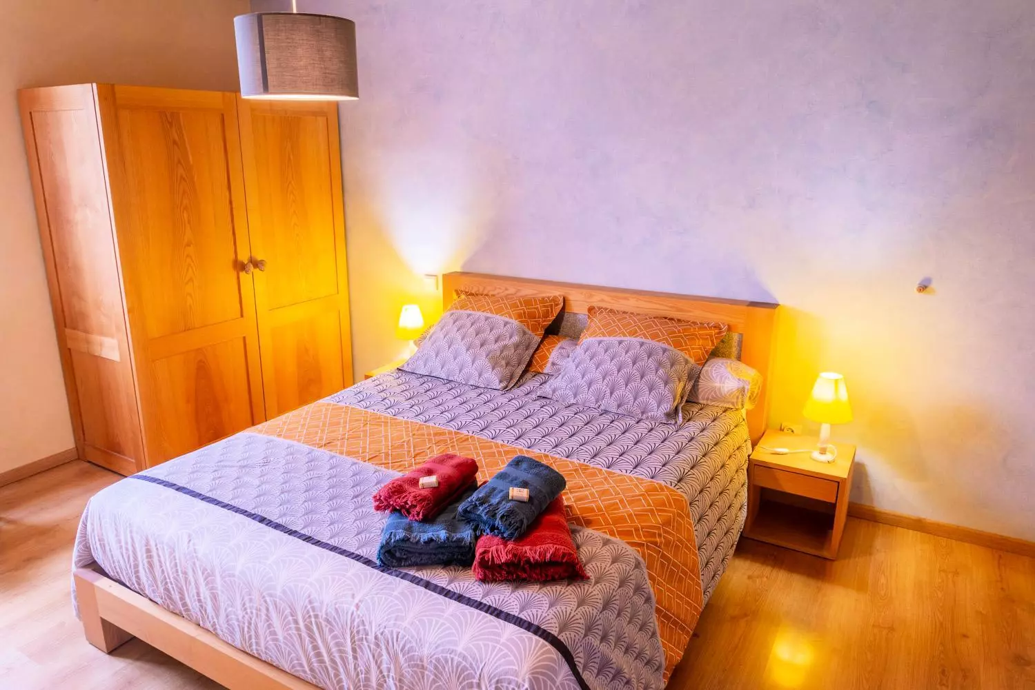 A l'étage : 3 chambres orientées sud : 1 chambre (1 lit 2 places en 160x200) ; 1 chambre (2 lits 90x190) ; 1 salle de bain avec baignoire d'angle et toilette ; 1 chambre (1 lit 2 places 160x200) toilette indépendant et salle de douche privative.