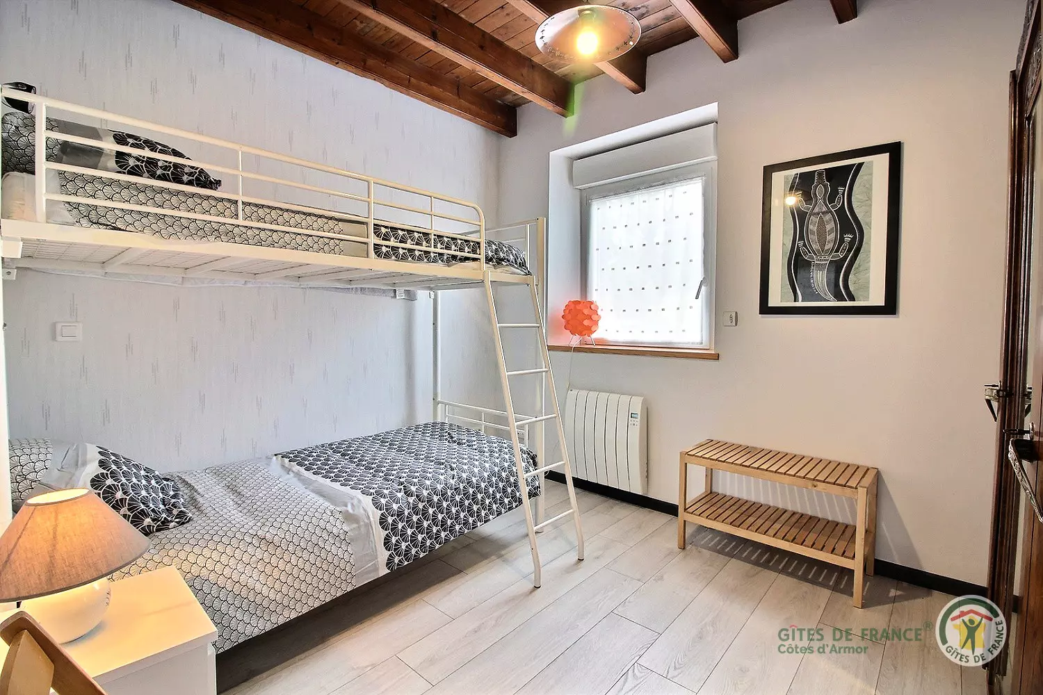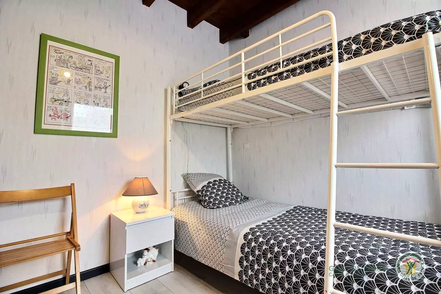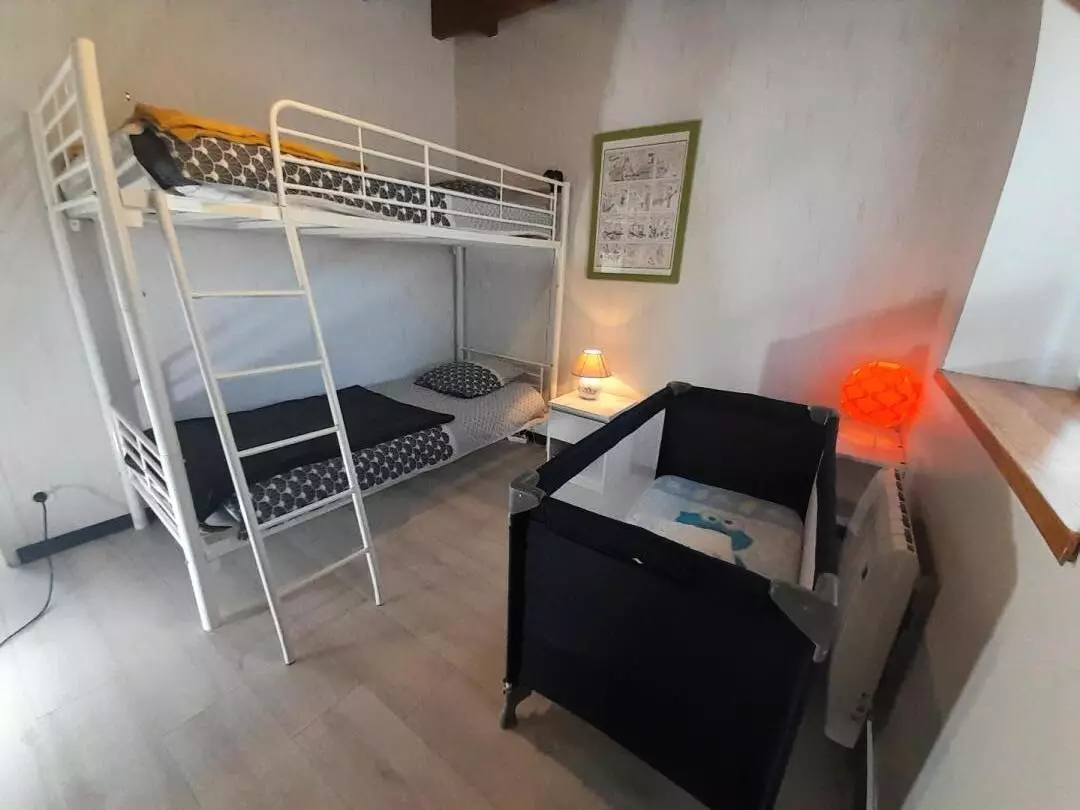 - 1 chambre avec 2 lits simples 90 x 190 (possibilité de les superposer), sur demande : mise à disposition d'un lit bébé