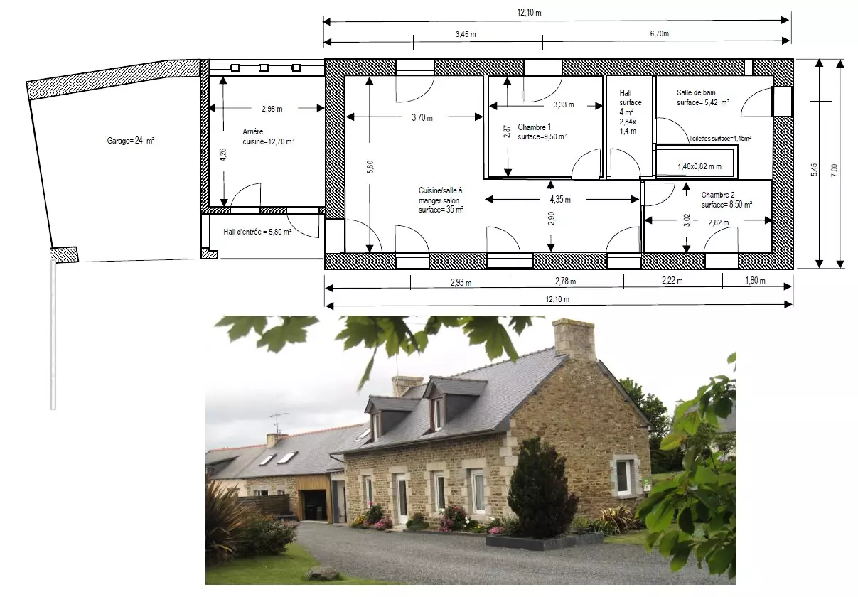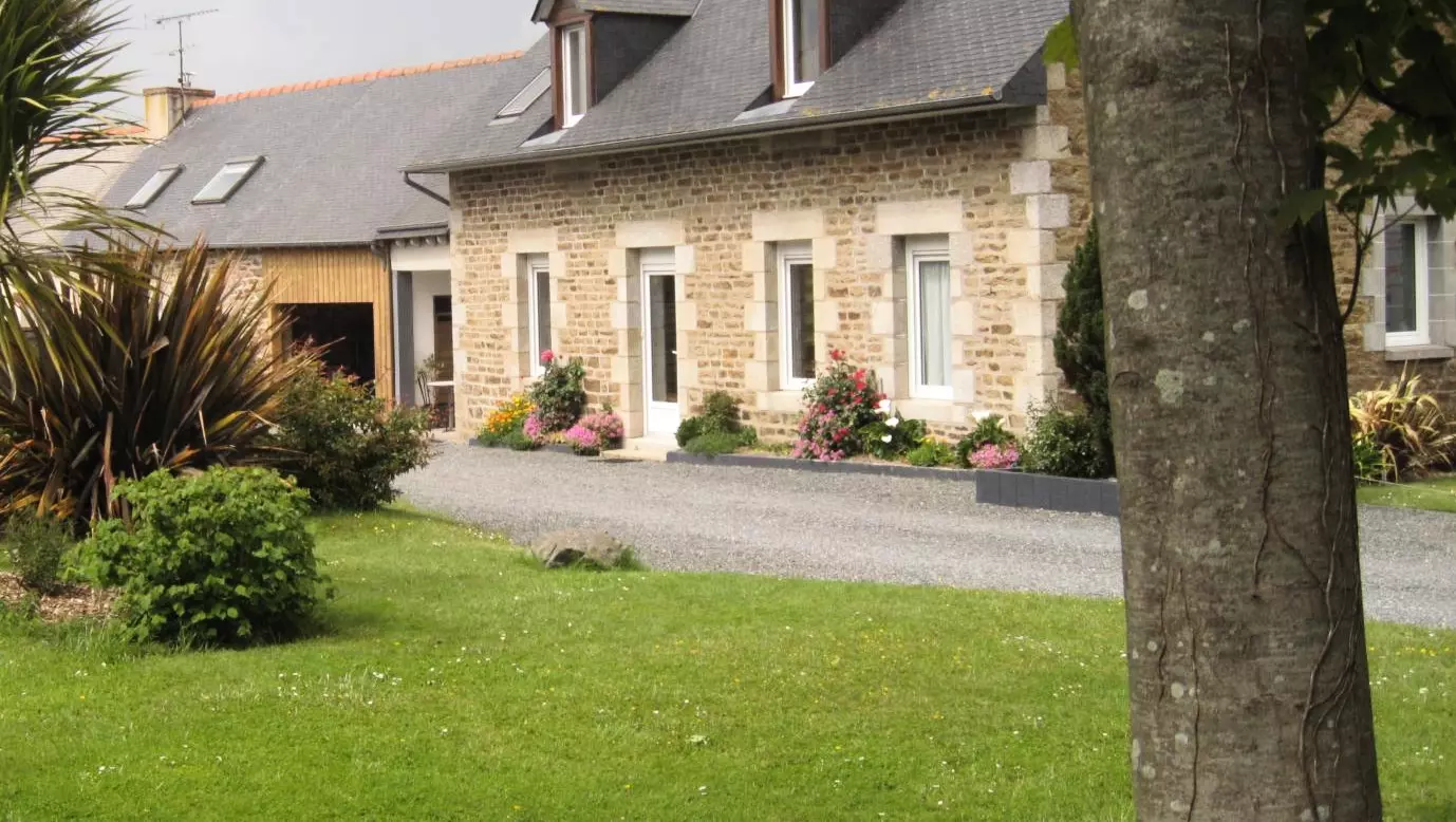 À l'entrée du bourg de Coëtmieux, cette jolie maison en pierre, mitoyenne à un tiers et à proximité de l'habitation des propriétaires, vous accueille confortablement, pour un séjour près de la mer.