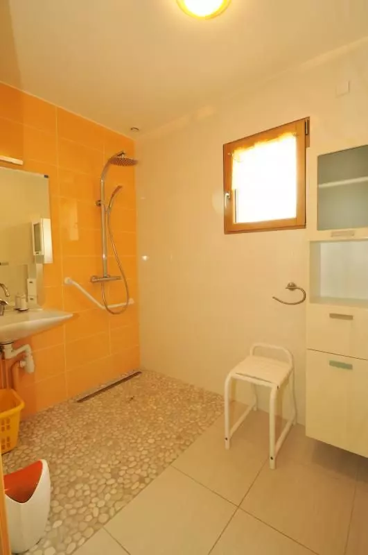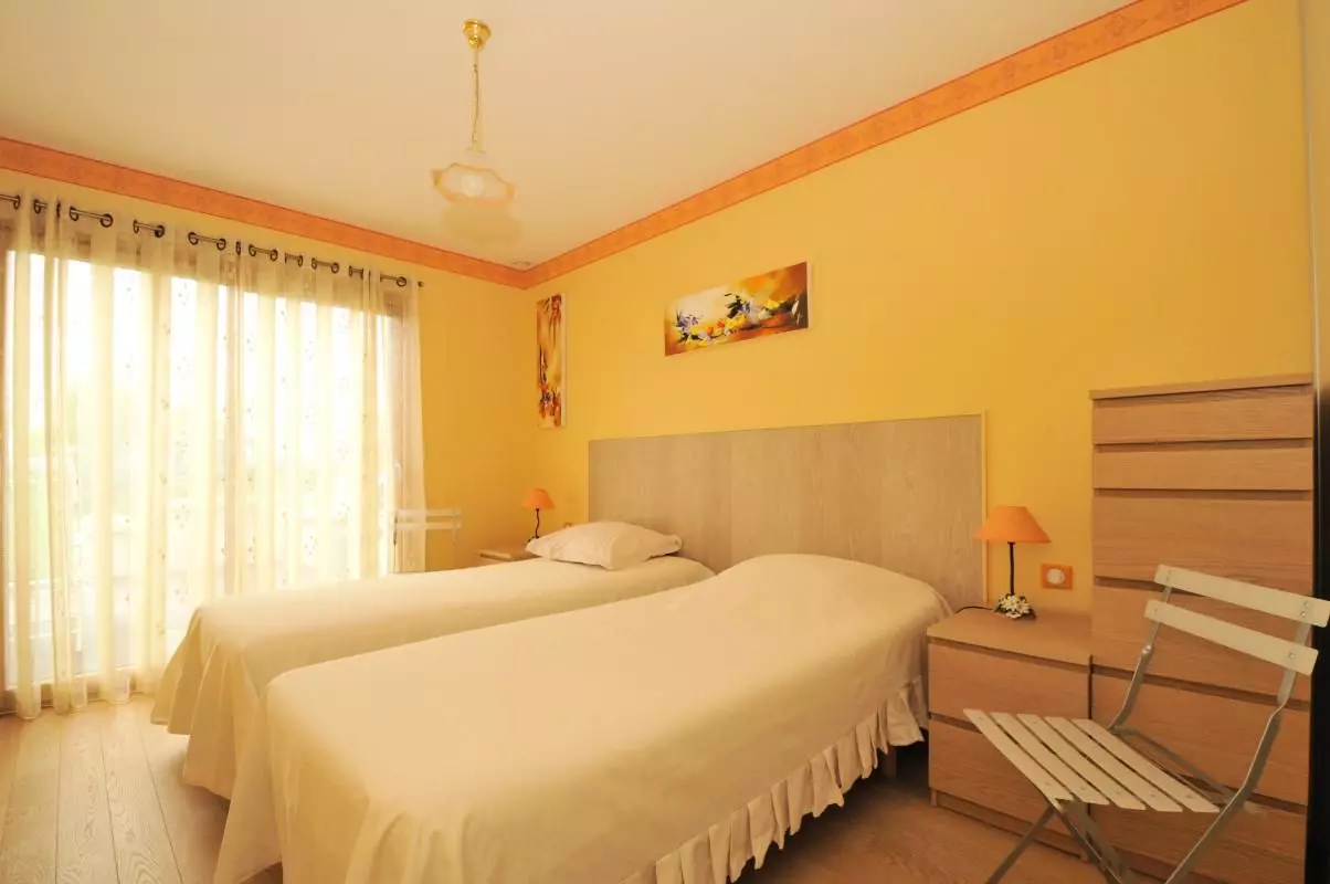 Deux chambres (un lit de 180x200 ou deux lits de 90X200) avec chacune salle d'eau et wc privatifs (dont une salle d'eau adaptée au personne à mobilité réduite). TV dans une chambre. Cuisine équipée.