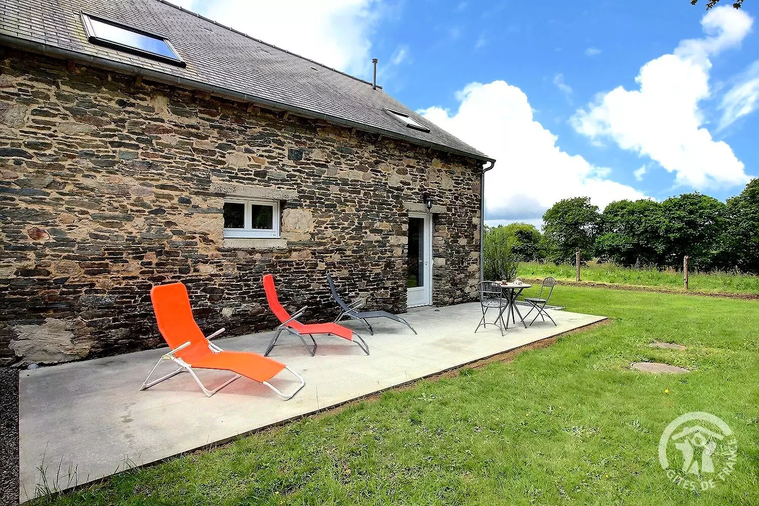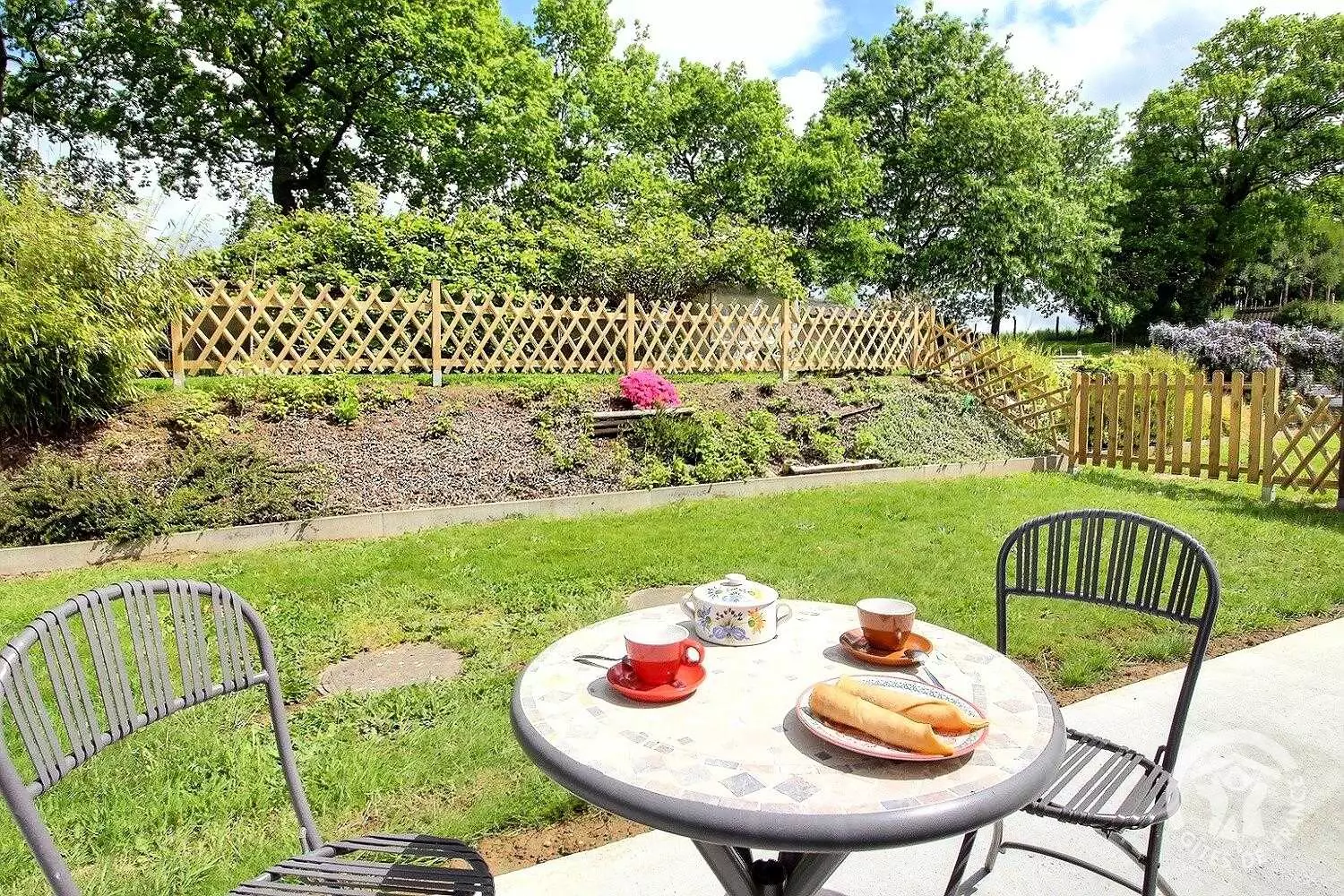 Jardin dédié au gîte d'environ 500 m² et espace parking dédié dans la cour.
