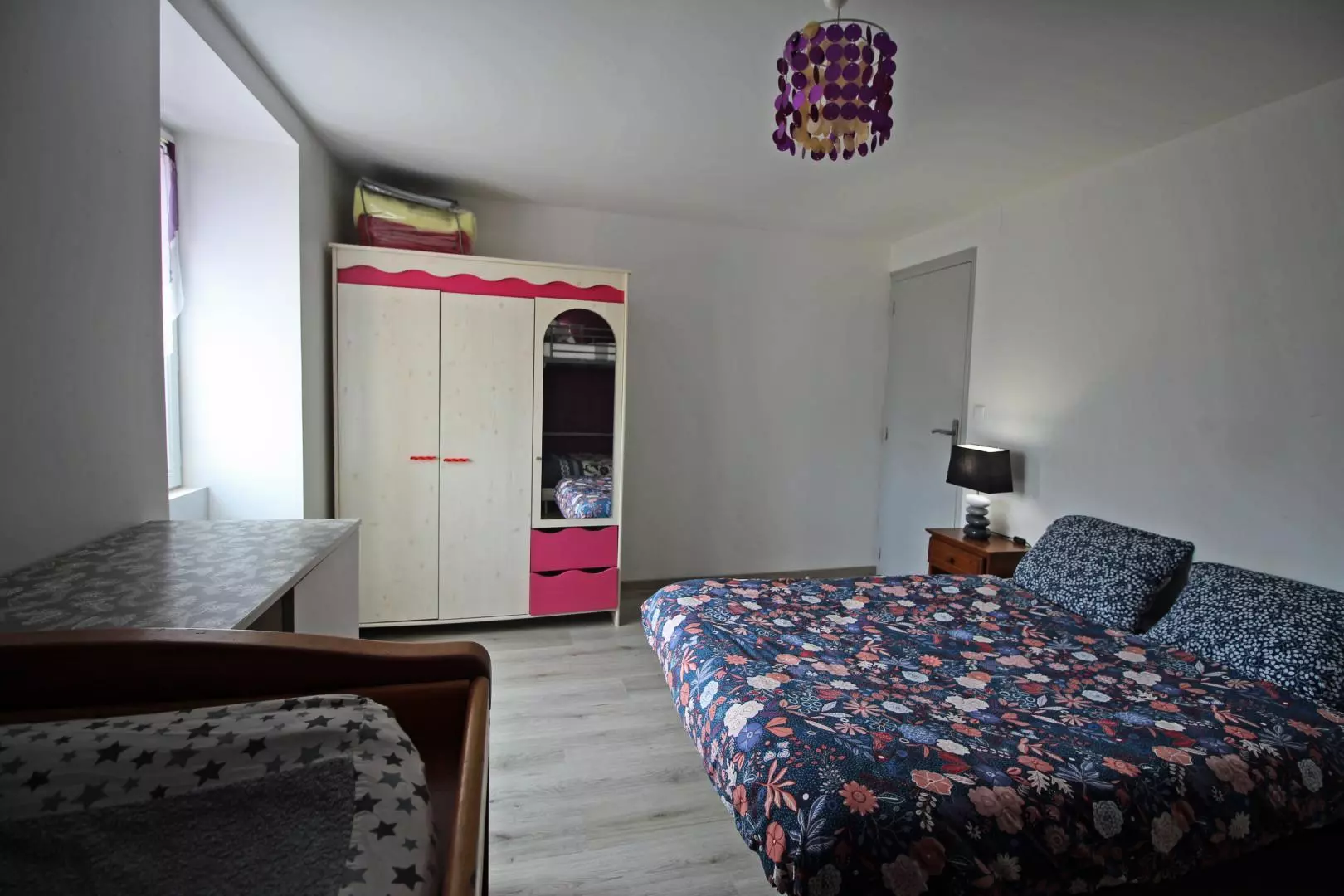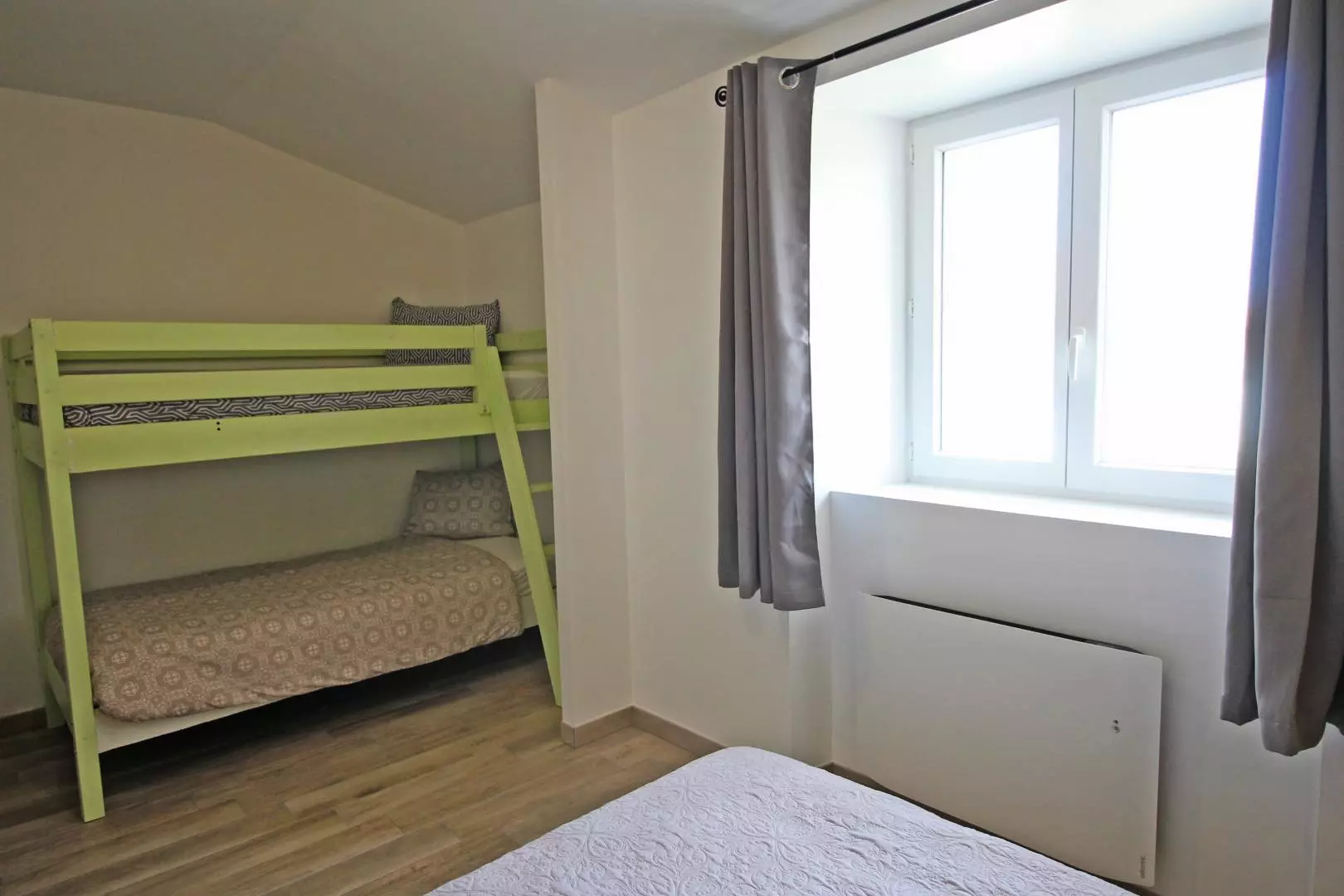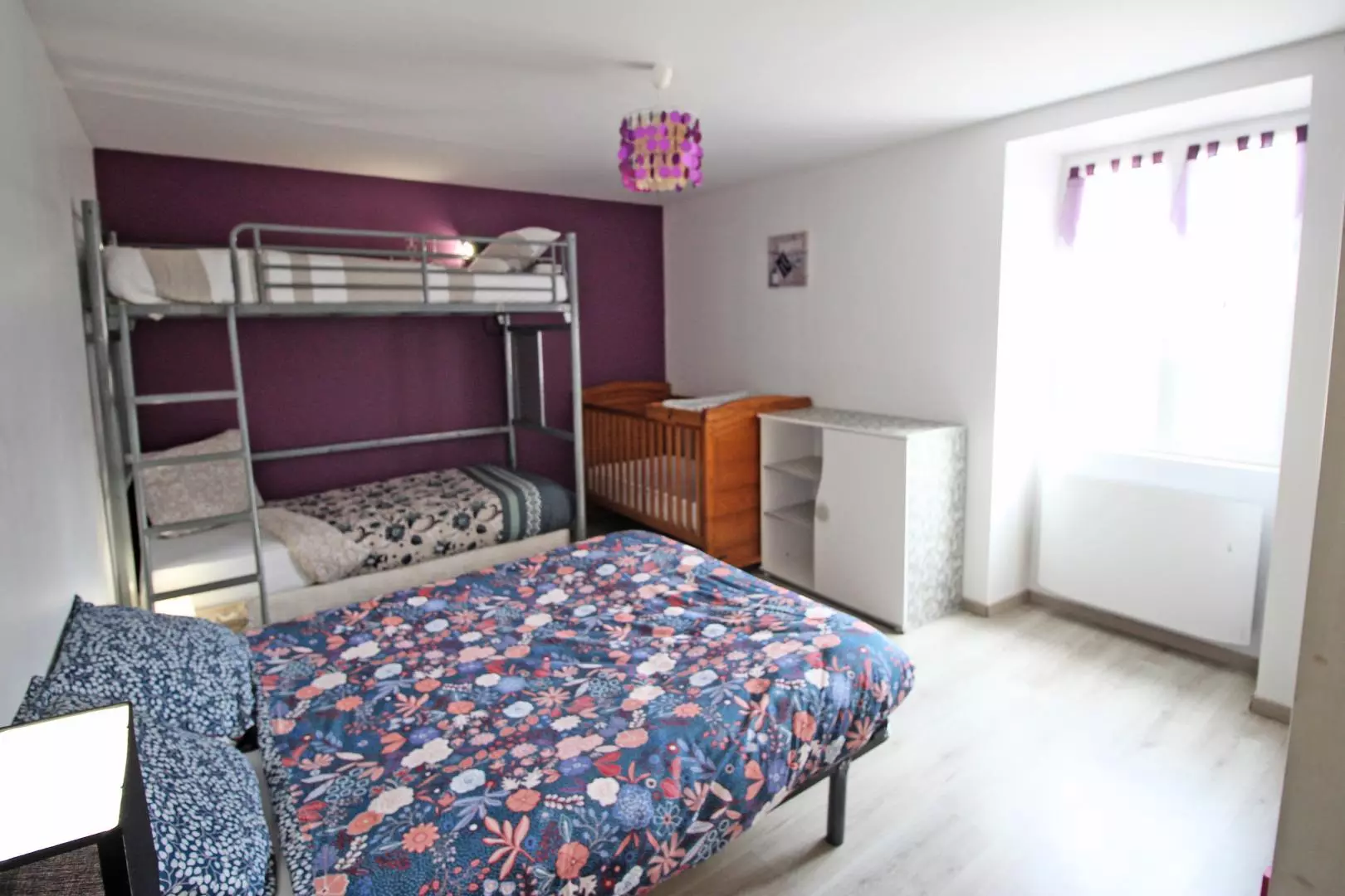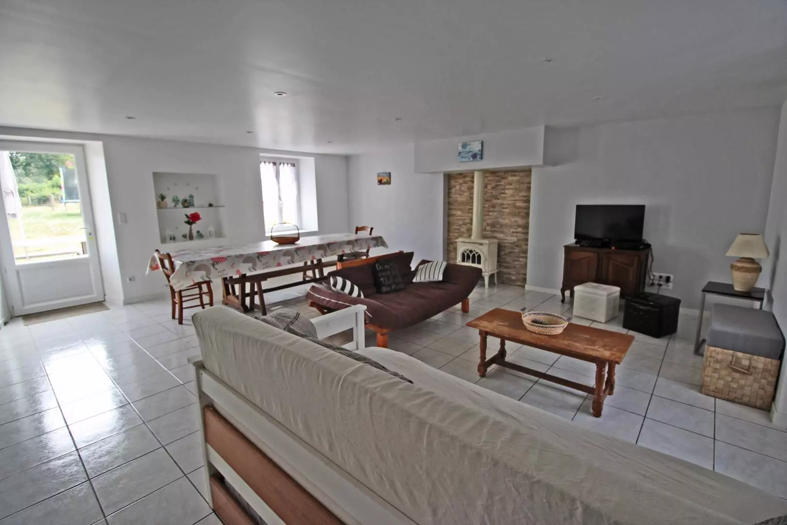 En rez de chaussée : entrée, wc, séjour-salon (canapé lit) poêle à bois et cuisine équipée ouverte, 1 chambre (1 lit 2 personnes, 2 lits superposés, 1 lit bébé), salle d'eau, wc, 1 chambre (1 lit 2 personnes, 2 lits superposés, 1 lit bébé), salle d'eau, 1 chambre (1 lit 2 personnes, 2 lits superposés, 1 lit bébé), espace nuit prolongeant le couloir (2 lits superposés). chauffage électrique (excellente isolation), garage. A seulement 20 mn de Confolens, festival de danse et musique du monde réputé, et 20 mn de Mortemart, un des plus beaux village de France, à la jonction des départements de La Vienne, la Charente et la Haute-Vienne, sur un domaine de 80 ha de prairies et de bois où sont élevés des moutons, la maison totalement indépendante, située sur l'exploitation agricole, ouvre à l'arrière sur un terrain en pelouse clos. Petite piscine hors sol de 3X2 m profondeur 0.60 m (ouverte du 15/06 au 15/09 selon conditions météo) et trampoline. Un chemin passe près du gîte et permet une belle balade sur la propriété où cerfs et biches ont également élus domicile, il n'est pas rare de les observer ou les entendre à partir du gîte.