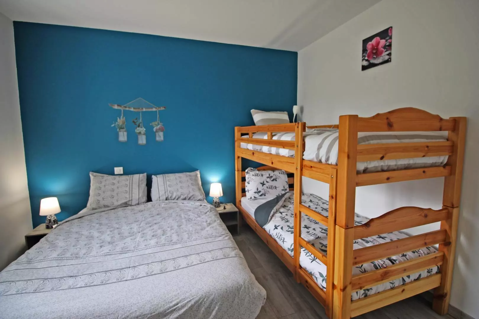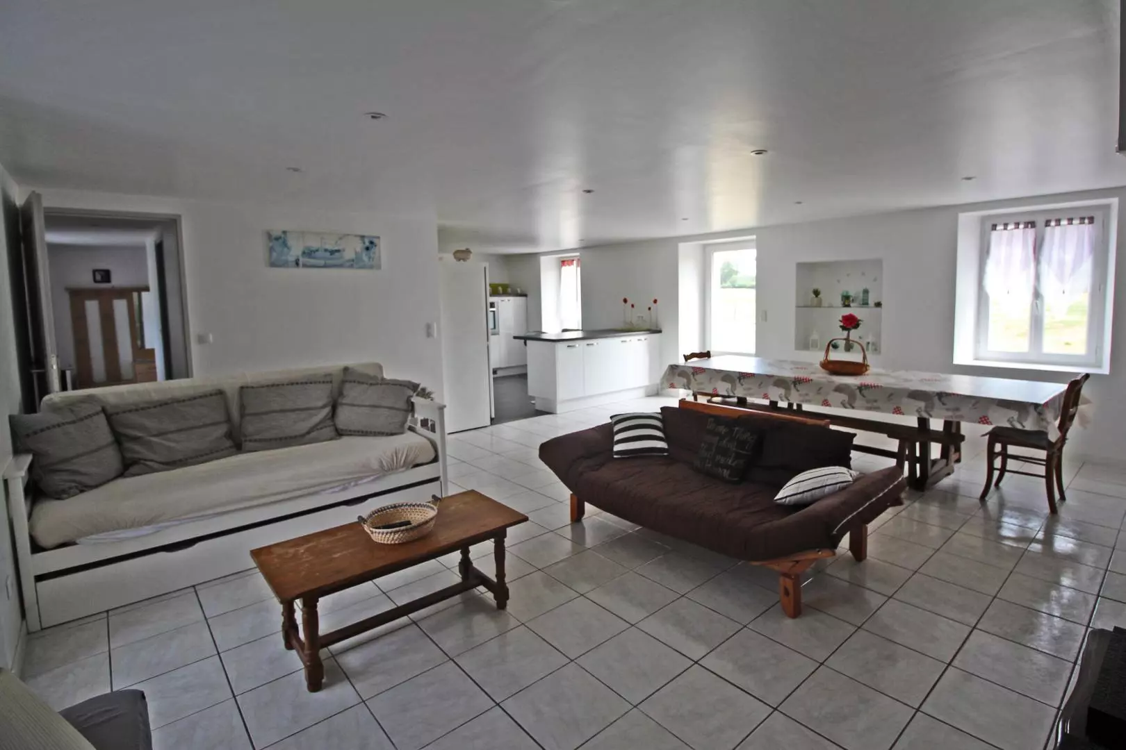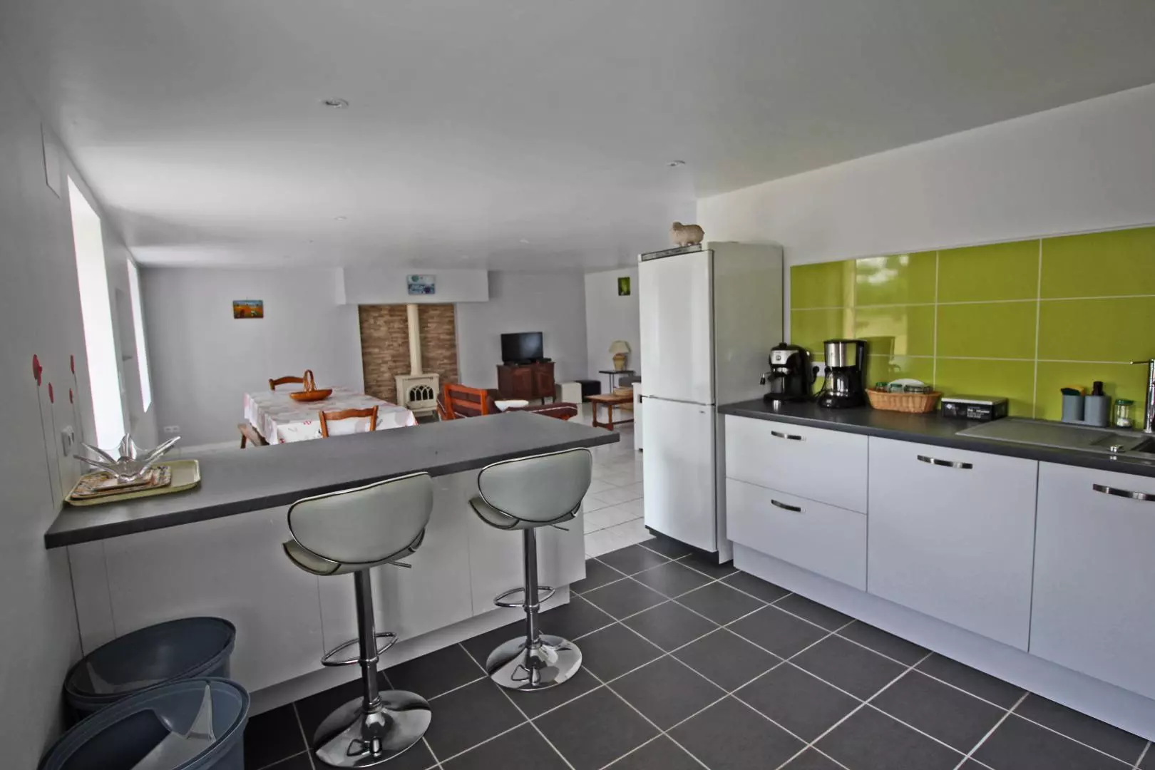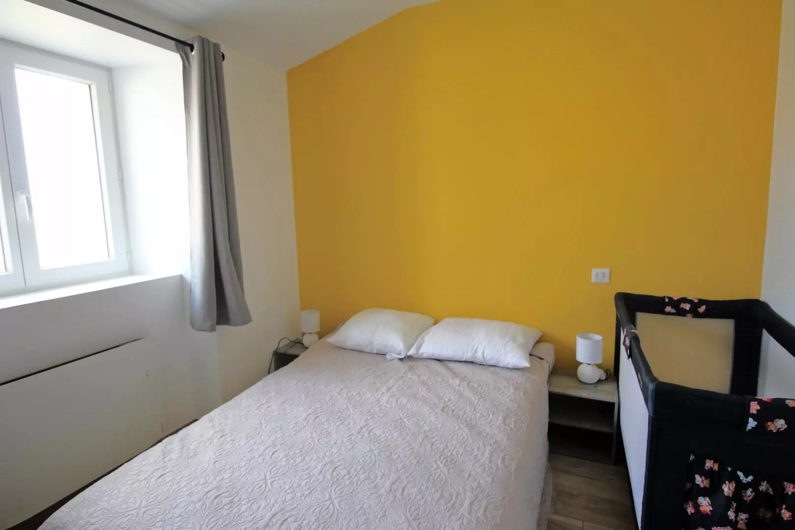 En rez de chaussée : entrée, wc, séjour-salon (canapé lit) poêle à bois et cuisine équipée ouverte, 1 chambre (1 lit 2 personnes, 2 lits superposés, 1 lit bébé), salle d'eau, wc, 1 chambre (1 lit 2 personnes, 2 lits superposés, 1 lit bébé), salle d'eau, 1 chambre (1 lit 2 personnes, 2 lits superposés, 1 lit bébé), espace nuit prolongeant le couloir (2 lits superposés). chauffage électrique (excellente isolation), garage. A seulement 20 mn de Confolens, festival de danse et musique du monde réputé, et 20 mn de Mortemart, un des plus beaux village de France, à la jonction des départements de La Vienne, la Charente et la Haute-Vienne, sur un domaine de 80 ha de prairies et de bois où sont élevés des moutons, la maison totalement indépendante, située sur l'exploitation agricole, ouvre à l'arrière sur un terrain en pelouse clos. Petite piscine hors sol de 3X2 m profondeur 0.60 m (ouverte du 15/06 au 15/09 selon conditions météo) et trampoline. Un chemin passe près du gîte et permet une belle balade sur la propriété où cerfs et biches ont également élus domicile, il n'est pas rare de les observer ou les entendre à partir du gîte.
