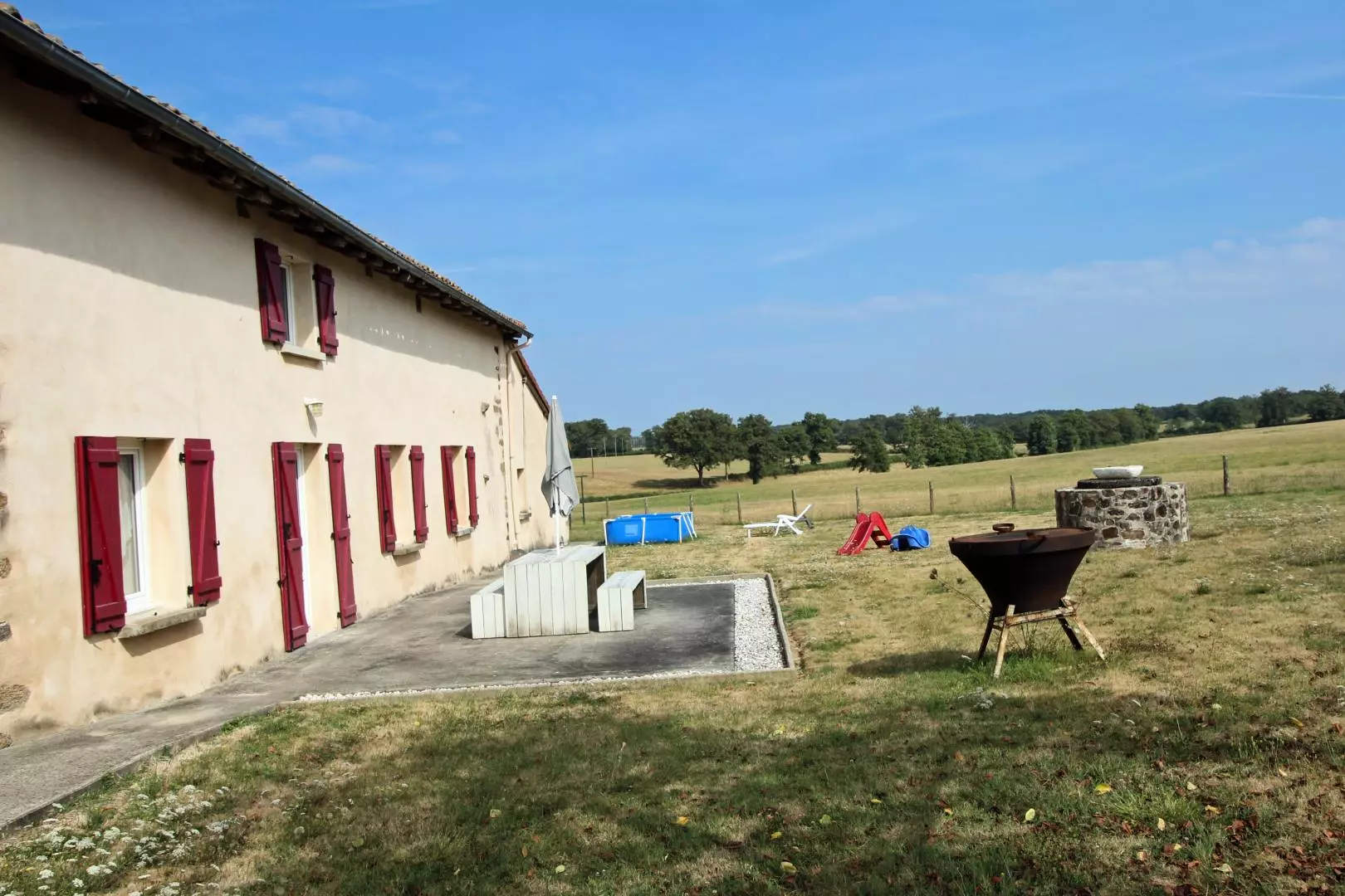 A seulement 20 mn de Confolens, festival de danse et musique du monde réputé, et 20 mn de Mortemart, un des plus beaux village de France, à la jonction des départements de La Vienne, la Charente et la Haute-Vienne, sur un domaine de 80 ha de prairies et de bois où sont élevés des moutons, la maison totalement indépendante, située sur l'exploitation agricole, ouvre à l'arrière sur un terrain en pelouse clos. Petite piscine hors sol de 3X2 m profondeur 0.60 m (ouverte du 15/06 au 15/09 selon conditions météo) et trampoline. Un chemin passe près du gîte et permet une belle balade sur la propriété où cerfs et biches ont également élus domicile, il n'est pas rare de les observer ou les entendre à partir du gîte.