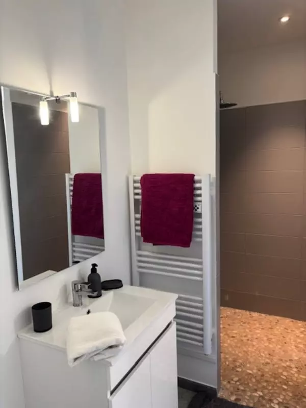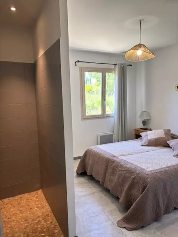 Les deux chambres sont un véritable havre de paix. La première, avec un lit double, dispose d'une douche à l'italienne pour un confort optimal. La deuxième, dotée de deux lits simples et d'un dressing, est parfaite pour une famille ou des amis. Une salle de douche indépendante avec WC complète cet espace.
