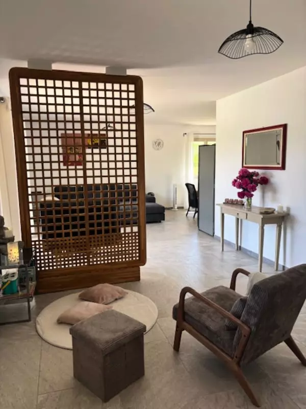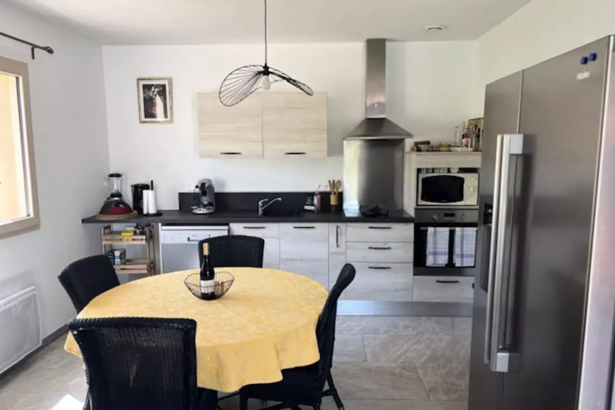 À l'intérieur, la maison séduit par sa luminosité et son espace ouvert. Le salon-salle à manger, baigné de lumière naturelle, crée une ambiance chaleureuse et accueillante. La cuisine, entièrement équipée, est un véritable terrain de jeu pour les amateurs de gastronomie. Un coin bureau et lecture a également été aménagé pour vous offrir un endroit tranquille où vous détendre ou travailler.