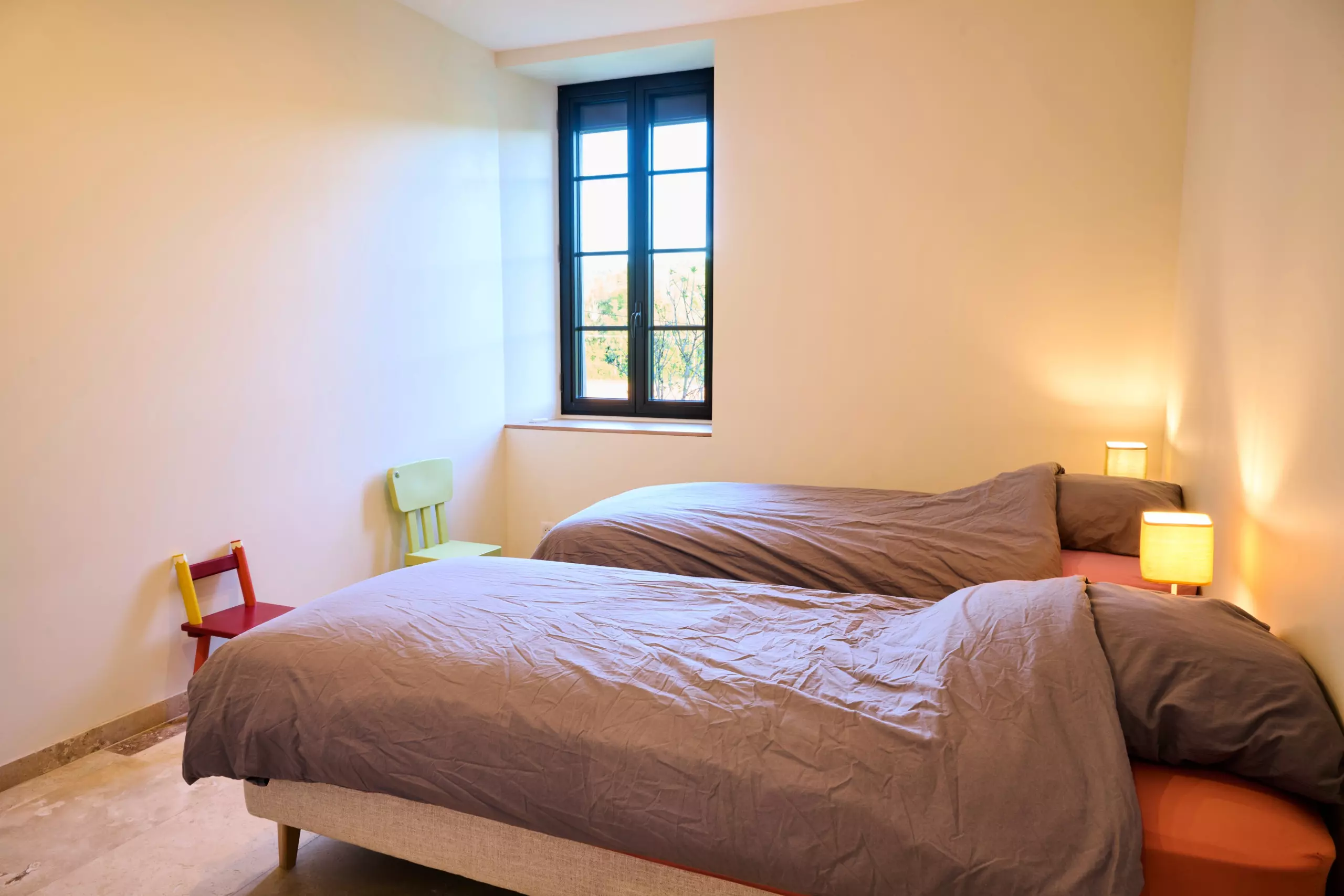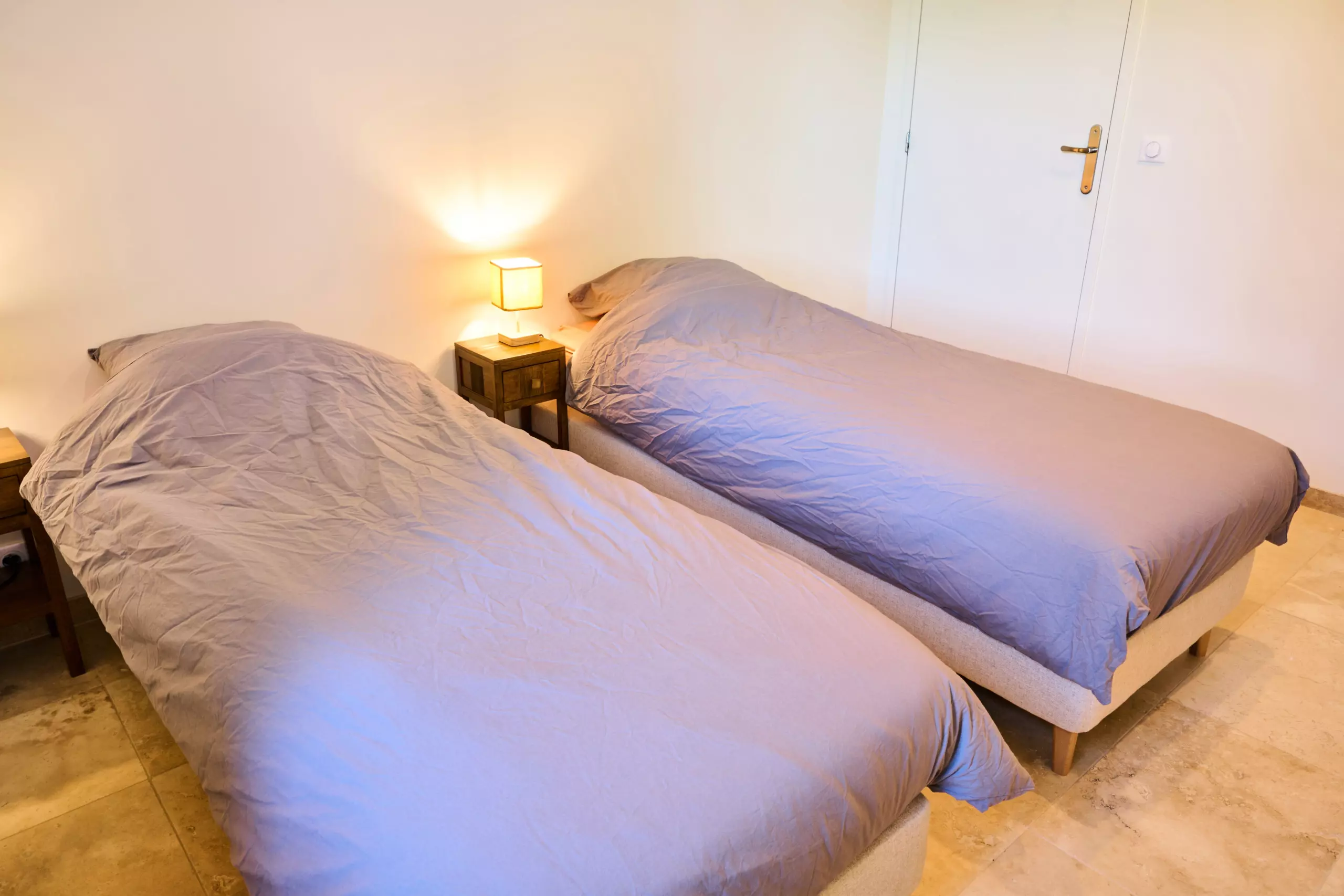 Côté nuit, profitez d'une chambre avec un lit queen size et d'une seconde chambre avec deux lits simples - toutes deux aménagées avec une literie haut de gamme pour un sommeil réparateur.