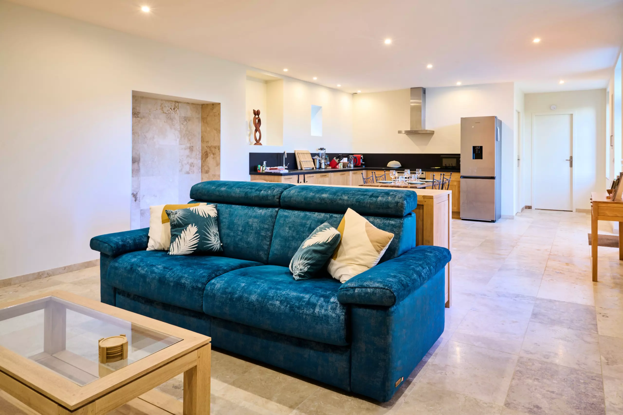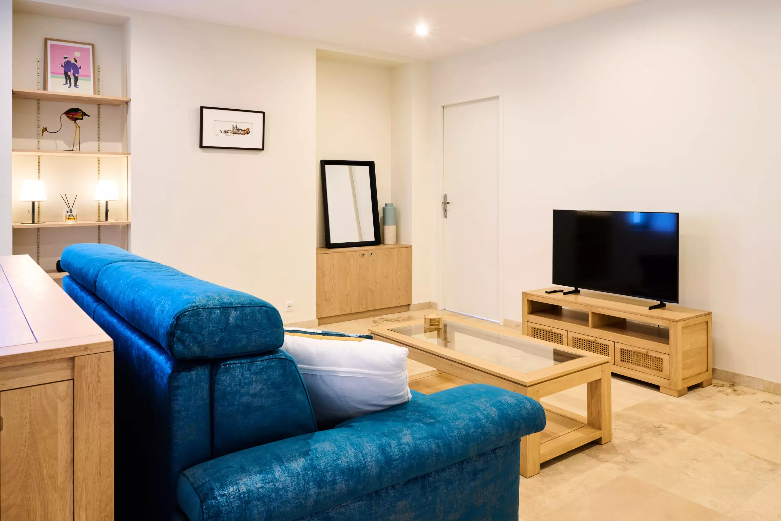 Poussez la porte et découvrez un salon lumineux avec un canapé convertible ultra moelleux, parfait pour vos soirées cocooning. La cuisine moderne, entièrement équipée, invite aux repas gourmands en famille ou entre amis.