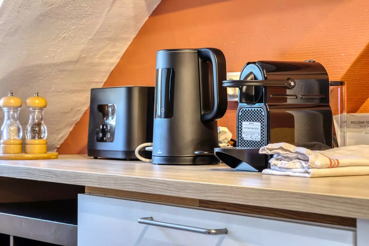 Exposé sud-ouest, l’appartement offre une belle pièce de vie, comprenant un canapé, une table basse et une télévision, ouverte sur une cuisine aménagée et entièrement équipée. Vous y trouverez tout le nécessaire pour un séjour pratique et confortable : four, plaques de cuisson, grand réfrigérateur-congélateur, lave-vaisselle, lave-linge, cafetière Nespresso, bouilloire, grille-pain, ainsi que l’équipement complet pour cuisiner comme à la maison.
