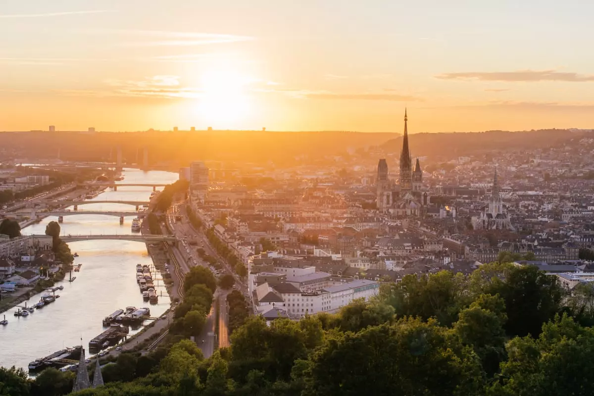 Rouen, dite la Ville aux cent clochers, est située au nord-ouest de la France et traversée par la Seine.