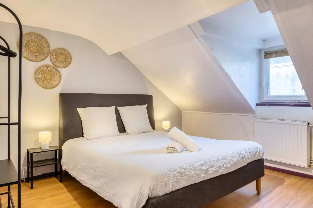 L’appartement ne dispose pas de stationnement privé, mais vous pourrez vous garer dans les rues alentours (selon la tarification en vigueur) ou au parking payant et couvert du Vieux-Marché, situé juste en face.