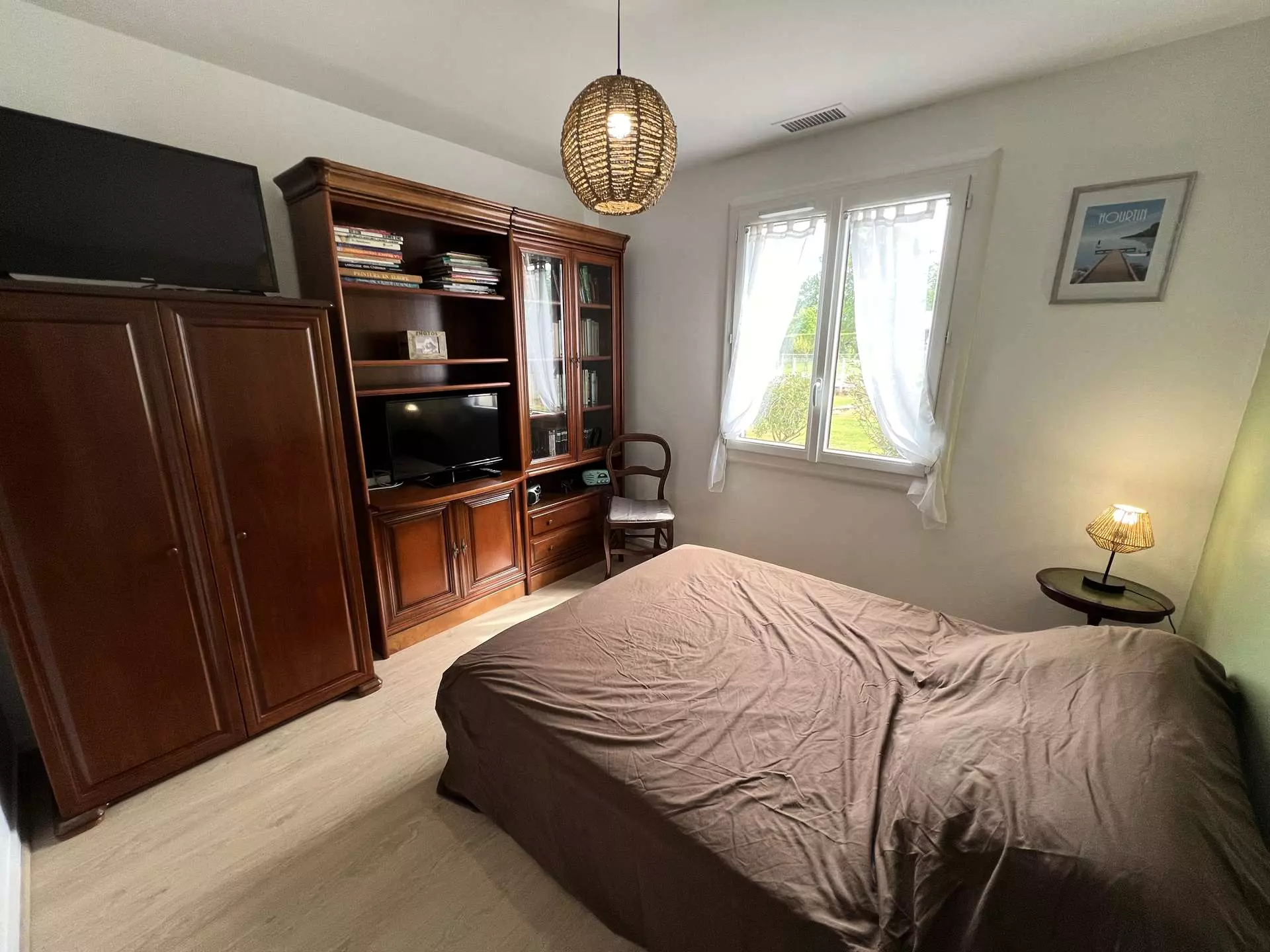 Belle maison de 110m² avec son parc de 6000m² dans un environnement verdoyant et calme. Cette maison se situe dans le village de Saint Vivien de Médoc. Elle se compose d'une véranda, une cuisine fermée et équipée, un salon avec canapé/lit, une salle à manger, une buanderie, 3 chambres (3 avec 1 lit double en 140 cm), 1 salle de bain (douche et baignoire), 1 WC indépendant. A l'extérieur se trouve: barbecue, chiliennes...Saint Vivien de Médoc est un village typique des bords de l'estuaire de la Gironde où l'on peut découvrir une vraie ambiance conviviale. Son environnement champêtre, propice au calme et au farniente, vous offre de belles promenades à découvrir. Laissez-vous séduire par le charme naturel de Saint-Vivien-de-Médoc, en faisant une halte au marché local, en flânant dans le port du village et en réalisant de belles balades estuariennes. Les Animaux sont les bienvenus. Possibilité de se garer. Caution à régler sur place. Chèques vacances acceptés.