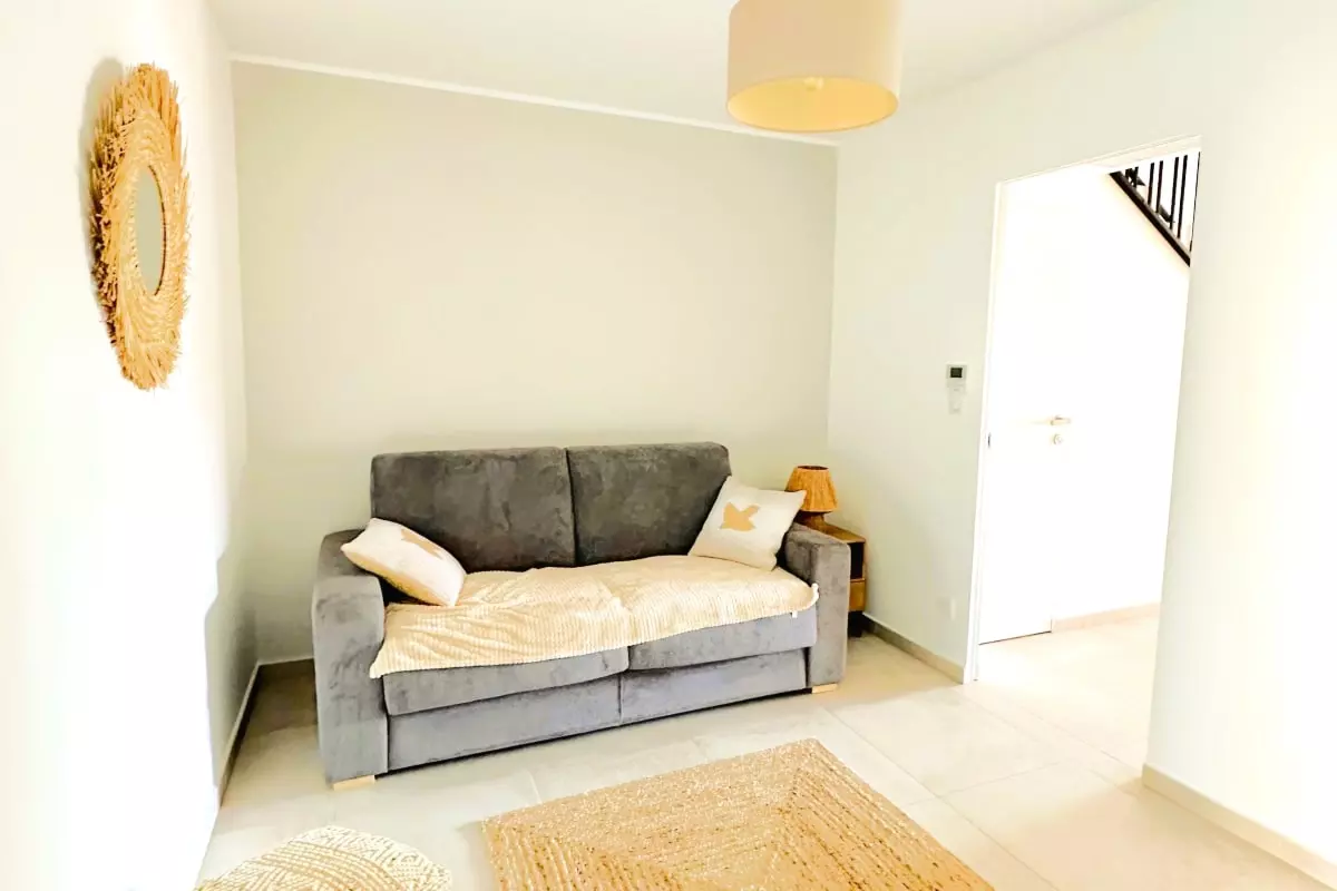 Chambre 3 : avec un canapé-lit double et une arrière-terrasse.