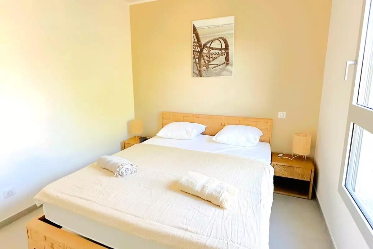 La résidence privée offre une piscine commune pour vous rafraîchir après une journée à la plage, ainsi qu'un parking privé (2 places) pour votre commodité. La plage de Cala Rossa est à seulement 800 mètres à pied, offrant du sable fin et des eaux cristallines pour des journées de détente sous le soleil corse.