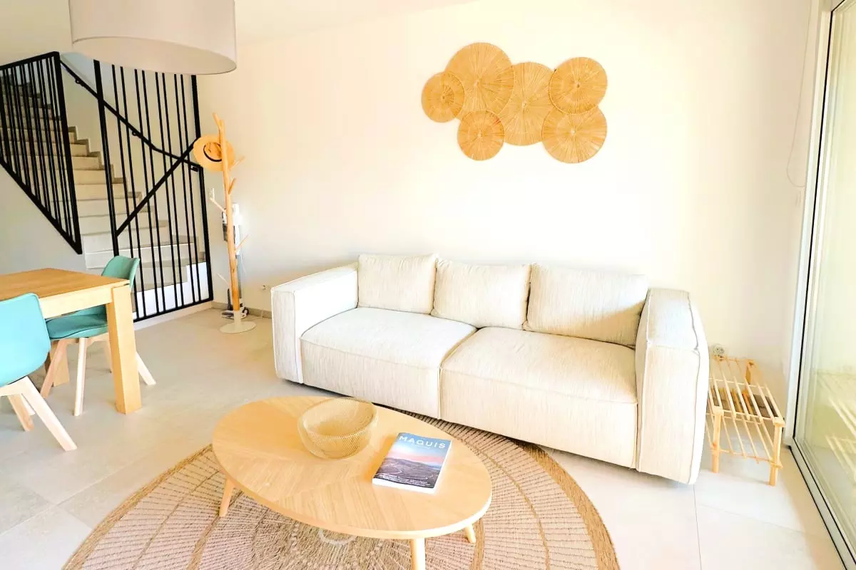 Superbe duplex de 3 chambres avec piscine dans une résidence privée, à seulement 800 m de la plage de Cala Rossa, idéal pour des vacances inoubliables en Corse du Sud.