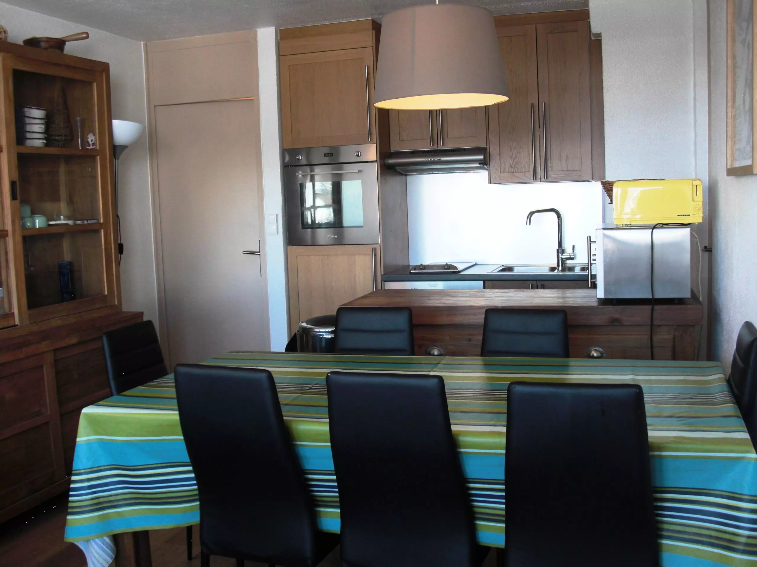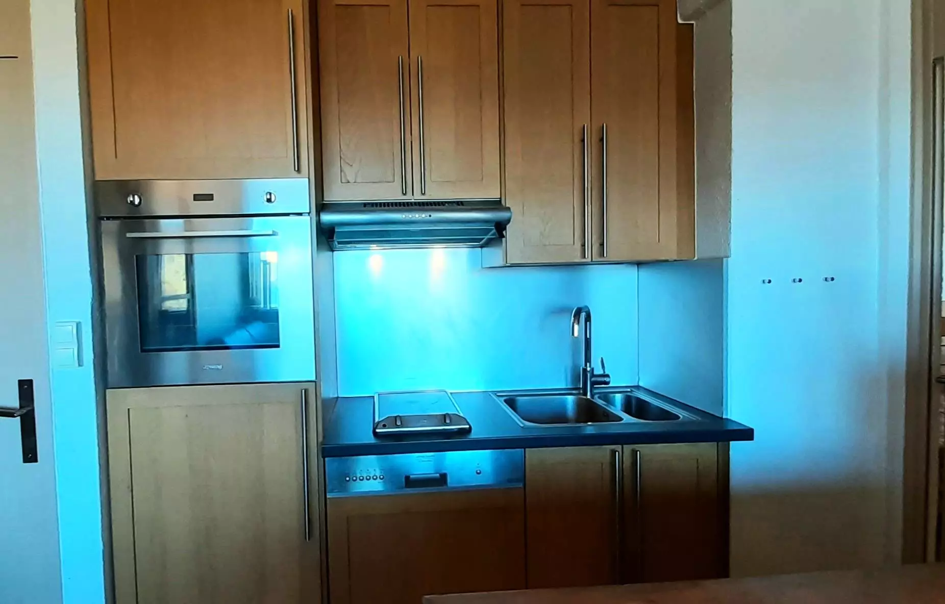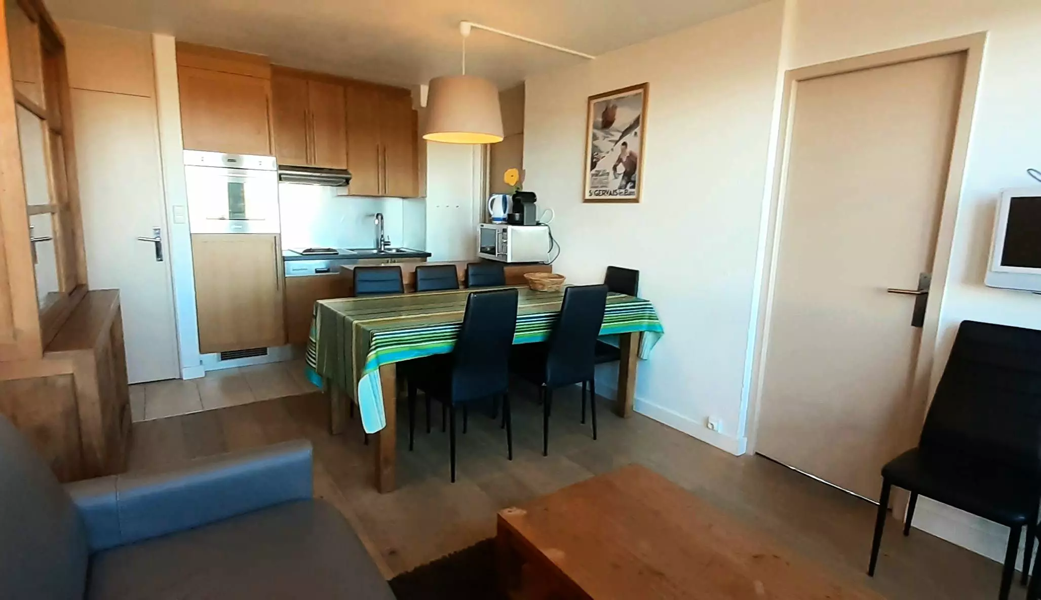 - Une cuisine équipée et fonctionnelle ouverte sur le séjour avec un lave-vaisselle, un four traditionnel, un micro-ondes, des plaques vitrocéramiques et un réfrigérateur