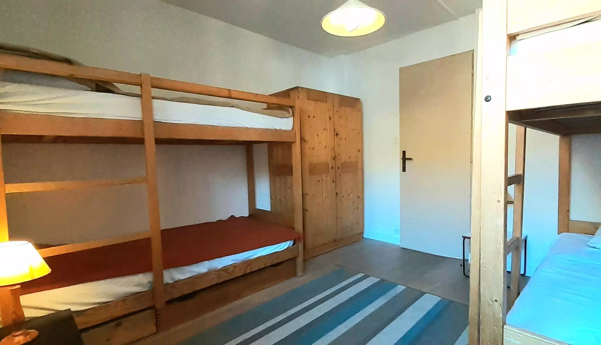 - 2 chambres : 1ère chambre avec un lit double et 2ème chambre avec 2 ensembles de lits superposés